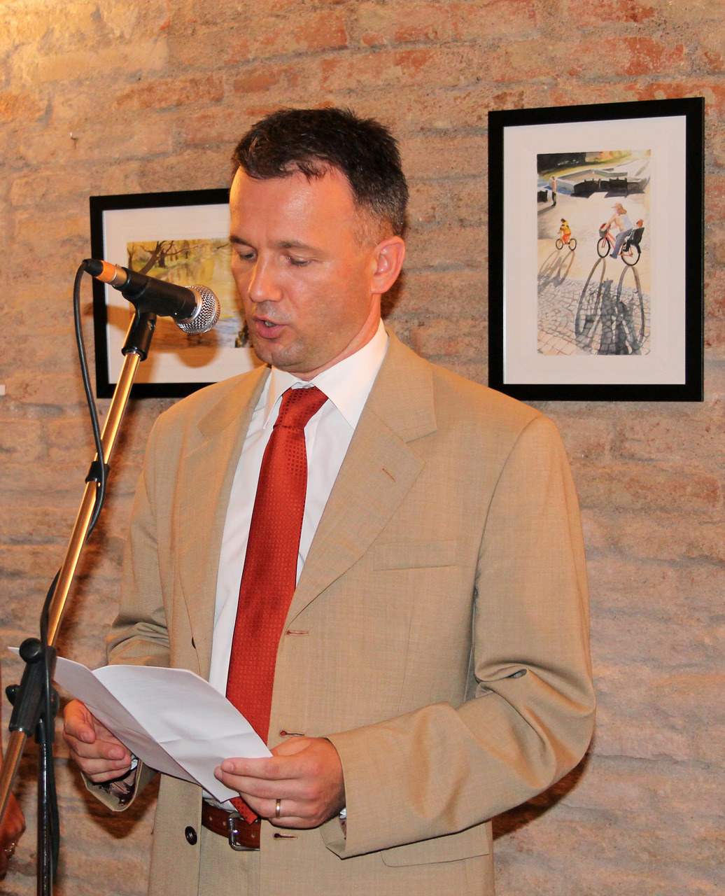 A kiállítást városunk polgármestere, dr. Görgényi Ernő nyitotta meg, aki beszéde elején a művész és műve tárgyának kölcsönhatásáról, így a művészet és a valóság kölcsönös egymástól függéséről, valamint a valóság egy igen fontos szeletéről, a helyről, vagyis életünk teréről, mint a művek tárgyáról és az alkotót befolyásoló közegről beszélt.