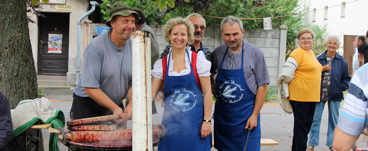- Célul tűztük ki magunk elé, hogy hagyományokat, szokásokat viszünk az itt élők hétköznapjaiba, a családi és a helyi közösség ünnepeit újra élettel töltjük meg. Szilvalekvárt főzünk németesen, üstben, ahogy őseink is tették. Összefogjuk a németvárosi embereket, kicsiket és nagyokat, lehozzuk a padlásról a régi kavarófákat, kifényezzük az üstöket, szilvát szedünk a régi németvárosi fákról, a kertek végéből. Együtt ünnepelünk. Reméljük, célunkat meg tudjuk valósítani, és egy szép, dolgos napot tölthetünk ma együtt – hangzott el Mittag Mónika köszöntőjében.