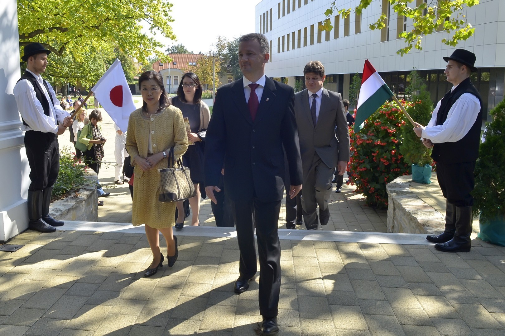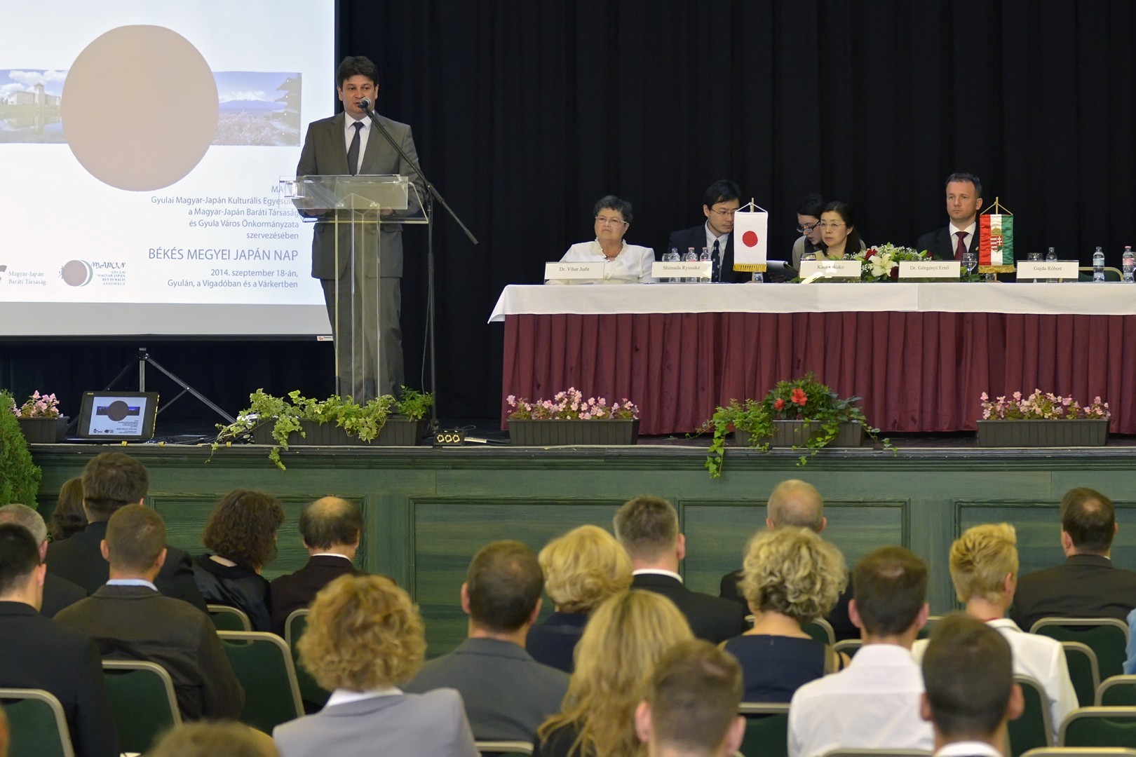 Dr. Görgényi Ernő köszöntőjében hangsúlyozta: az elmúlt húsz évben ilyen magas rangú, hivatalos japán küldöttséget nem fogadott a város. A polgármester beszédében említést tett a gyulai várról, valamint a város neves szülöttéről, a Himnusz zeneszerzőjéről és a nemzeti opera megteremtőjéről, Erkel Ferencről, a világhírű fizikusról, Bay Zoltánról és a településen békében együtt élő nemzetiségekről.