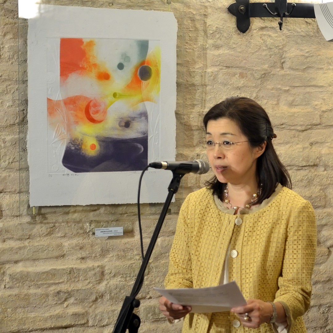– A rézmetszetek közül sok szülőföldünket, a naganói természetet mutatja be – mondta az egybegyűlteket köszöntő Kato Kikuko tanácsos, a magyarországi japán nagykövetség képviseletvezető-helyettese, utalva arra, hogy a művésszel ugyanabban a megyében nőttek fel.