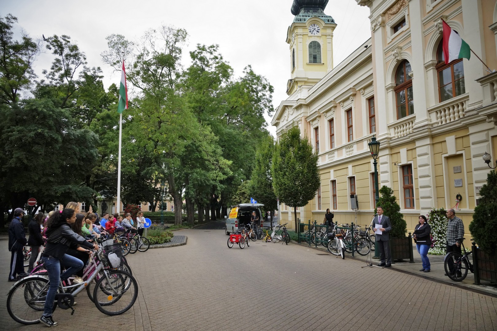- Ez a rendezvény alkalmas arra, hogy felhívja a figyelmünket, hogy főleg egy ilyen alföldi kisvárosban, ahol nincsenek hegyek és dombok érdemes a kerékpárt választani a gépkocsi helyett, hogyha közlekedni akarunk. Nem feltétlenül egy ilyen csúnya, esős reggelen, hanem életünkben, a mindennapjaink során kell ezt a fajta környezettudatos szemléletet érvényesíteni. Az életünk mindennapjai során kell elgondolkoznunk azon, hogy mit tehetünk azért, hogy óvjuk és védjük környezetünket, és ezzel a jövőbeni kilátásokat, az utánunk következő generációk életfeltételeit javítsuk és megőrizzük – hangzott el dr. Görgényi Ernő beszédében.