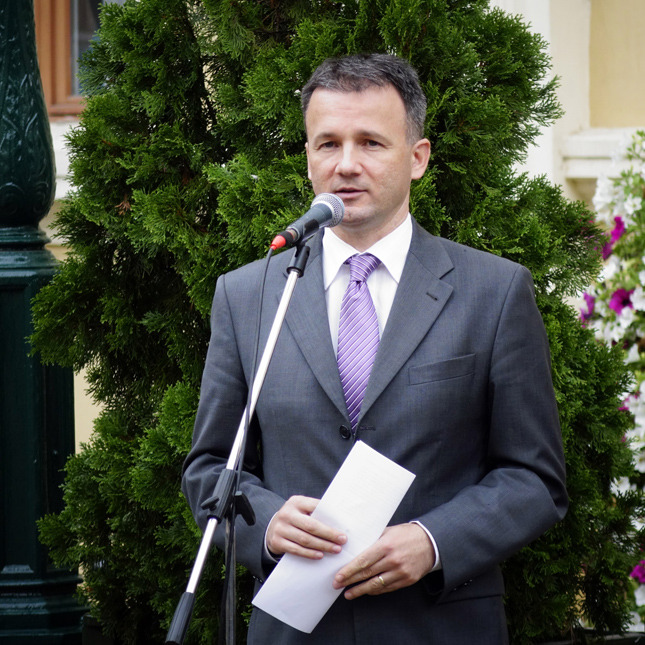Az autómentes nap alkalmából dr. Görgényi Ernő, Gyula város polgármestere mondott köszöntőt.