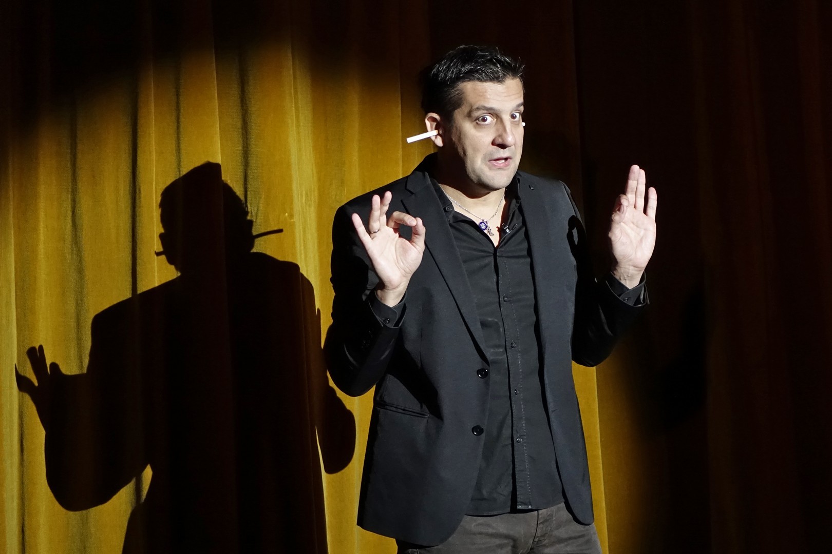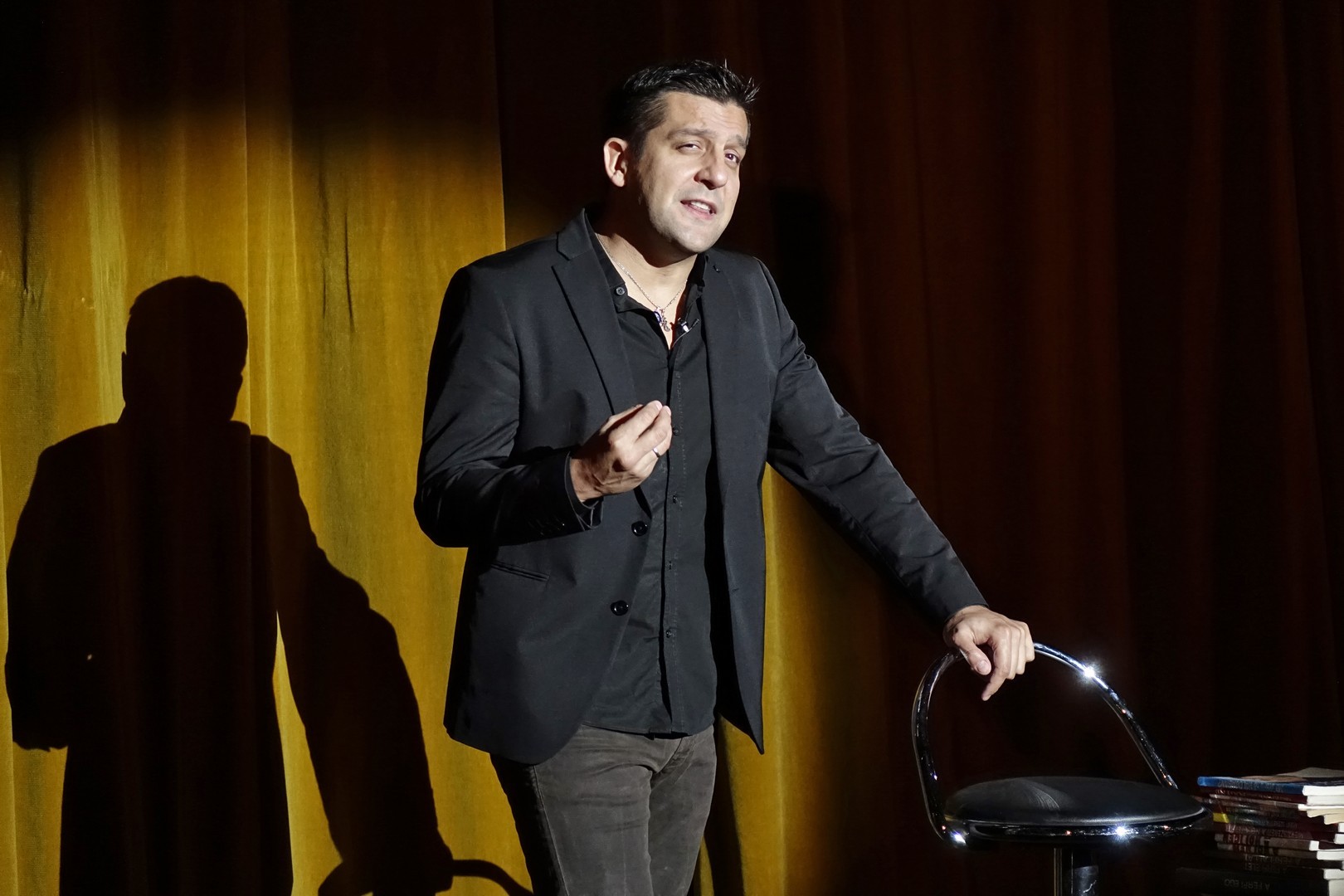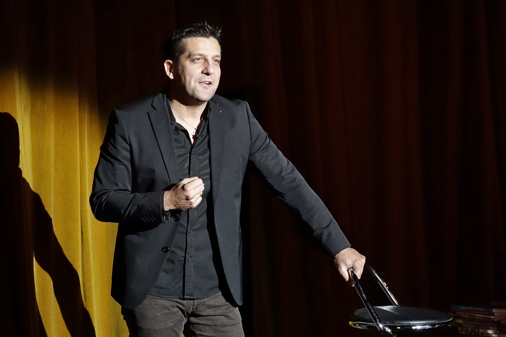 És itt az alapvető különbség, nem csak kulturálisan, hanem megjelenítésben is, hiszen míg Robert Dubac minden megszólalásától dől a nézőtér a röhögéstől – ezért stand-up komikus ő – addig Csányi alapvetően nem egy vicces figura. Nem is szellemes, de spontánsággal semmiképp sem vádolható. Csak áll a színpad közepén és beszél, beszél – amit még mindig nem tanult meg -, persze attól még kellemes és jópofa, de érezhetően kínlódik és színpadi karaktere sem a választ keresi, csak szenvelegve sorakoztat fel különbségeket a színt két térfélre osztott (racionális és érzelmi) férfi agyában állva, táblára írt közhelyekbe kapaszkodva. De még ettől is lehetne jó, ha jutna valamire, de a női agyról és a férfiak gondolkodásáról záporozó élcek nincsenek végiggondolva, az ellentmondásig egyáltalán nem is jut el, és a sztereotípiákkal is csak a felszínt kapirgálja, de azt sem jól, mert nem úgy van és nem az, amitől az egész este teljesen hamissá válik. Mert az sajnos nagyon kevés, hogy egyszer-egyszer magunkra ráismerve elmosolyodunk.