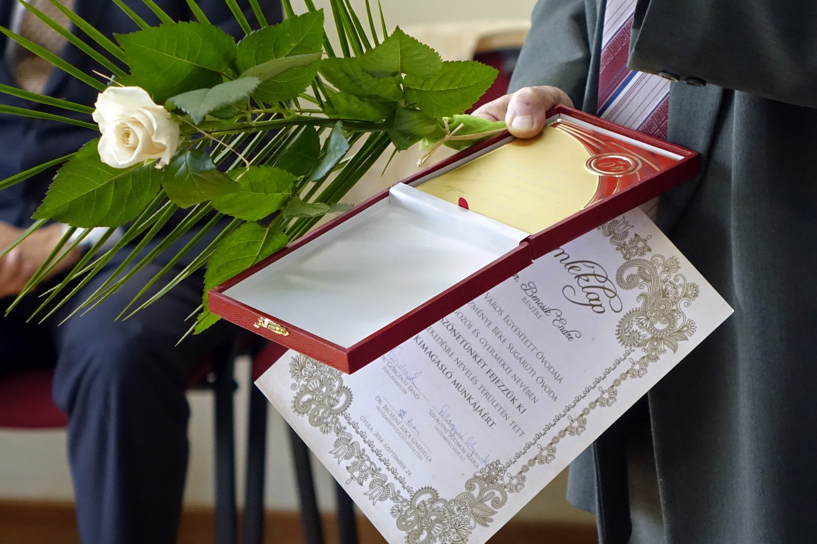 Az ünnepi beszédeket követően az intézmény munkatársaitól emlékplakettet vehetett át Vas Béláné nyugalmazott városi óvodai felügyelő és óvodavezető, Kálmán János nyugalmazott rendőrőrnagy, dr. Bencsik Endre közlekedéspszichológus, a Szarvasi Óvónőképző Intézet nyugalmazott igazgatója, valamint posztumusz díjban részesült Farkas István főmérnök.