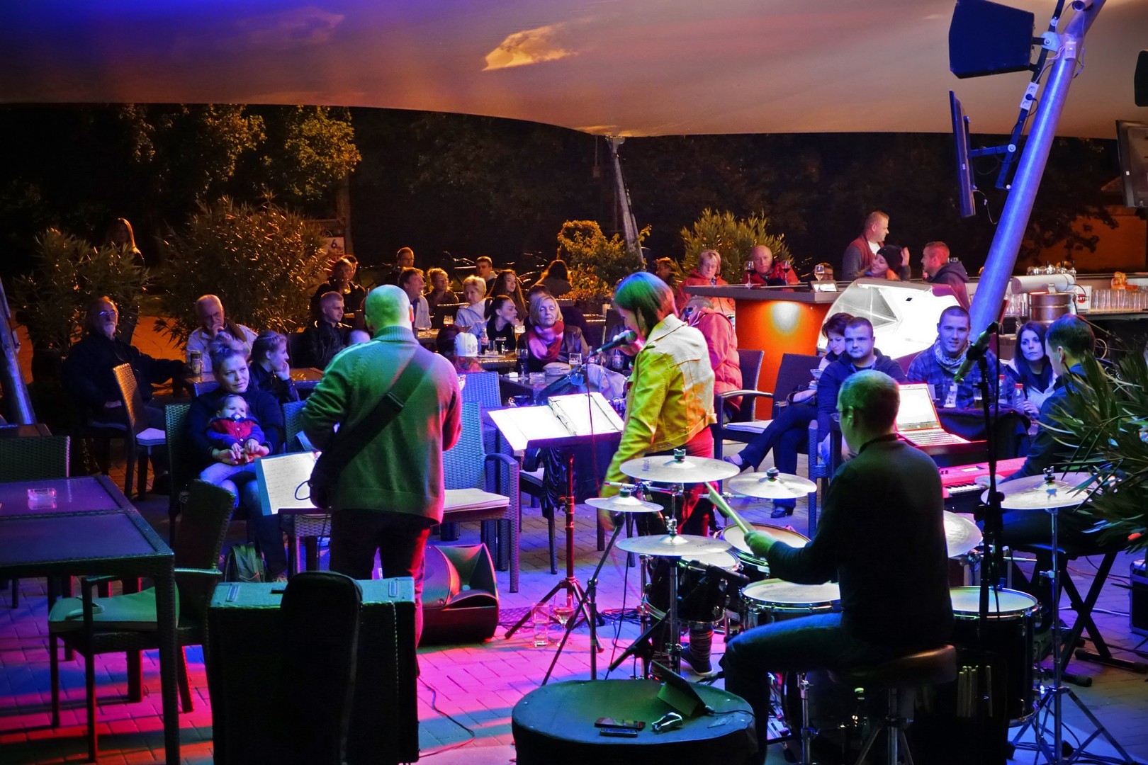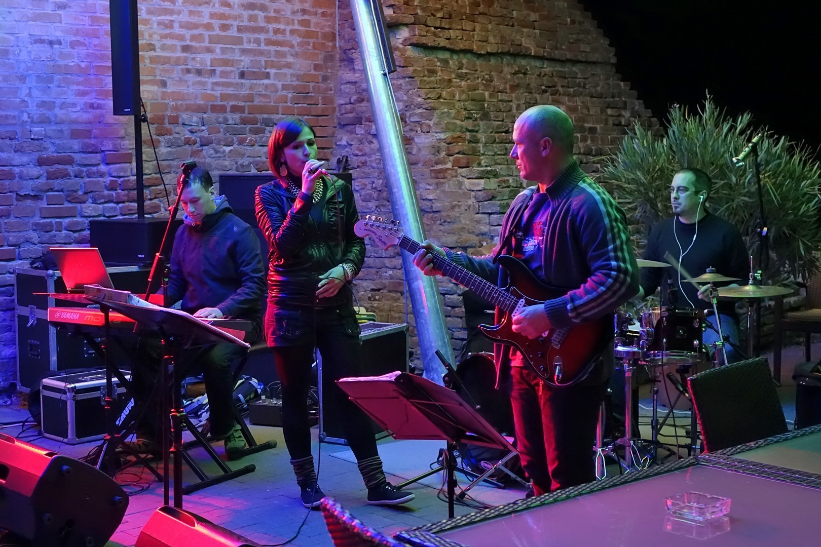A szabadtéri szórakozóhely nyári szezonját a gyulai TooMuch kvartett koncertje zárta. Bár az est jócskán lehűlt, azért minden asztal megtelt, és a közönség végig jól szórakozott Fekete Cintia (ének), Hajdu István Gergely (billentyű), Nagy Péter (gitár) és Hőgyes Elek (dobok) koncertjén. A zenekar bő egyórás előadásában népszerű slágerek hangzottak el sajátos feldolgozásban, ám repertoárjukban ezúttal több új számmal is találkoztunk.