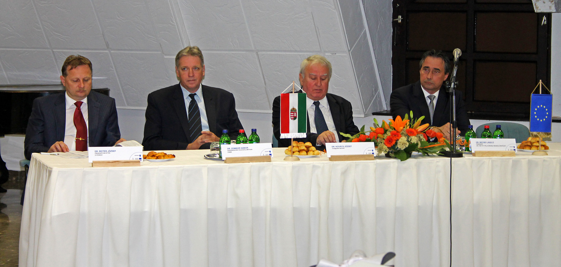 A rendezvény elnökségi asztalánál dr. Zombor Gábor, az EMMI egészségügyért felelős államtitkára, dr. Kovács József országgyűlési képviselő, dr. Reiter József, a GYEMSZI főigazgató helyettese, dr. Becsei László, a Dr. Réthy Pál Kórház-Rendelőintézet főigazgatója és dr. Kövesdi József, a Békés Megyei Pándy Kálmán Kórház megbízott főigazgató főorvosa foglaltak helyet.