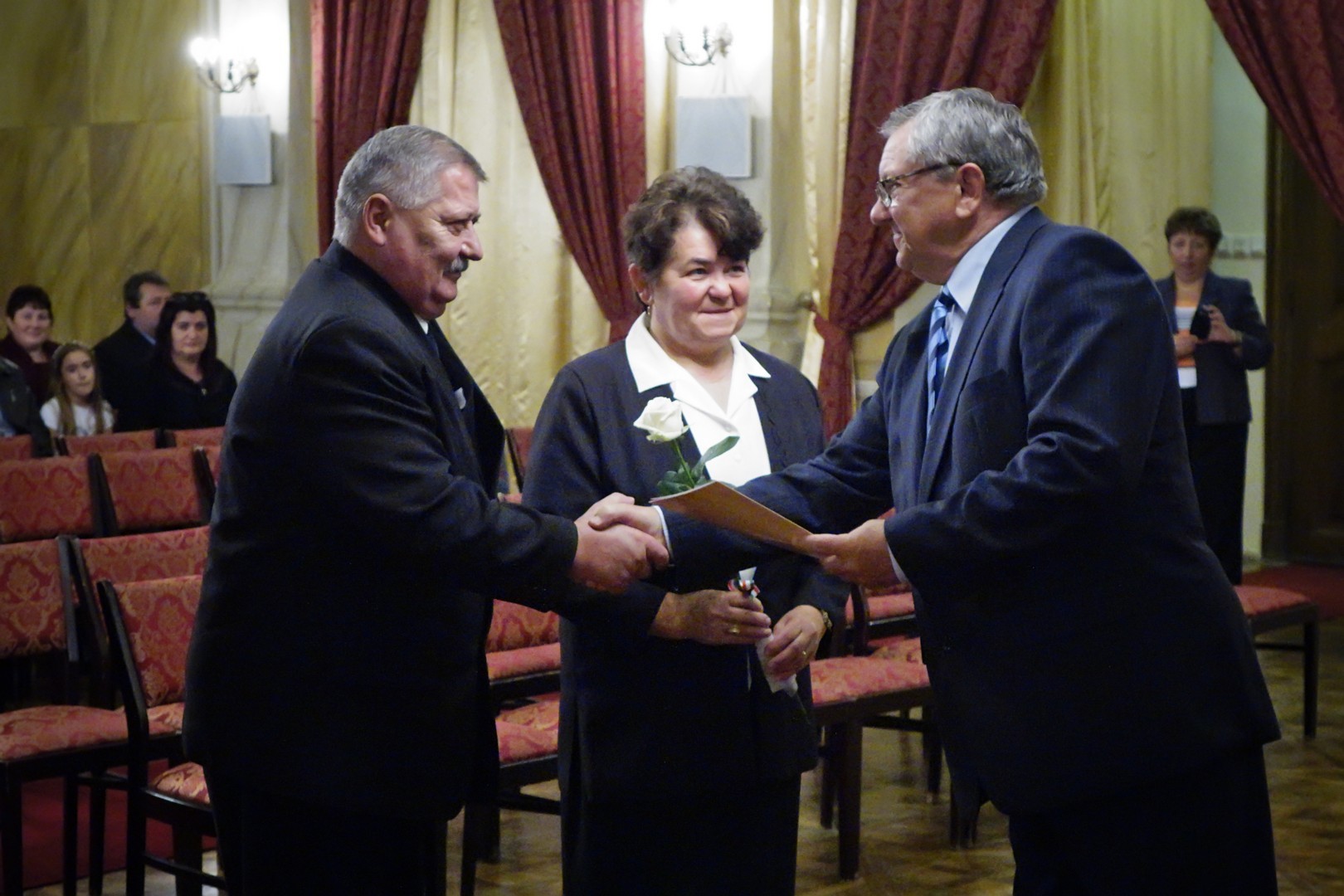 Wass Albert Üzenet haza című szerzeménye után az új magyar állampolgárok átvették a honosítási okiratokat, majd nemzeti himnuszunkat követően, az ünnepi esemény alkalmából pezsgővel koccinthattak.