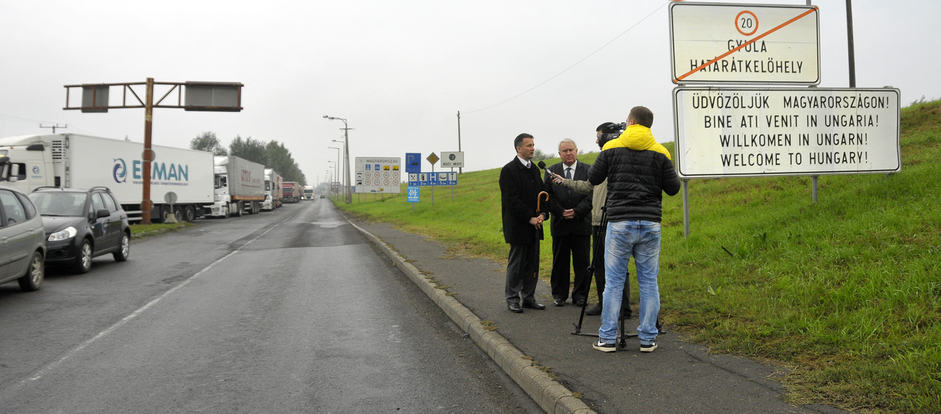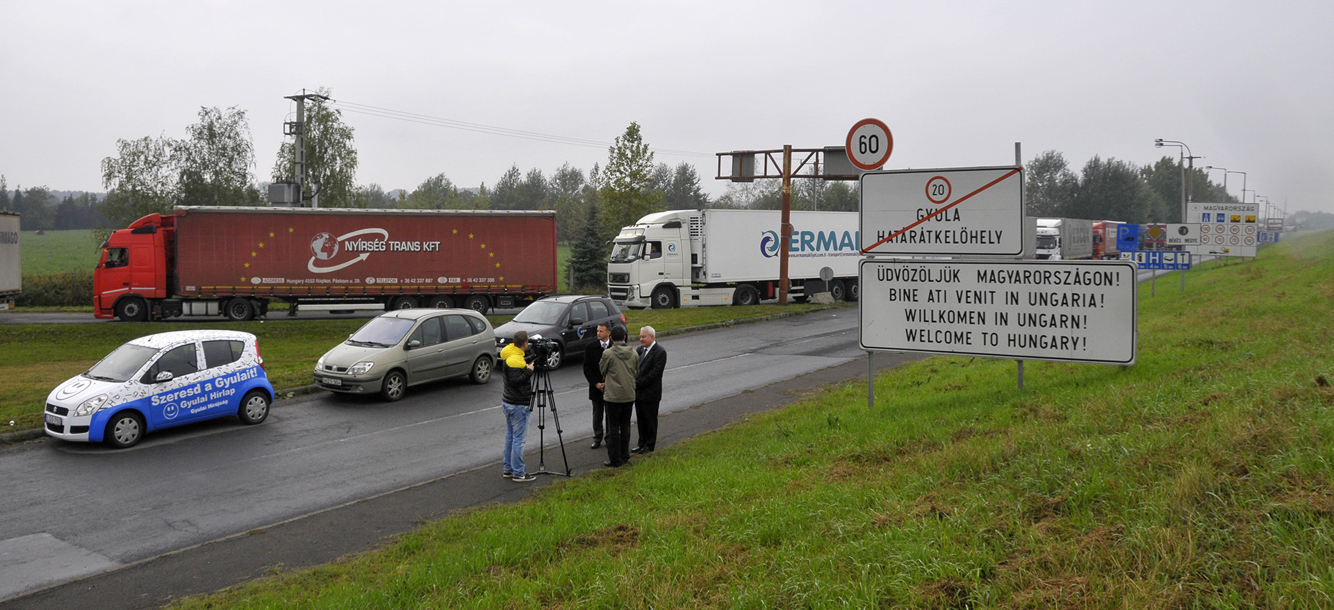 A városvezető kifejtette, a gyulai egy közepes áteresztési képességű határátkelő, ahol az utóbbi időben a többszöröse jelenik meg annak a kamionforgalomnak, amennyit át tudna engedni.