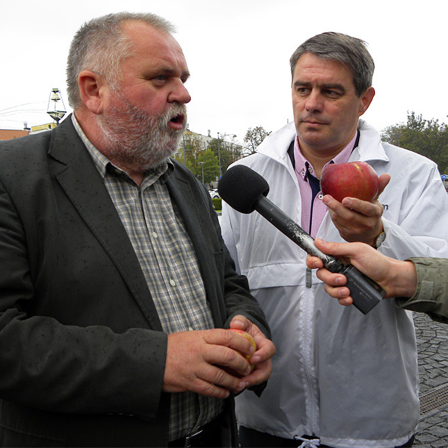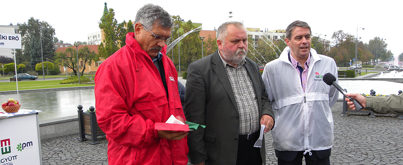 – Van egy egyesület Gyulán, amelyik érdekes módon az elkövetkezendő napokban, így ma is, éppen ott oszt almát, ahol a Fidesz kampányrendezvényei vannak. Ennek az egyesületnek nincs ilyen jogosultsága, hiszen kulturális tevékenységgel és a határon túli magyarság ügyével foglalkozik. Vajon miért épp ott oszt almát, ahol fideszes rendezvények vannak? – fejtette ki a baloldal polgármesterjelöltje.