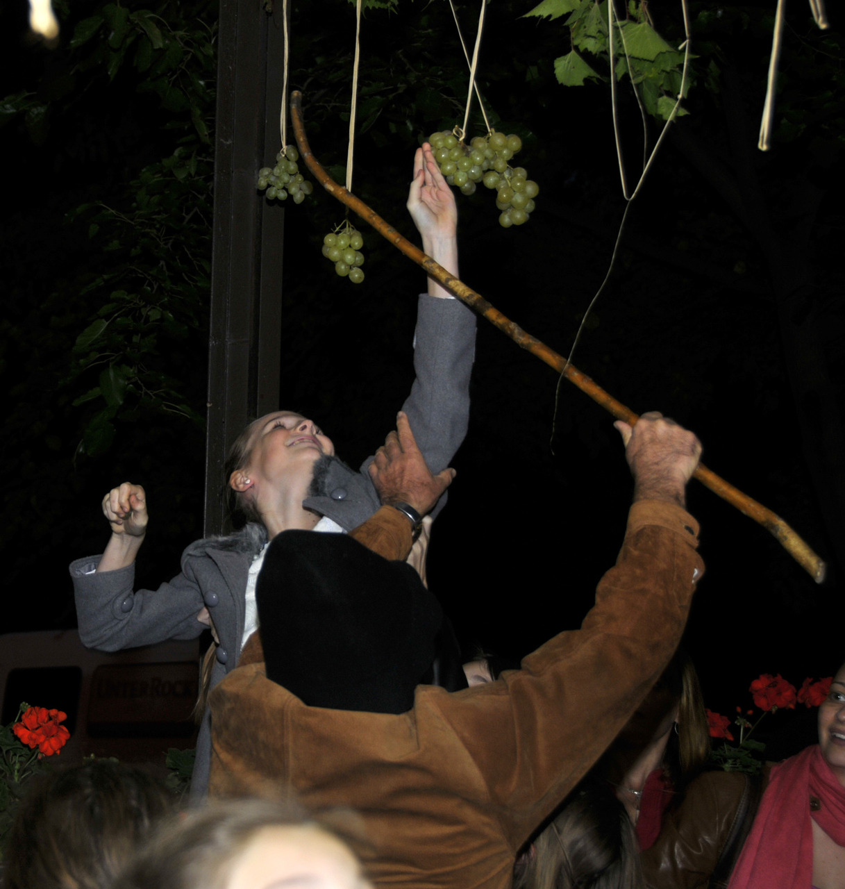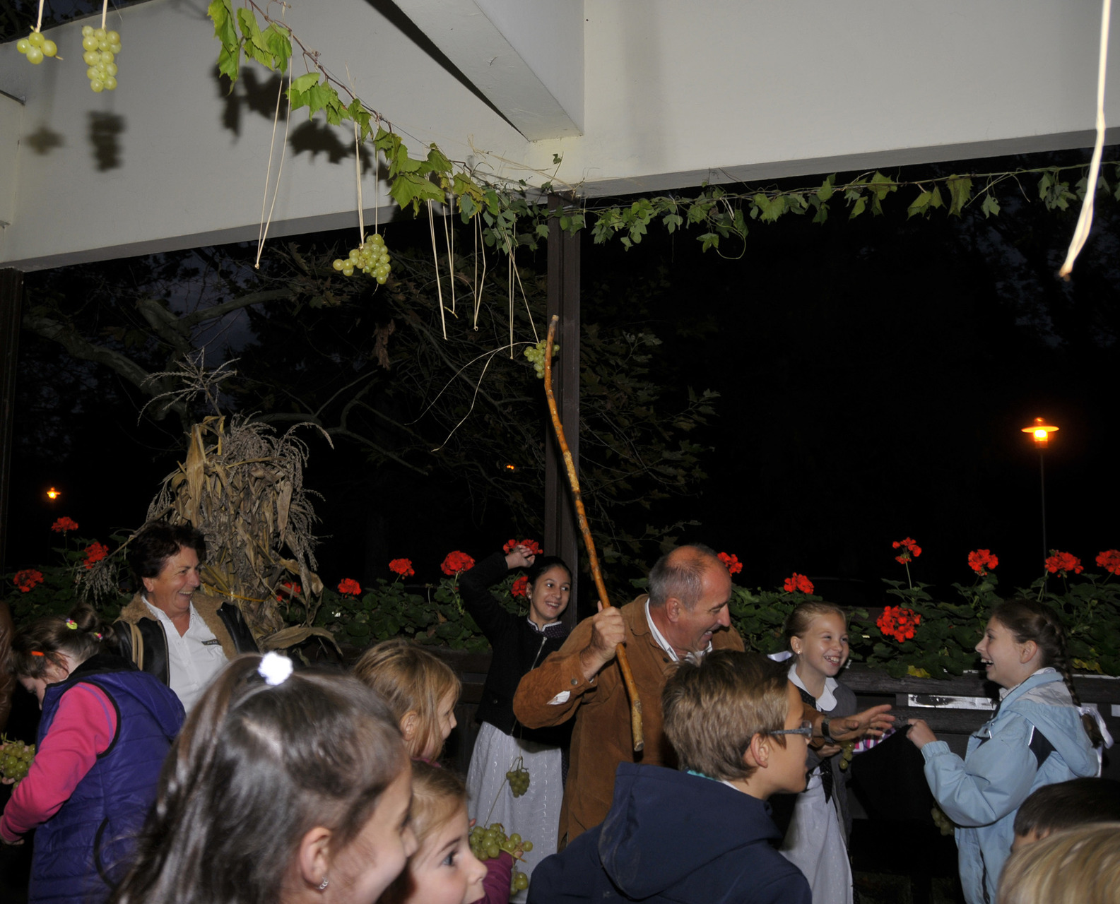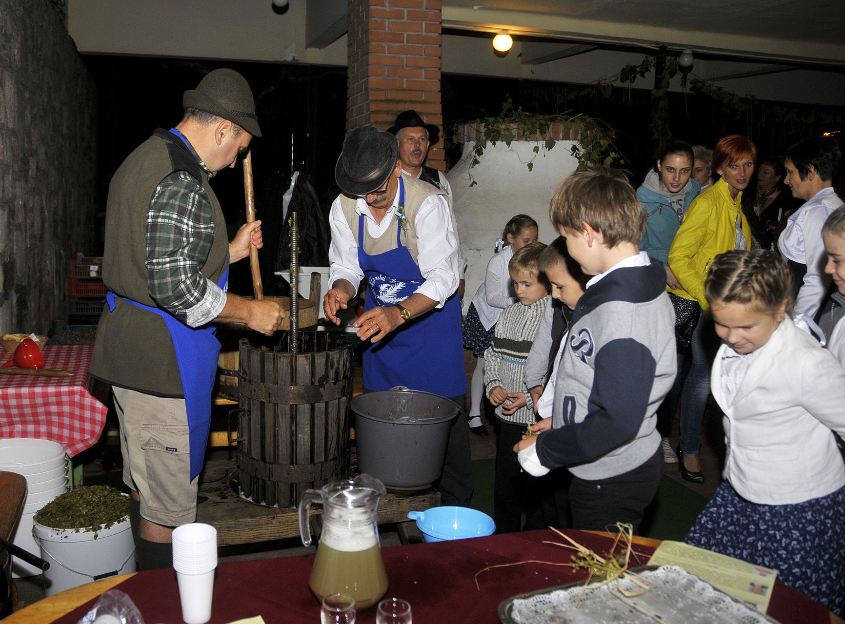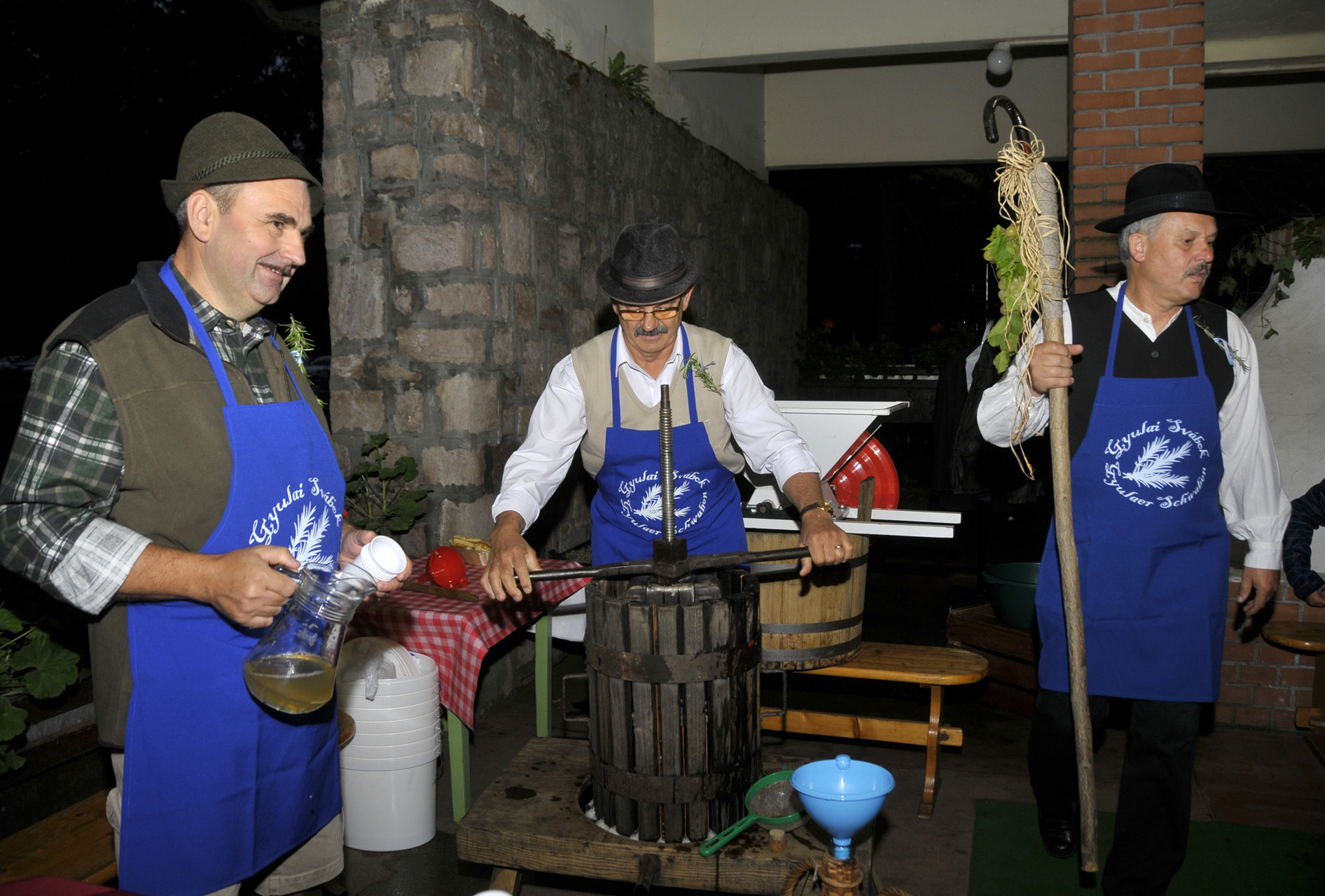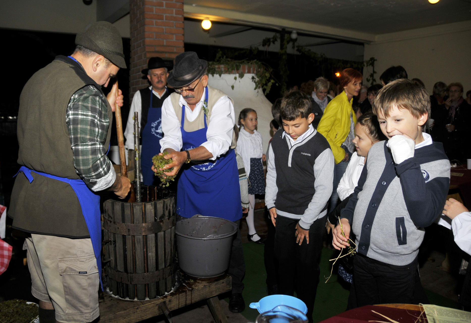 A hangulat és a mulatság azonban annál valódibb volt, hiszen ezúttal a gyerekek mellett a felnőttek is kedvükre játszhattak. A szőlőlopást követően ők borfelismerő versenyen, bor- és mustivó versenyen mérhették össze tudásukat, majd seprű- és szőlőtáncot járhattak kedvükre, ugyanis a változatos programok mellett a zenei jó hangulatot a hattagú pécsi UnterRock zenekar biztosította.