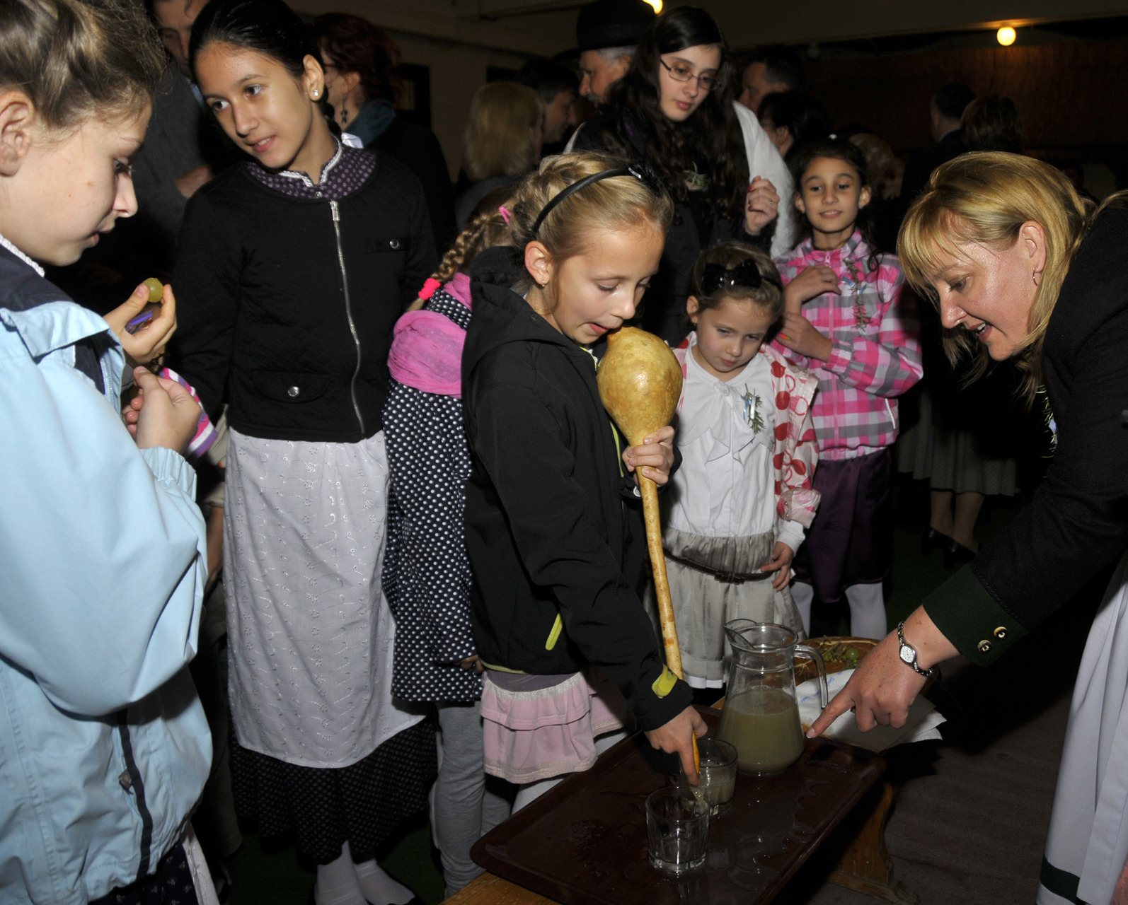 A sváb zene dallamai és a gyerekek zsibongása még a Csiga kertet is megtöltötte szombat este, amikor Gyula Város Német Nemzetiségi Önkormányzata hagyományos szüreti mulatságát tartotta a Park Étterem teraszán. A német nemzetiségi szüret persze inkább hangulatában idézte meg az egykori közösségi munkálatokat – mutatóba azért akadt egy-két szőlőprés is -, na és a kicsiknek kedveztek a régi időkben ilyenkor szokásban lévő népi játékok felelevenítésével.