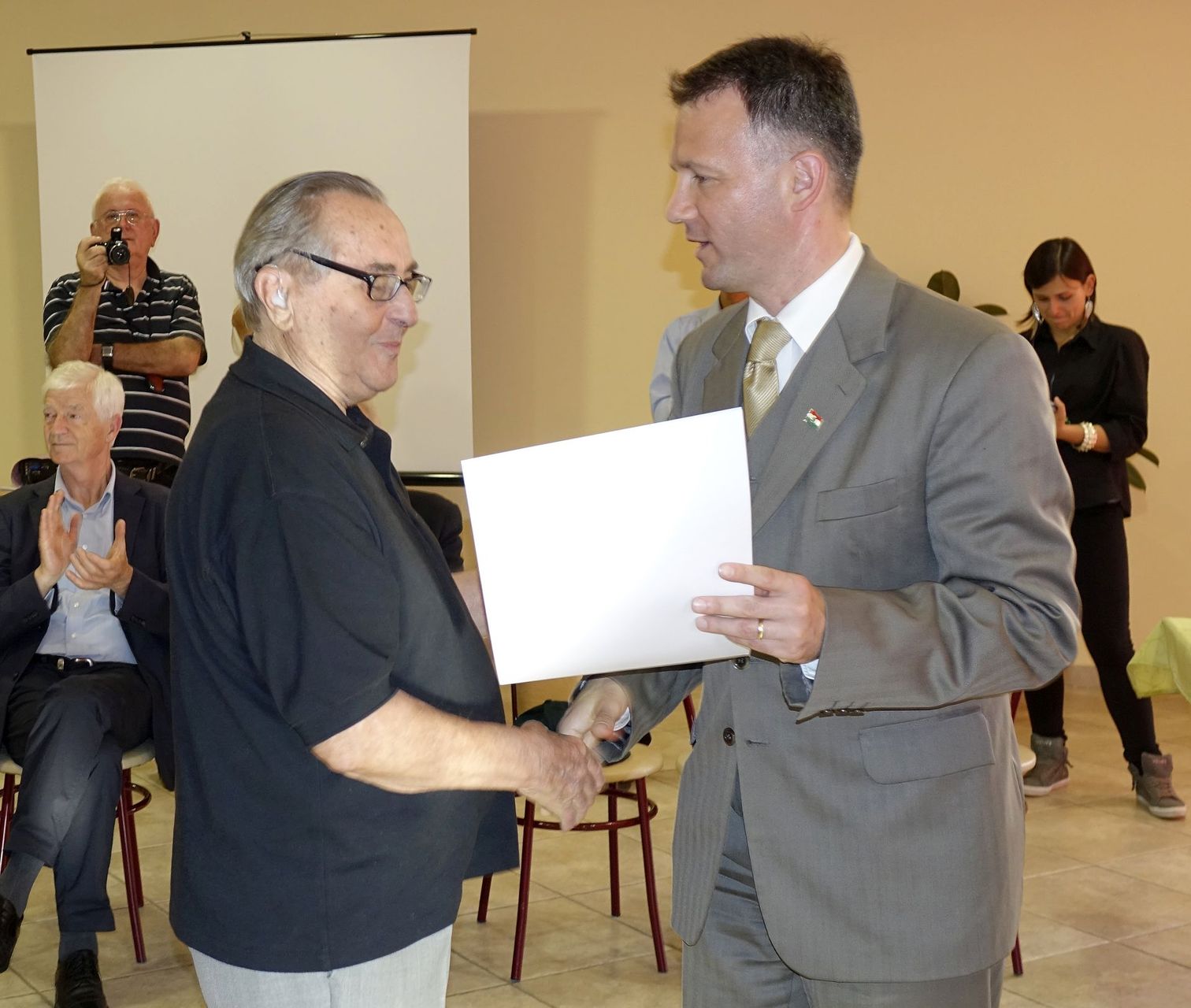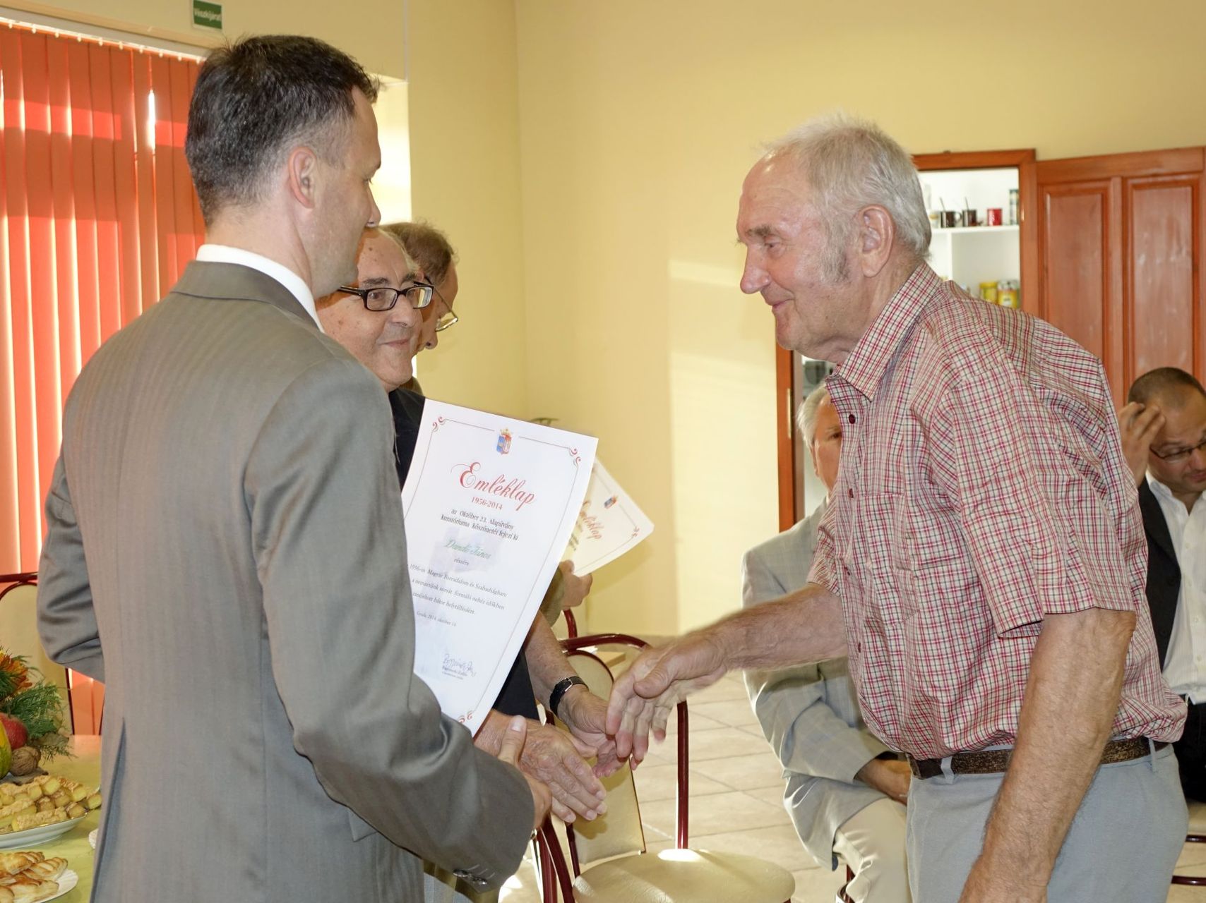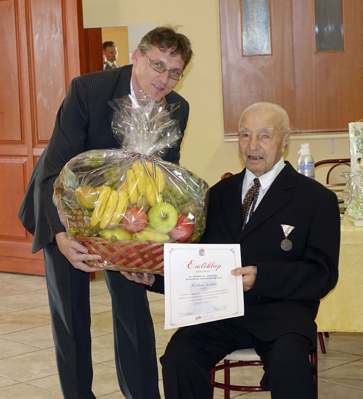 A beszédeket követően a jelenlévők egy perces néma csenddel emlékeztek elhunyt bajtársaikra. Az unikális találkozó talán legfontosabb pontjaként, M. Szabó András, Bagyinszki Zoltán és dr. Görgényi Ernő – az alapítvány nevében – emléklapot adott át minden megjelent ’56-os élő legendának. Ezt elsőként Radóczi András vehette át, akit ezután 100. születésnapja alkalmából egy hatalmas gyümölcskosárral is megajándékoztak.