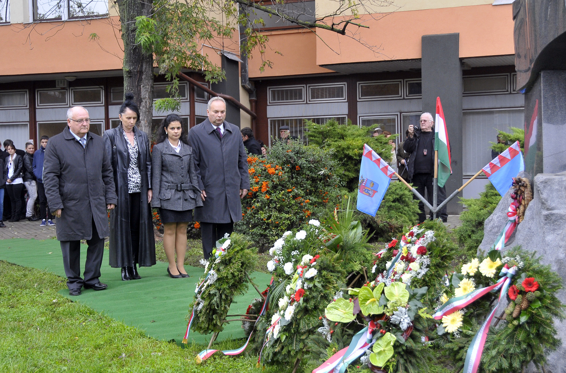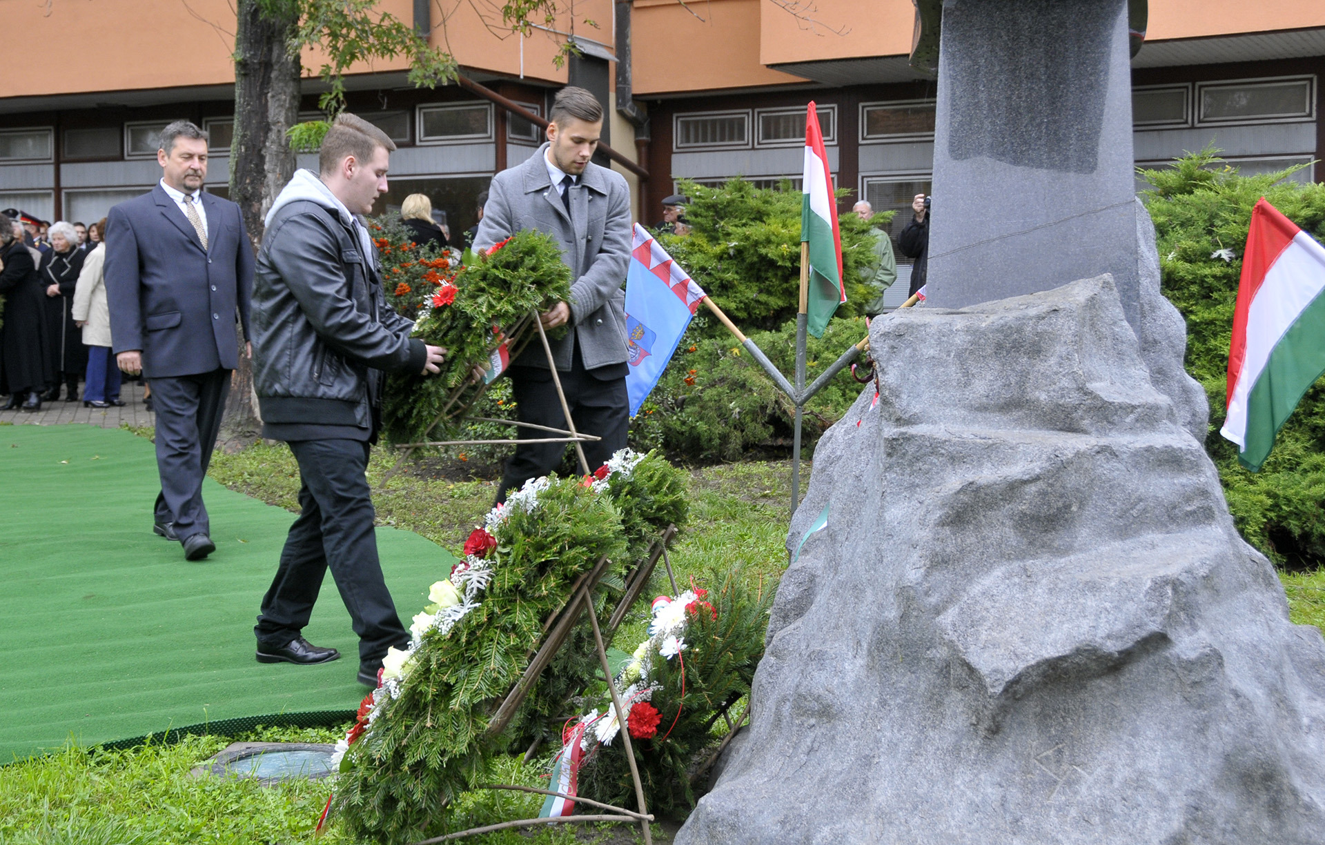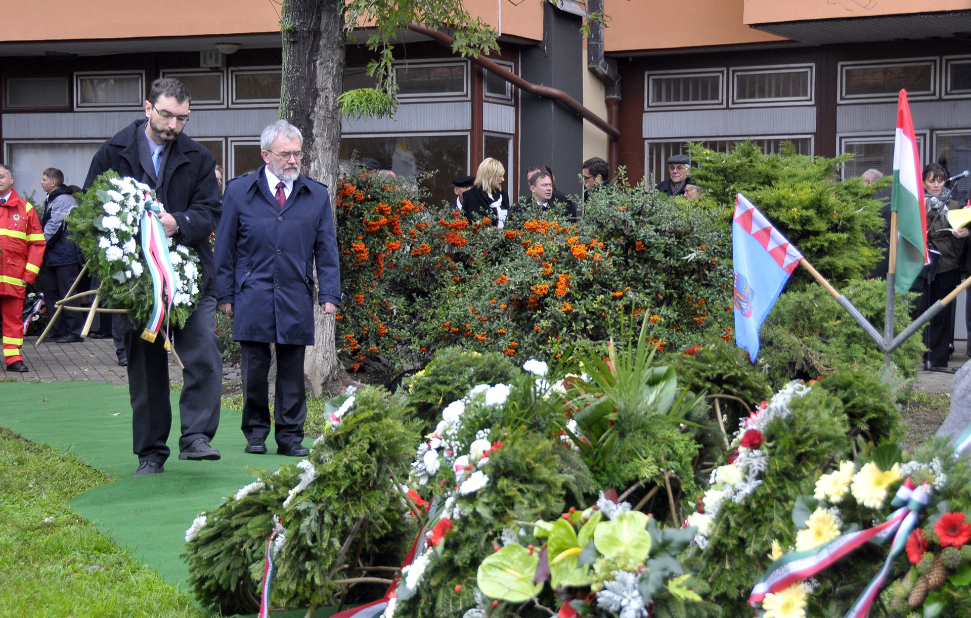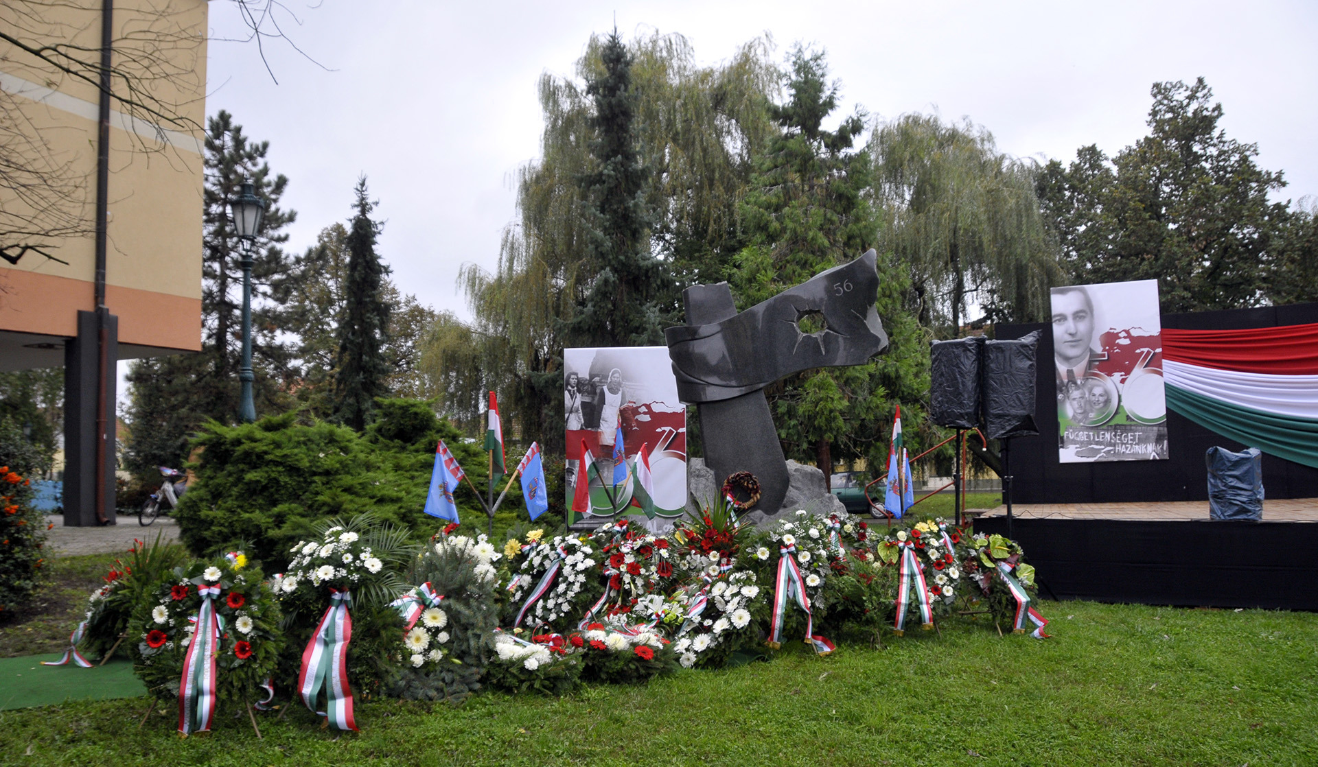 A megemlékezést ünnepi műsor és koszorúzás zárta az Október 23. téren.