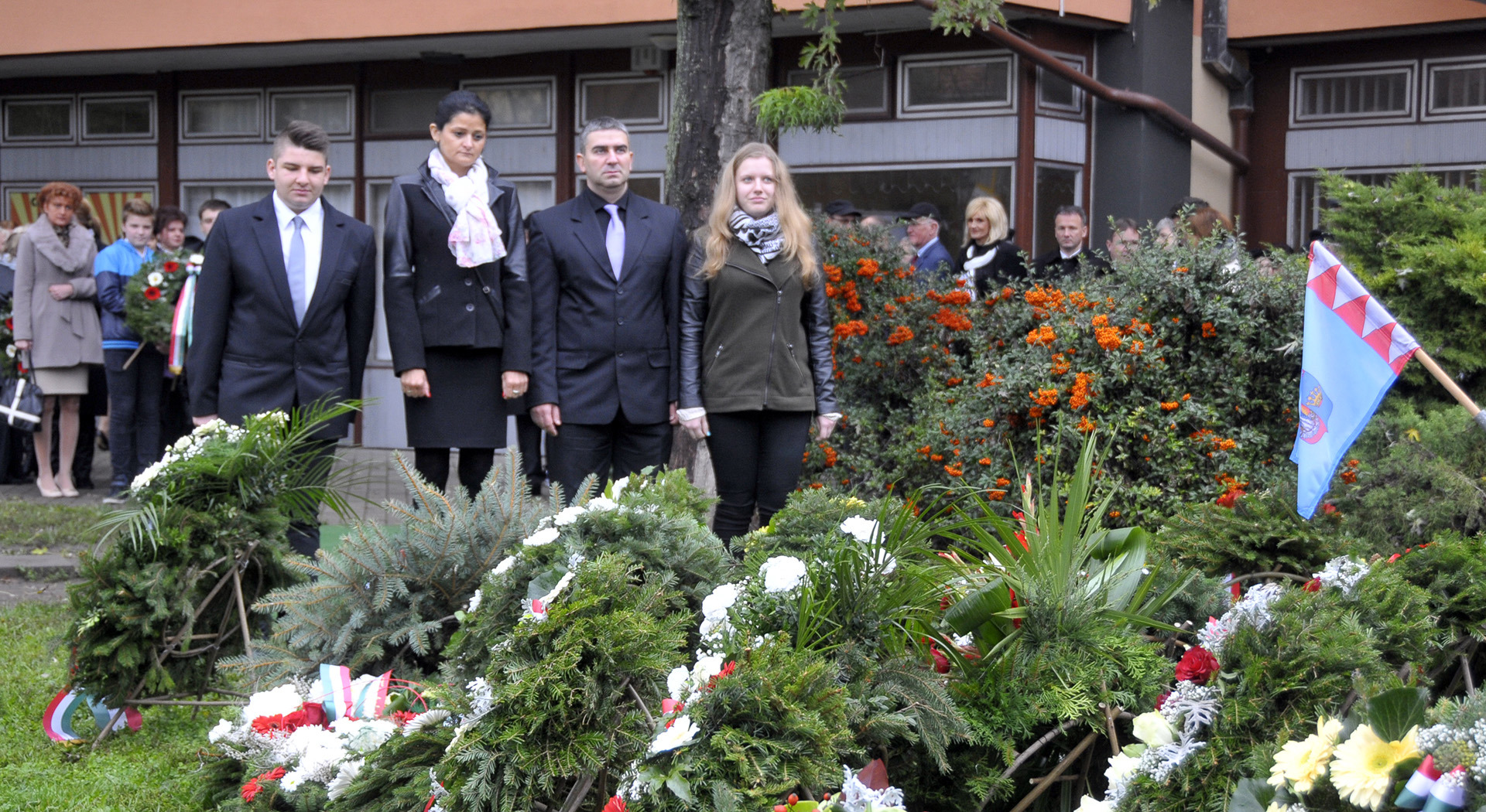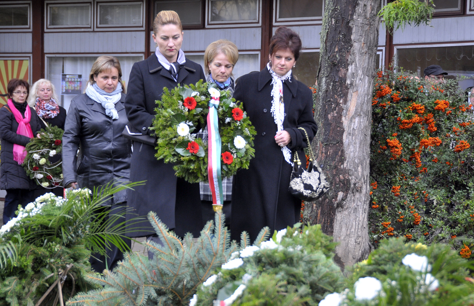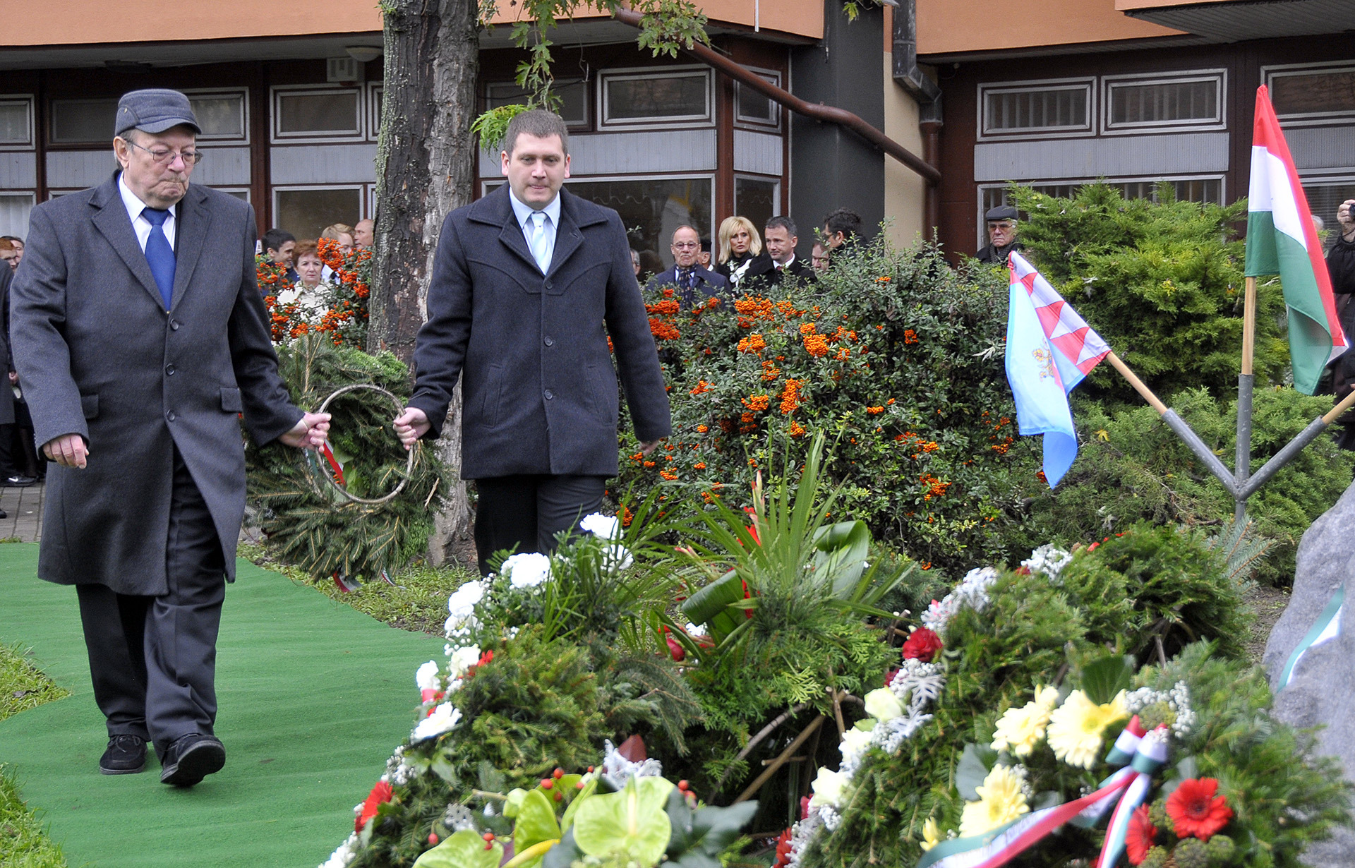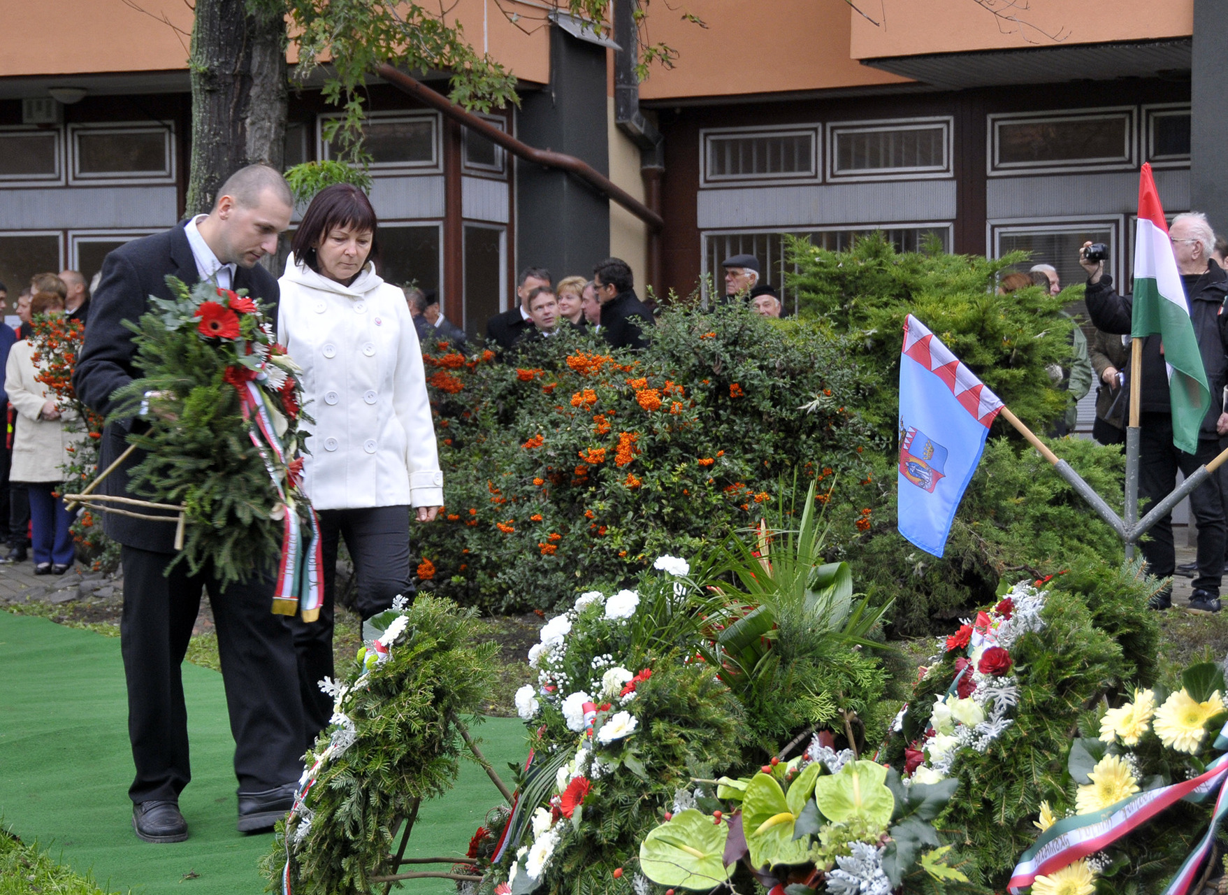 A megemlékezést ünnepi műsor és koszorúzás zárta az Október 23. téren.