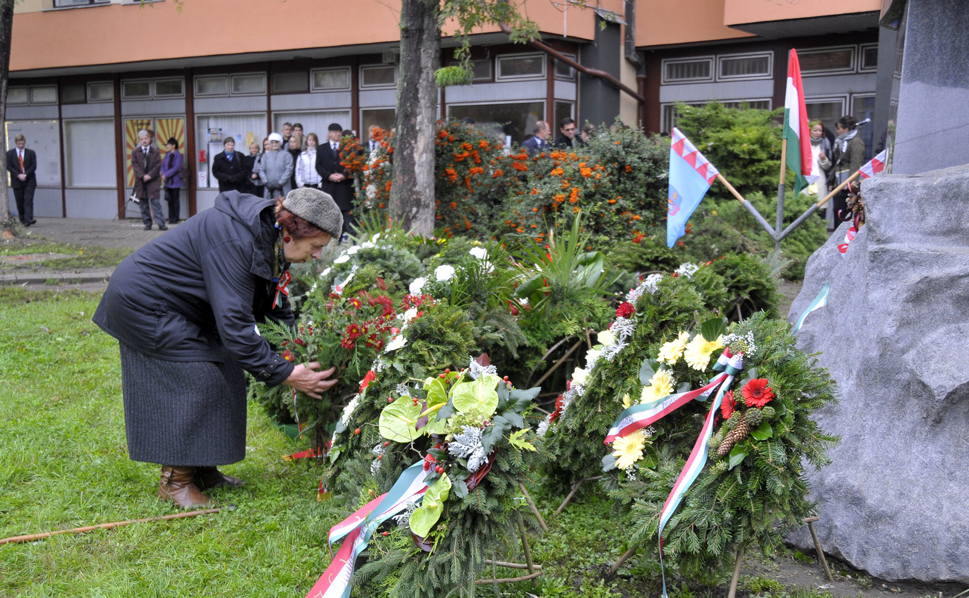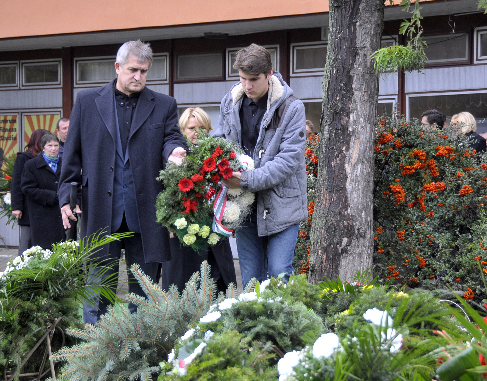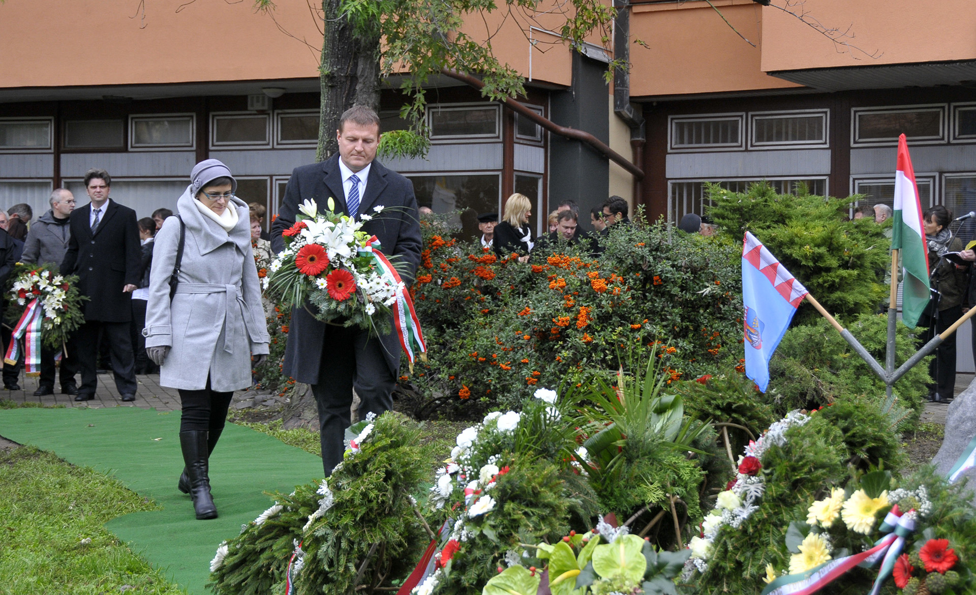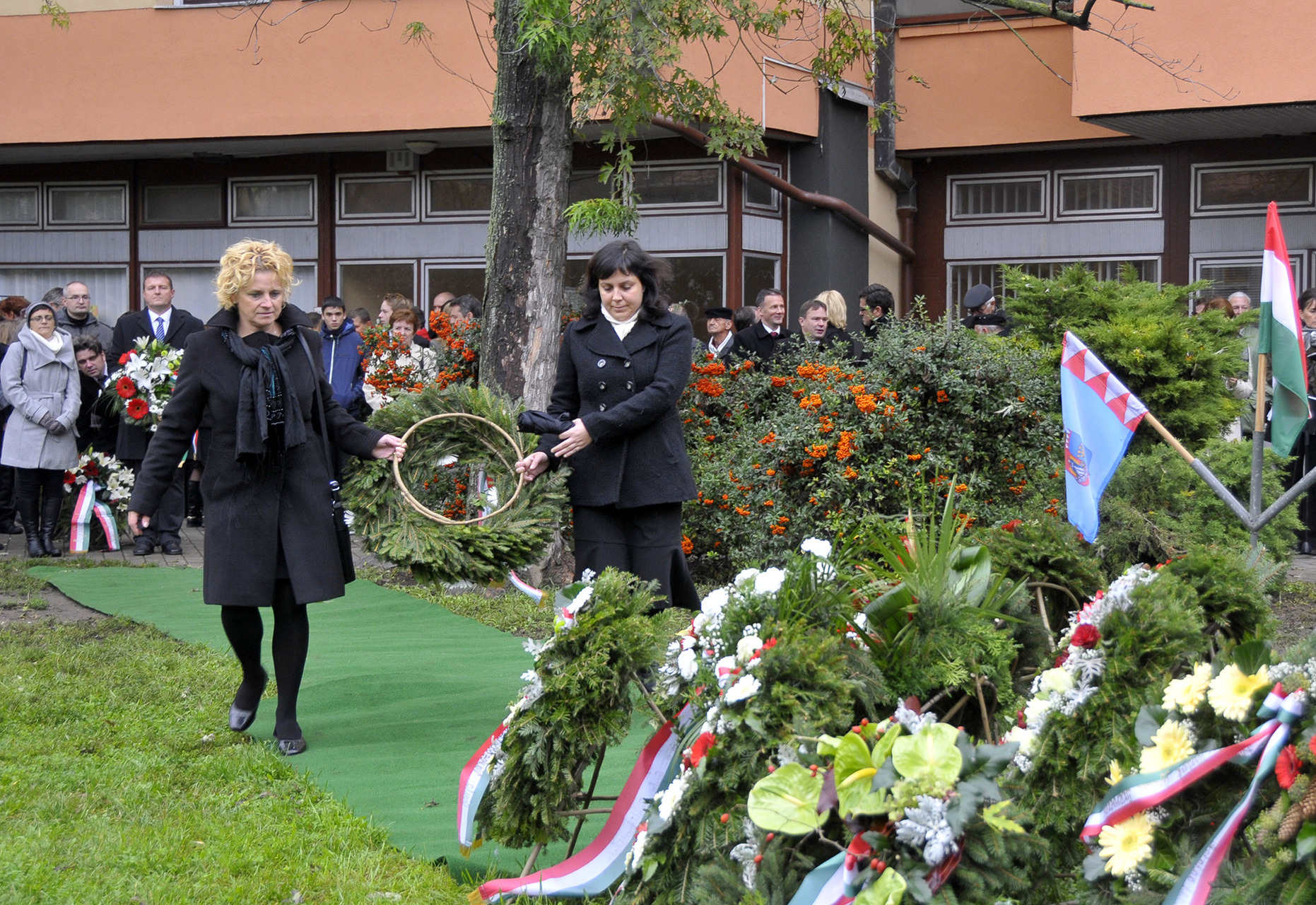 A megemlékezést ünnepi műsor és koszorúzás zárta az Október 23. téren.