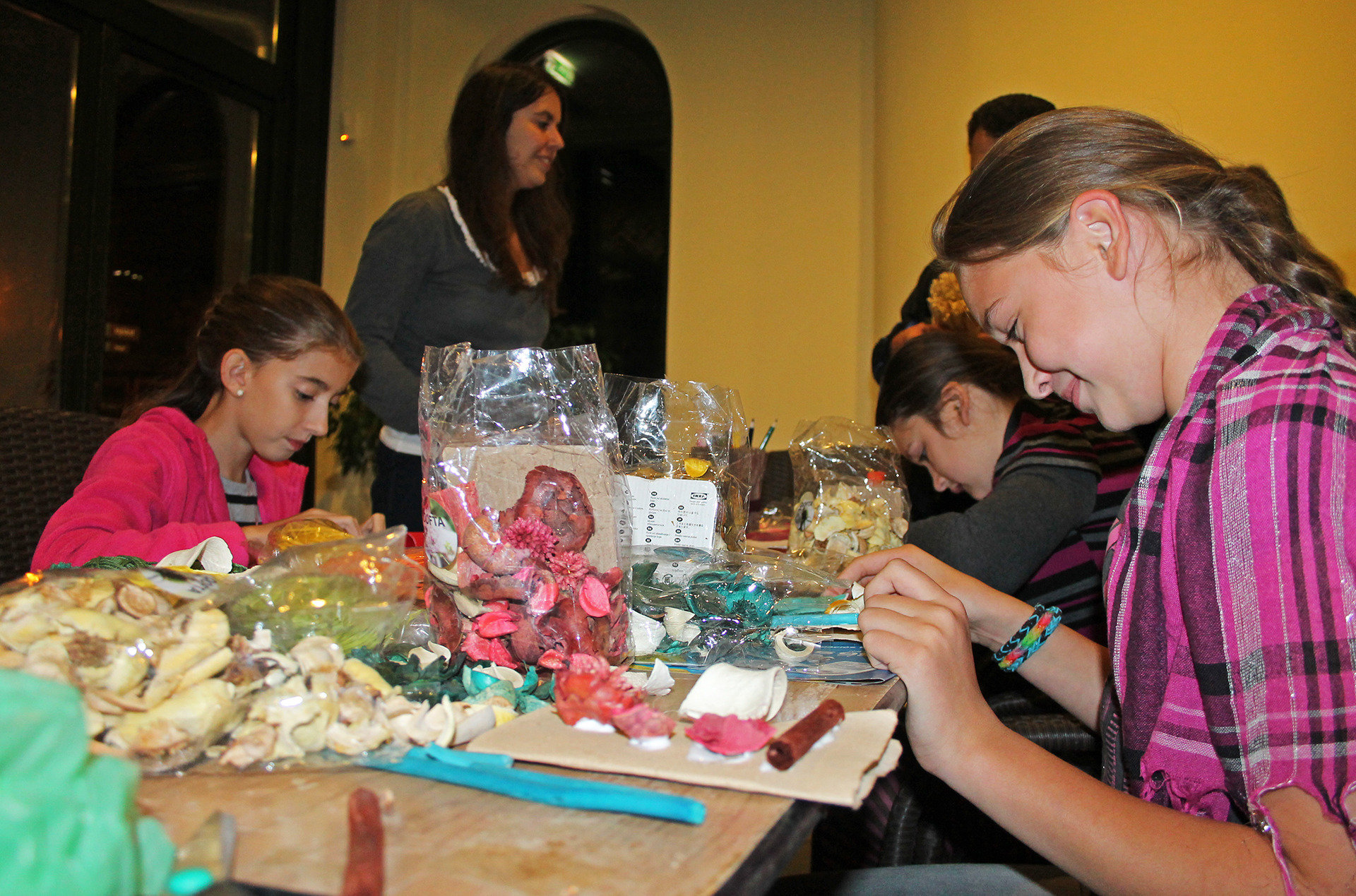 A táncház kísérőprogramjaként, a Vigadó előterében kézműves foglalkozáson is részt vehettek a fiatalok. Különleges díszek, színes szalagok, festékek és őszi termések felhasználásával képeslapokat, üdvözlőkártyákat, valamint kedves állatdíszeket készíthettek a résztvevők.