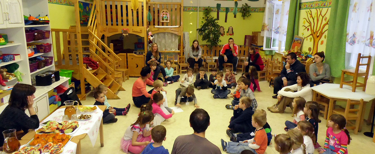 Az október 22-i Vitamin-nap az egészséges táplálkozást hangsúlyozó projekt zárónapja volt, melynek rendezvényére a szülőket is meghívták, akik ezúttal nem csak együtt barkácsolhattak és játszhattak gyermekeikkel, de a meghívott külsős előadók programjait is élvezhették. A nap elején Vaszkó Mónika, az ÁNTSZ munkatársa tartott projektoros vetítéssel egybekötött előadást a gyümölcsök egészségmegőrző szerepéről, később, a készségfejlesztő program részeként a gyümölcsök színével és alakjával ismerkedhettek a gyerekek, ami által a tanulás szintén játékos formában történt.