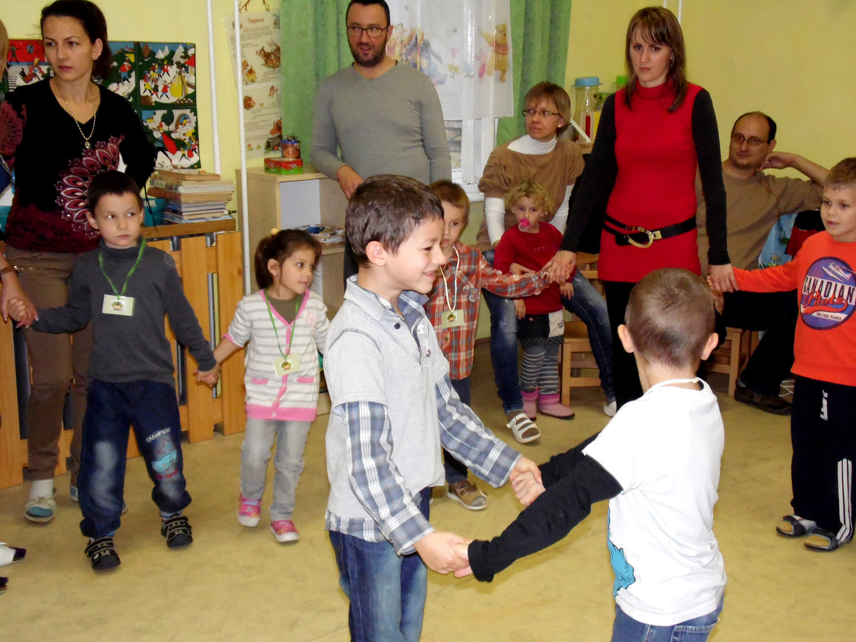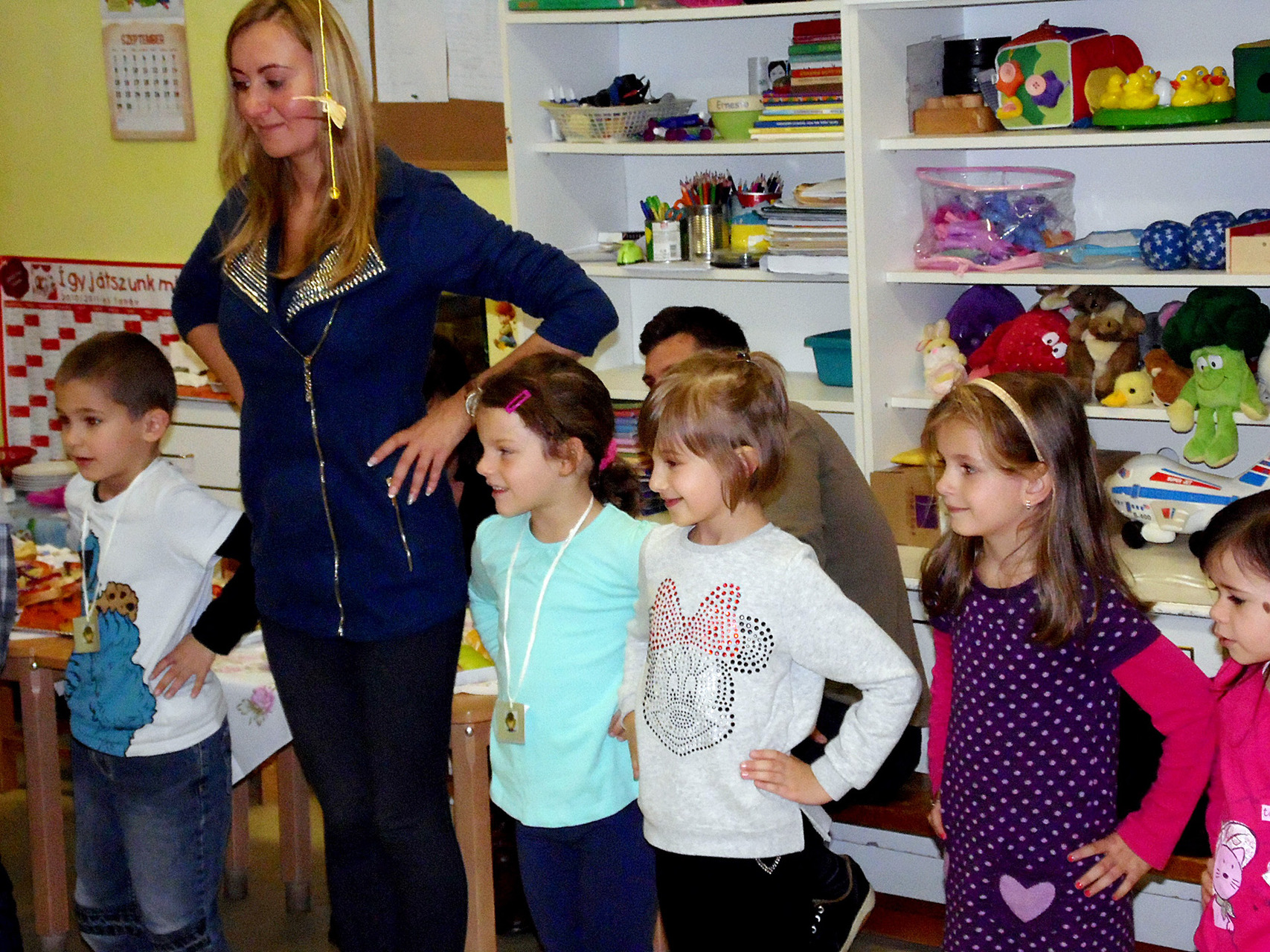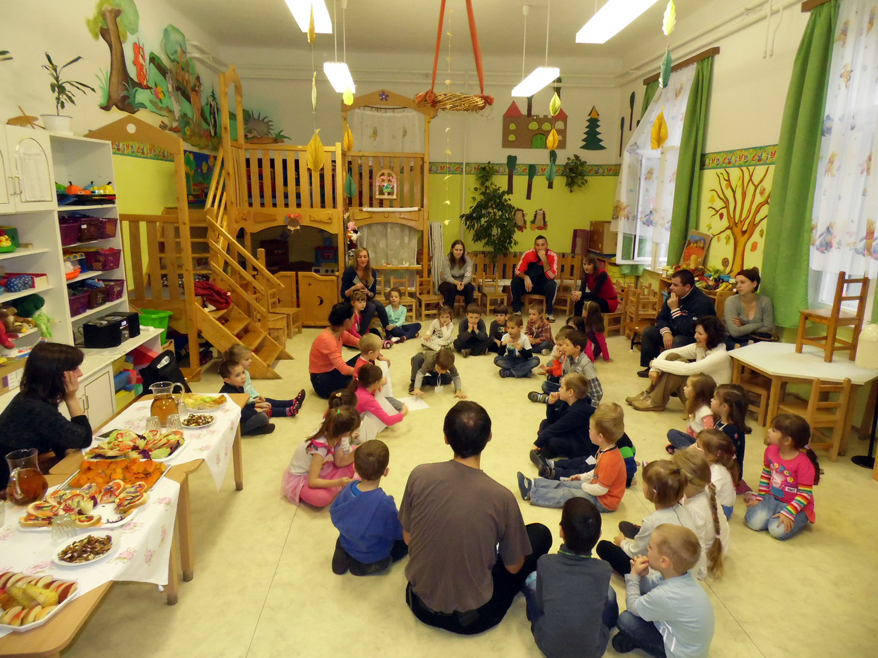 Mivel az őszi szüret a néphagyományok megismertetéséhez is remek alkalmat teremt, szüreti mulatságként Pluhárné Petneházi Enikő és Horváth Péter tartott a gyerekeknek bő egy órás énekes-táncos foglalkozást. Mindeközben pedig párhuzamos tevékenységként a kicsik és szüleik még gyurmázhattak, kézműveskedhettek is, természetesen gyümölcsök és zöldségek megformázásával.