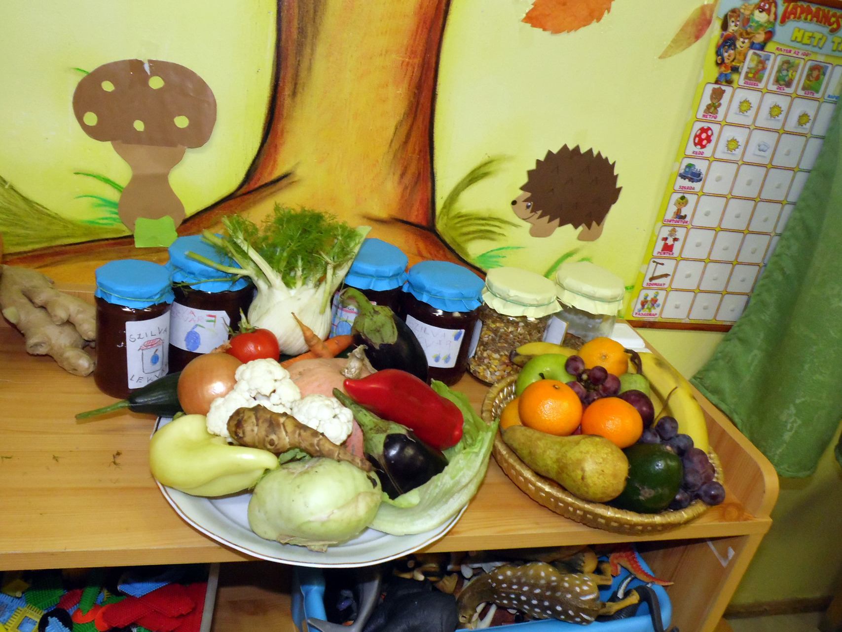 - Volt olyan év, amikor egy kiskertbe látogatva az óvodások maguk szedhették le a fákról az almát, vagy a tőkéről a szőlőt, most azonban – hasonló lehetőség híján – a szülők hozták be a legváltozatosabb terméseket a padlizsántól egészen a fokhagymáig – mutatta lelkesen a zöldségtálakat és gyümölcskosarakat a vezetőpedagógus.