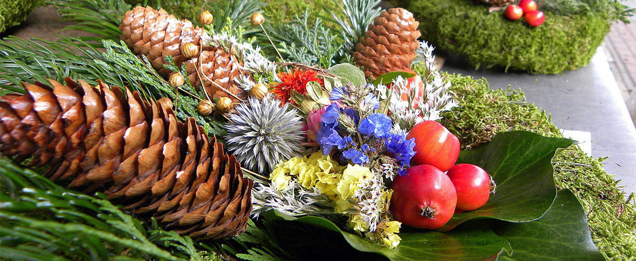 A tavalyi árakon kínálják a koszorúkat a gyulai piacon. Halottak napja közeledtével egyre élénkebb a forgalom a standoknál, ám a kereslet várhatóan az ünnep előtt néhány nappal erősödik fel igazán. A kínálat idén is igen változatos, a selyem- és műanyag díszek mellett toboz-, cirok-, gyékény-, széna-, fenyő-, moha- és szalmaalapú koszorút is vásárolhatunk különféle dekorációval és méretben.