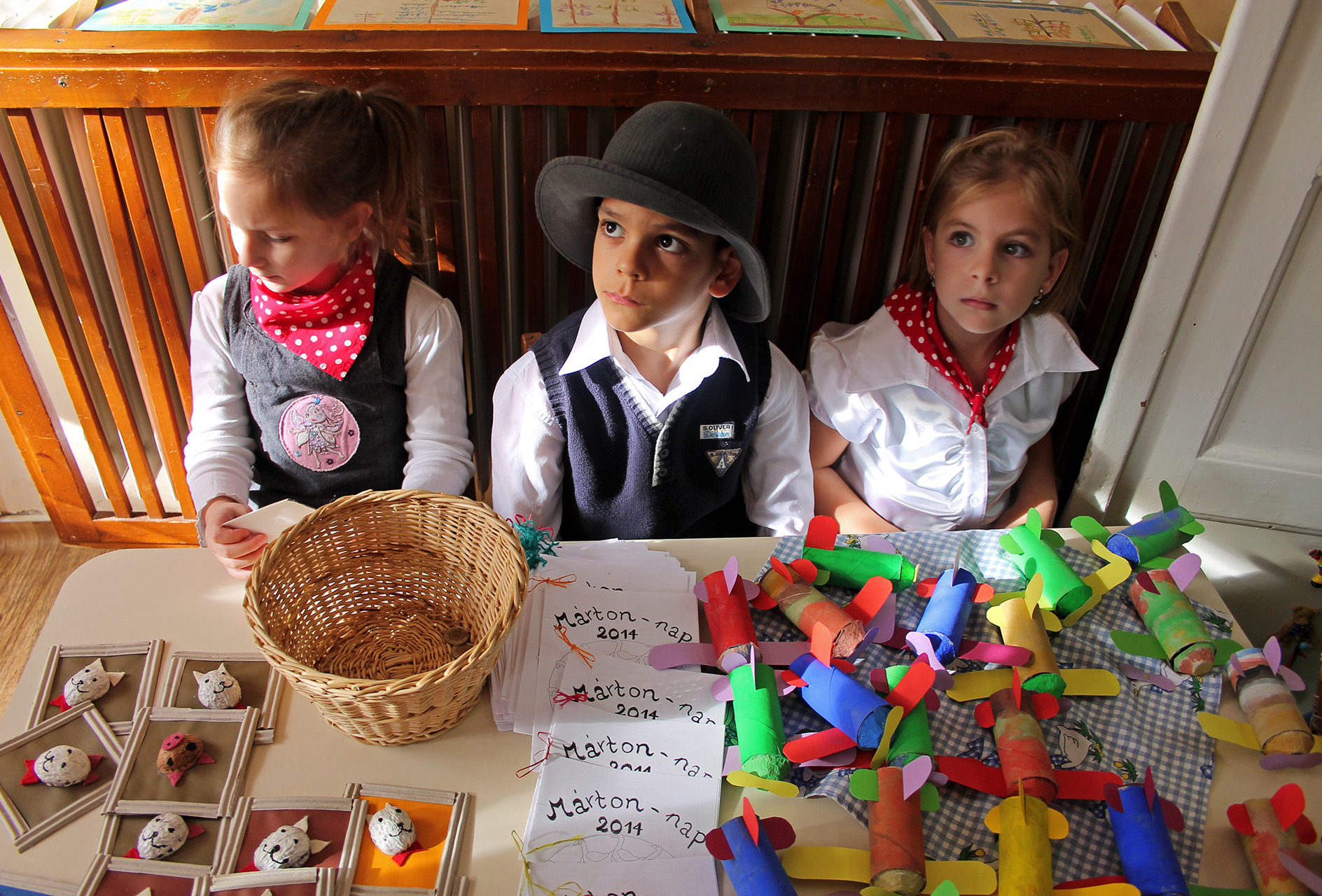 Dióhéjból készített állatokat, fakanálból gyártott Lúdas Matyit, libát formáló süteményeket és temérdek érdekes portékát kínáltak látogatóiknak a gyulai Galbácskerti Óvoda ügyes kezű csemetéi a november 11-én megrendezett Márton-napi vásáron. A 15 éves múltra visszatekintő rendezvényen a gyermekek saját kirakodópultjuk mögött ülve – épp, mint napjaink legtalpraesettebb kofái – hirdették áruikat, így biztatva a vendégeket az előttük heverő különleges holmik megvásárlására.