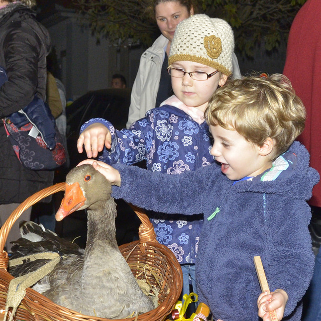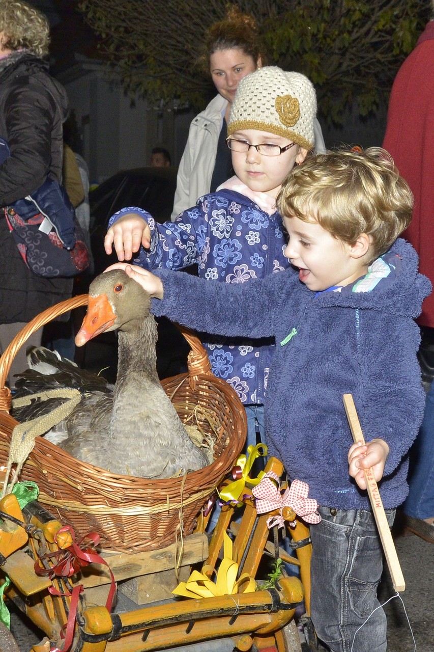 A megvendégelést követően a több mint ezer fős tömeg szebbnél szebb világító lampionokkal, közös éneklés közepette vonult el az óvodából az Apor térig, ahol színvonalas műsor várta az ünneplő sokaságot. A menetet a Legnehezebb lúd díjának nyertese, a 2,5 éves Libu gúnár vezette, aki a történéseket egy feldíszített kiskocsiból figyelhette.