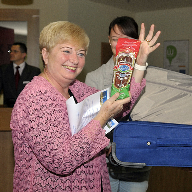 Tamáskovitsné Gila Éva, a Gyulahús Kft. marketingvezetője lapunknak kifejtette, a nyertes bőröndje 4,5 kilogrammnyi 250 grammos vákuumcsomagolt kolbászt rejt, amely január közepéig megtartja a frissességét, úgyhogy, ha jól el-, illetve beosztja a család, újévig is kitarthat az ajándék kolbászkészlet.