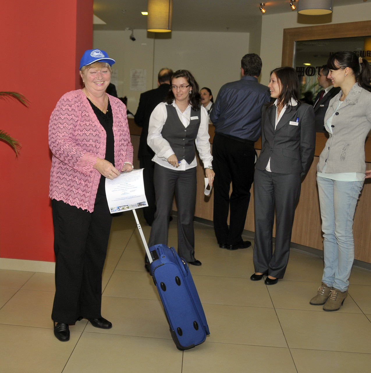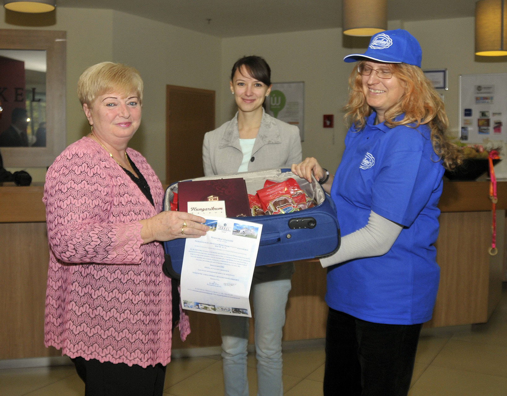 A játék első győztese Földesi Gáborné, aki hitvesével érkezett az átadásra. A fővárosban élő hölgy lapunknak elmondta, augusztusban nyaraltak városunkban. Az interneten, egy közösség oldalon találkozott a nyereményjátékkal, amelyre egy 10 soros kis versikével pályázott. Költeményében szerepel a gyulai kolbász, a gyulai pálinka és Gyula virágos közterületei. Földesi Gáborné hangsúlyozta, sok magyarországi fürdővárosban jártak már férjével, de Gyulán nemcsak a virágok mennyisége, de az emberek kiegyensúlyozottsága, kedvessége, mosolya is országszerte egyedülálló. Olyannyira megszerették a várost, hogy már el is határozták, hogy karácsonyra gyulai utazást ajándékoznak szeretteiknek.