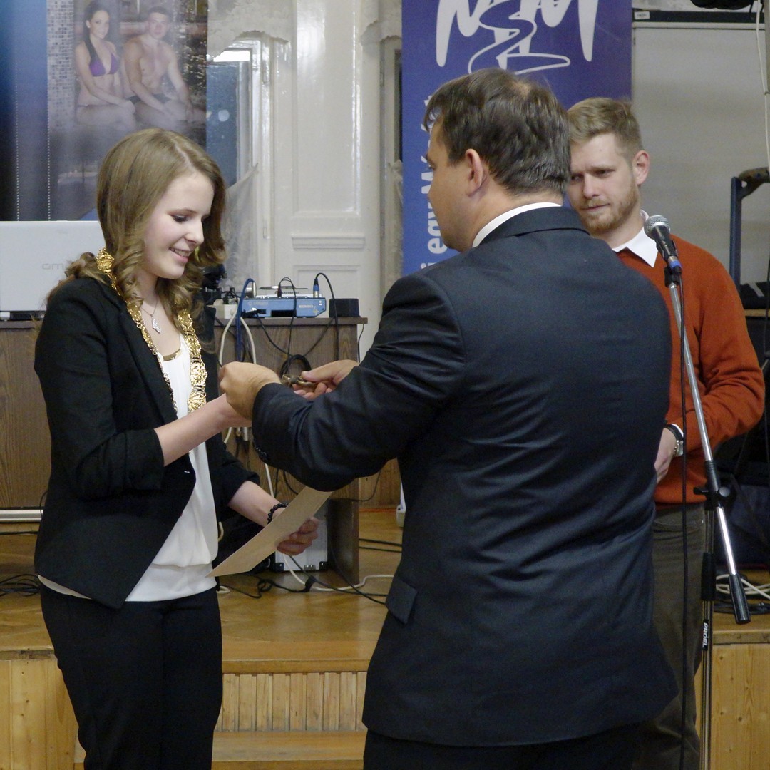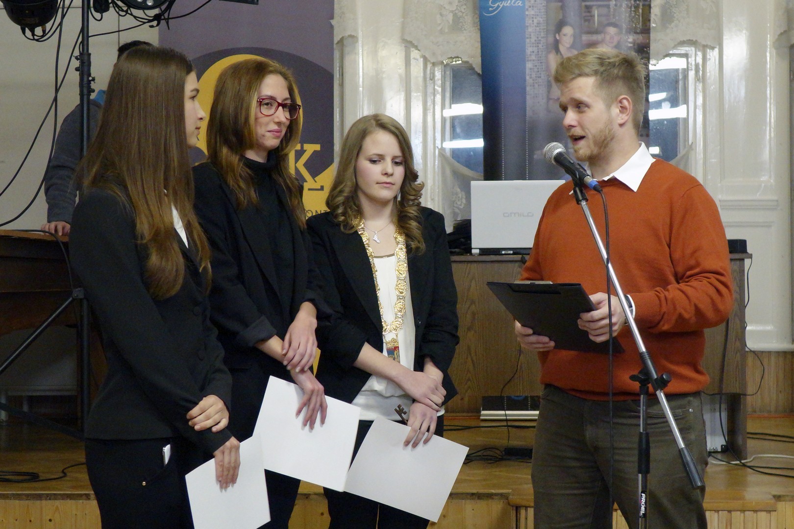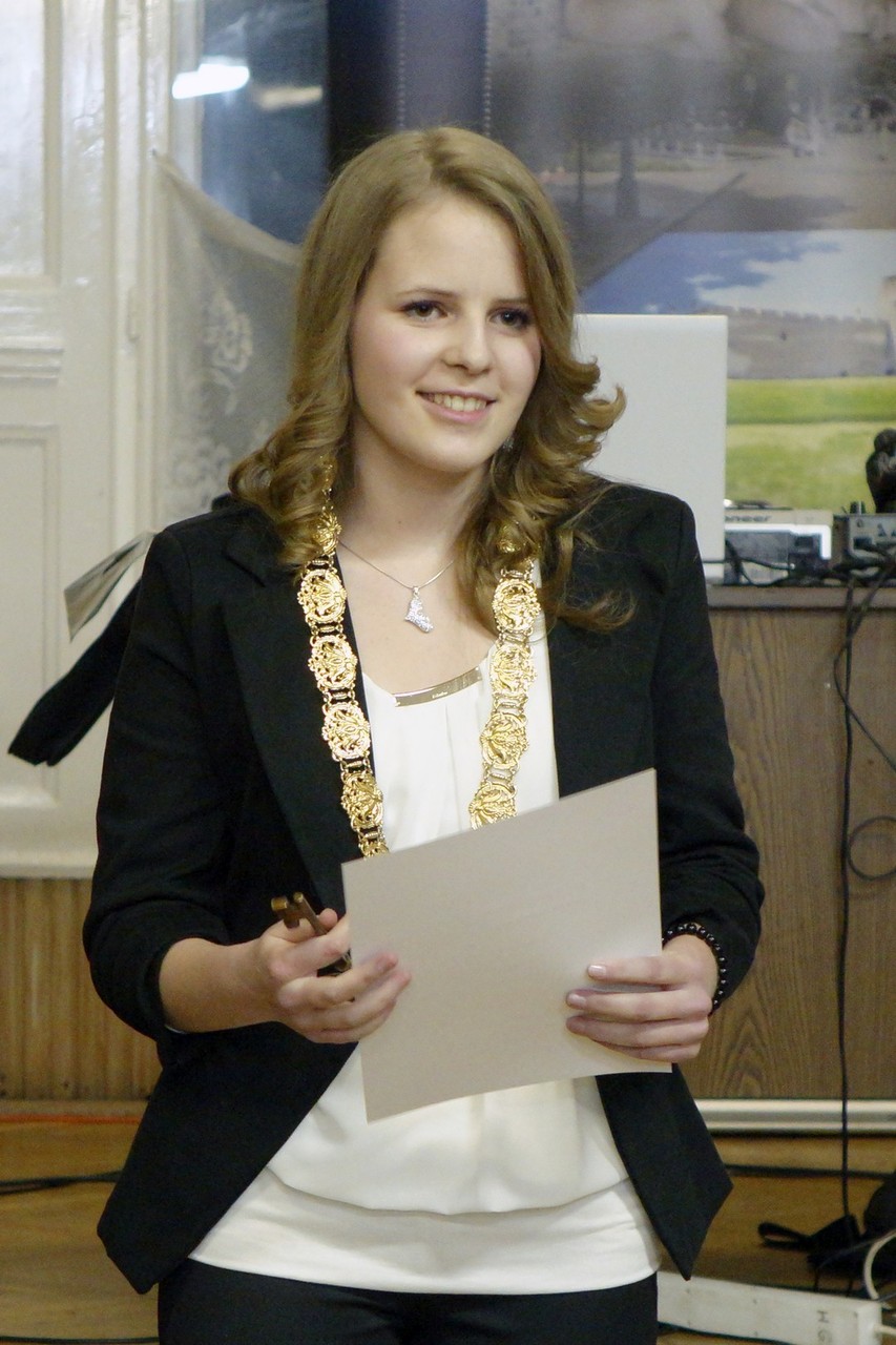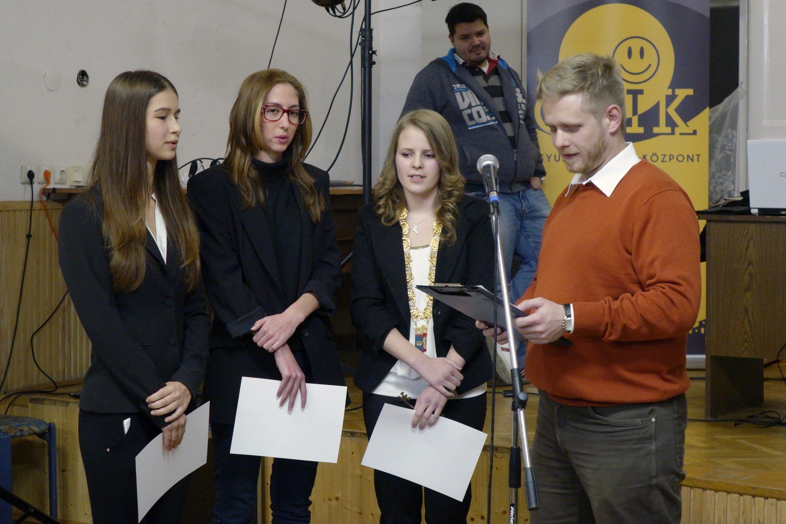 És végre elérkezett a várva várt eredményhirdetés! A választást egyértelmű fölénnyel Nyári Adrienn, a Nicolae Balcescu Román Gimnázium tanulója nyerte meg, így ő vehette át Kónya István alpolgármestertől a Gyula város címerével díszített láncot, valamint a város kulcsát. A 2014/2015-ös tanév diák-alpolgármesterei Juhász Lilla (Erkel Ferenc Gimnázium) és Rokszin Anett (Karácsonyi János Római Katolikus Gimnázium) lettek, akiknek egy-egy oklevelet nyújtott át az alpolgármester.