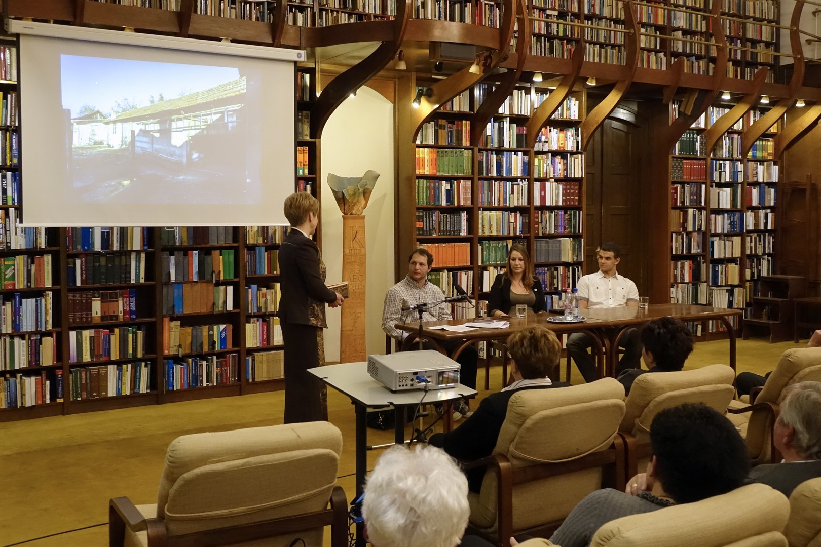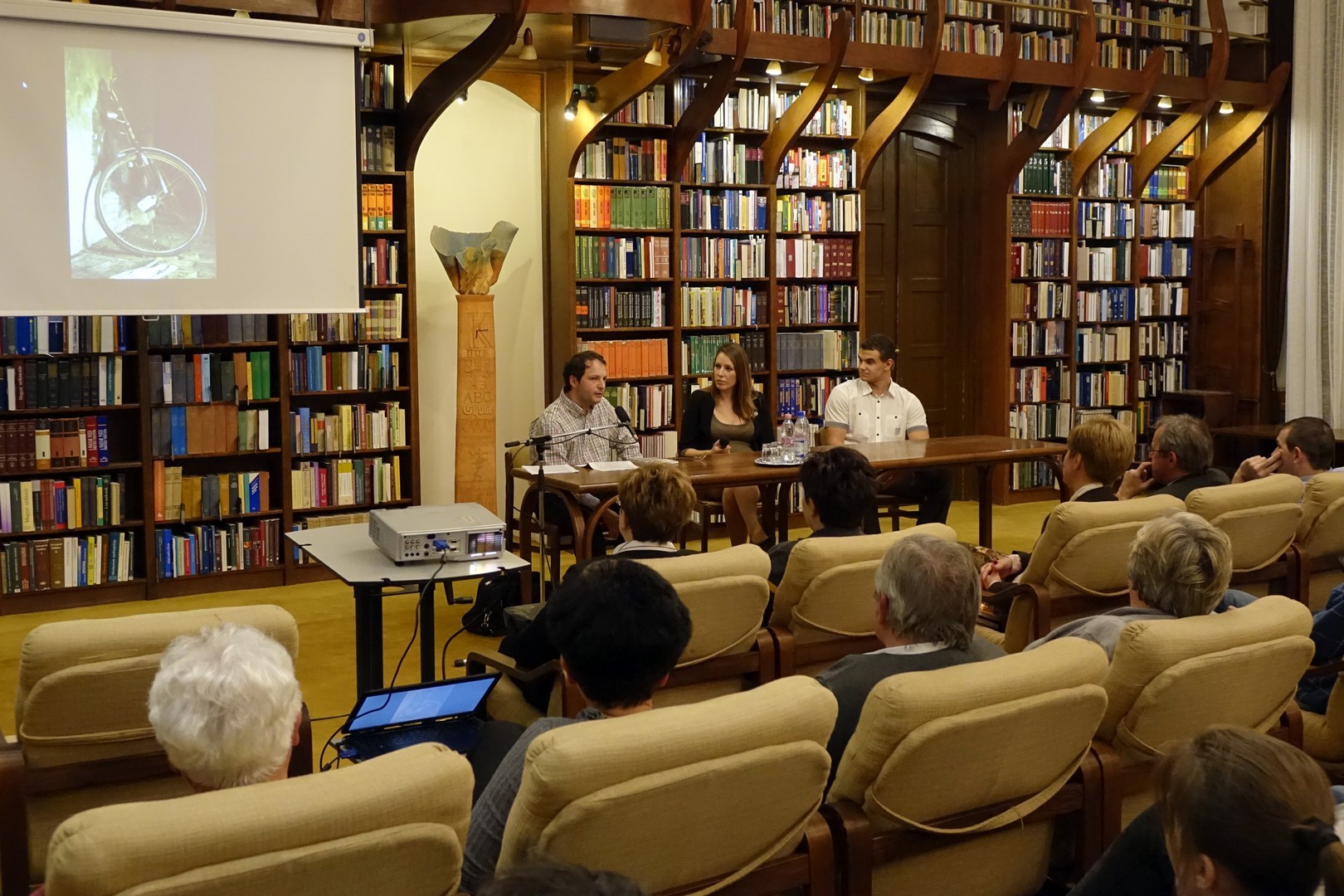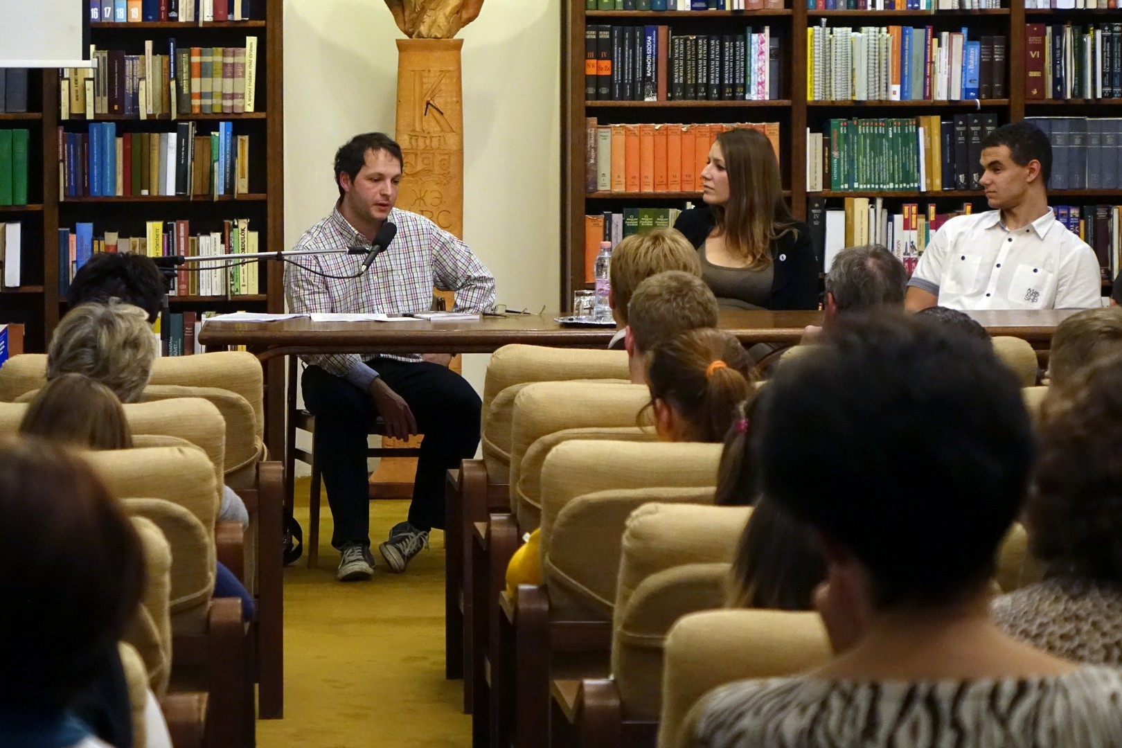 A házigazda szerepét betöltő Tóth Kata kérdésére az író (a gyulaiaknak Kiss László író és tanár úr) elmondta: az ifjú fotós nyár elején kereste meg a rendhagyó irodalmi est ötletével, amire némi hezitálás után, ősz elején mondott igent. Mint megtudtuk, a városi könyvtár lépcsőfordulójában kiállított és a nyitóprogramon vászonra kivetített fotók két németvárosi udvaron készültek.