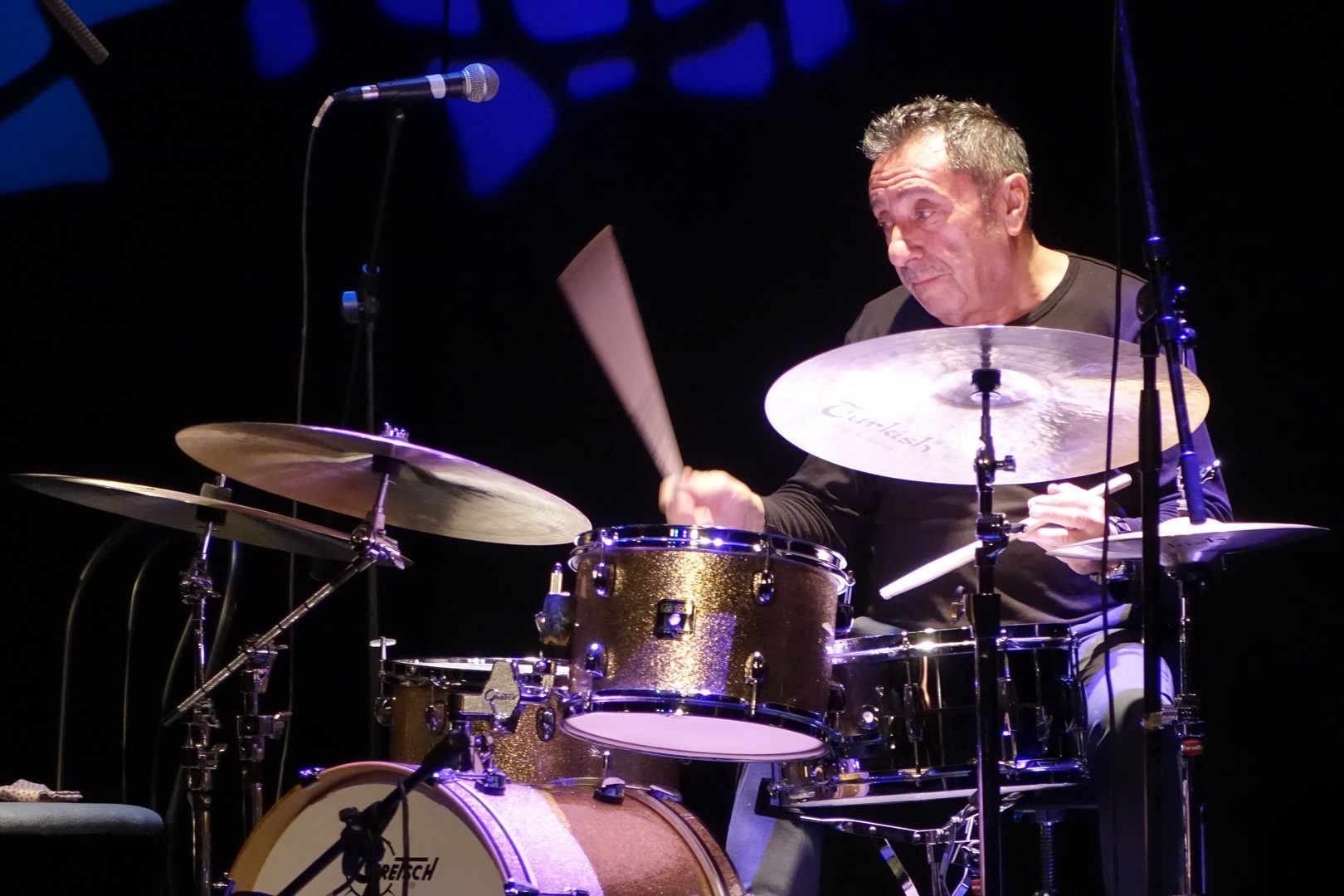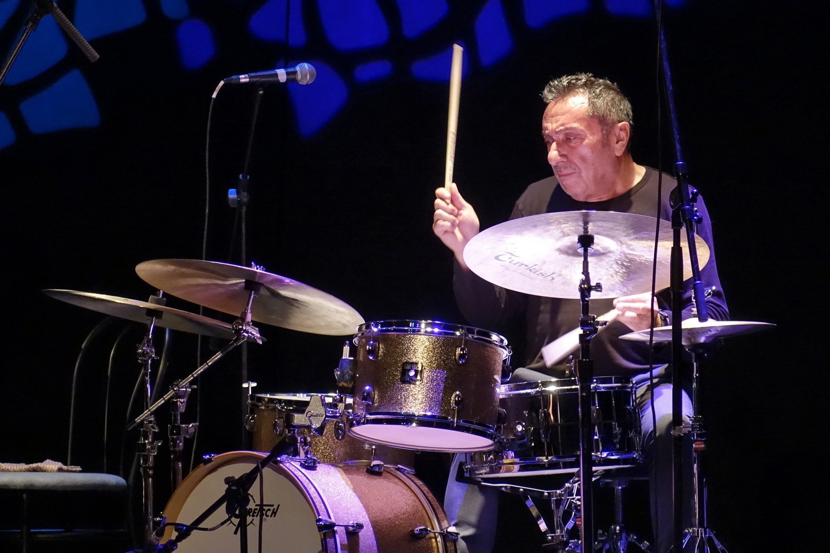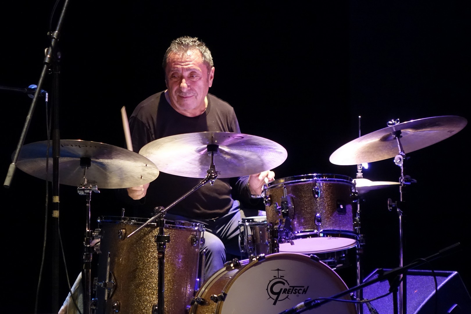 Az idén hetvenéves Liszt Ferenc-díjas jazzdobos, Kőszegi Imre közönségének elárulta, életének kezdetétől a dobolás vonzotta. A Bartók Béla Zeneművészeti Szakközépiskola és Gimnázium dobszakát több mint ötven éve végezte el, majd a legnagyobb hazai és külföldi nevekkel kezdett el muzsikálni – amelyek közül talán a leghíresebb Frank Zappa. Hat évig volt a Magyar Jazz Szövetség elnöke. Számos zenekart alapított, sajátos játéka több mint másfélszáz jazz- és popzenei felvételen hallható. Gyulai közönségének több megmosolyogtató, exkluzív sztorival szolgált: például amikor a gimi zenekarában együtt zenélt a pattanásos Szörényi Leventével…