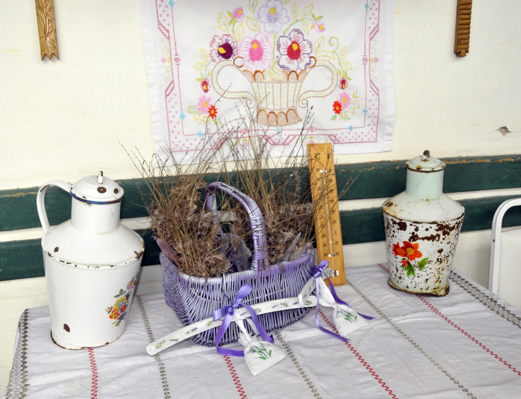 - Az összegyűjtött tárgyakon kívül olyan alkotásokat is elhelyeztünk ezen a teraszon, amelyeket gyerekek készítettek – mint levendulás kosarat, levendulás vállfákat illatzacskókkal, illetve a lépcsőfeljáró falára akasztott aranyos, kúpcserépből készült házikó díszeket. Ezeket az Implom József Általános Iskola 8. c. osztályának egy csoportja készítette el egy kreatív tábor alkalmával. Ők voltak azok is, akik művészeti különdíjat nyertek el a Tegyél 3 jó dolgot! című országos pályázaton két évvel ezelőtt. Ők még nem tudják, hogy hova kerültek az általuk kreált dísztárgyak, így ez számukra is meglepetés lesz majd – mondta lapunknak Elekné Kiss Barbara.