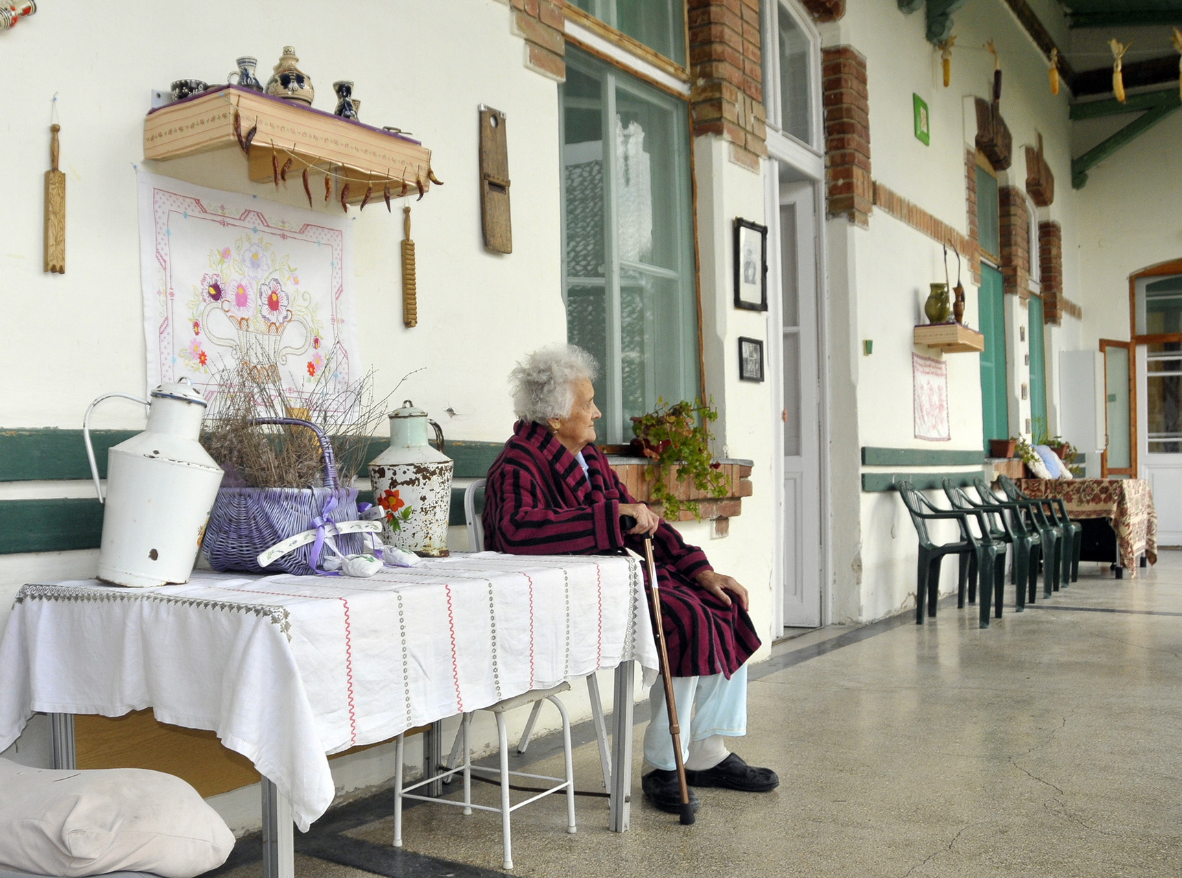 Agyagköcsögök, míves tányérok, hímzett falvédők, zománcos vizeskannák és régmúlt idők fényképei díszítik azt az új közösségi teret, amelyet idén nyáron alakítottak ki a Békés Megyei Pándy Kálmán Kórház Krónikus Belgyógyászati Osztályán, az egykori tüdőszanatórium területén. A pár hónappal ezelőtt létrehozott „falumúzeum” a részleg első emeleti erkélyén található, ahol a páciensek a kellemes levegőn üldögélve, a megnyugtató természetet csodálva elmélyedhetnek emlékeikben és a kihelyezett „ereklyéket” szemlélve, együtt nosztalgiázhatnak társaikkal.