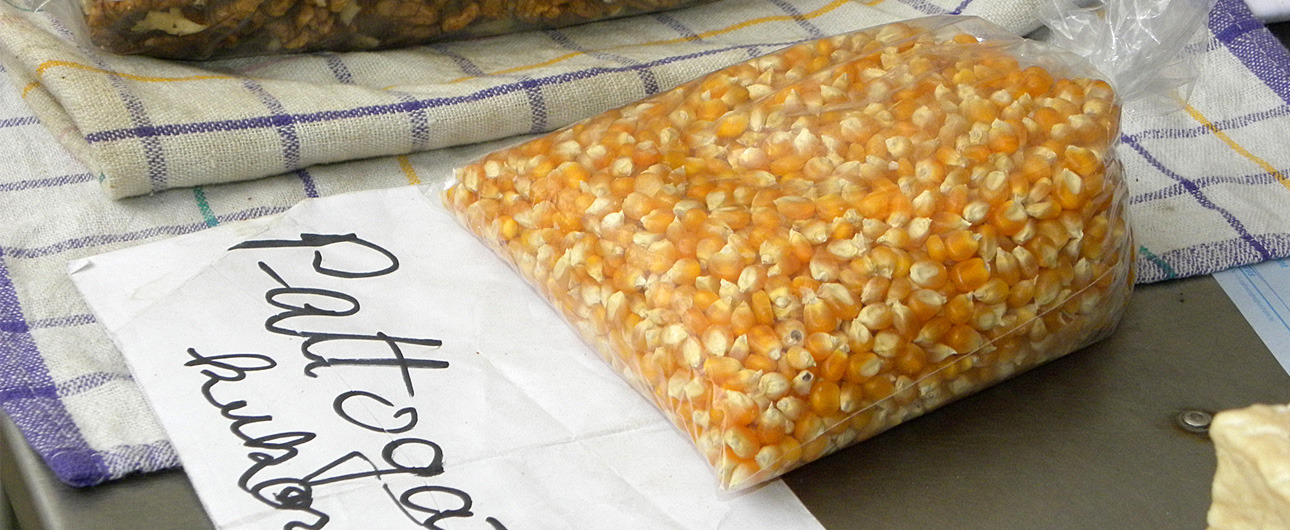 Volt olyan elárusítóasztal, ahol egykilós zacskókat kínáltak a vevőknek, és olyan standnál is jártunk, ahol félkilós vagy 20 dekagrammos csomagokat vásárolhattak a piacolók. Az asztalokat végigjárva az is kiderült, hogy az árusok különféle módon pattogatnak. Van, aki üres lisztes zacskóba teszi a szemeket, és mikrohullámú sütőben készíti el a kukoricát, mások régi kuktában vagy lábasban, fedő alatt melegítik fel a popcornt a kívánt hőmérsékletre.