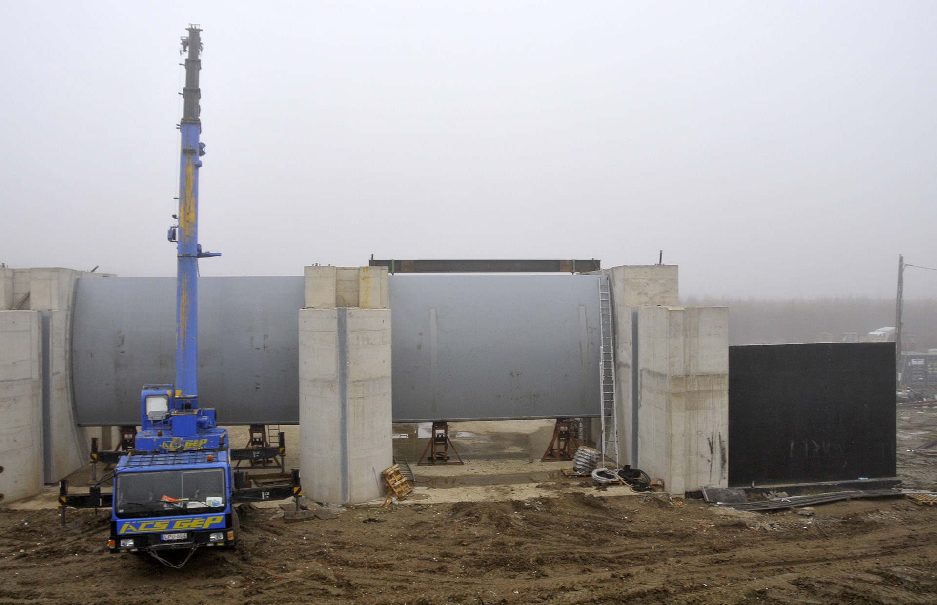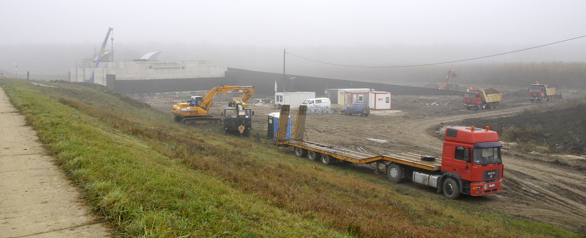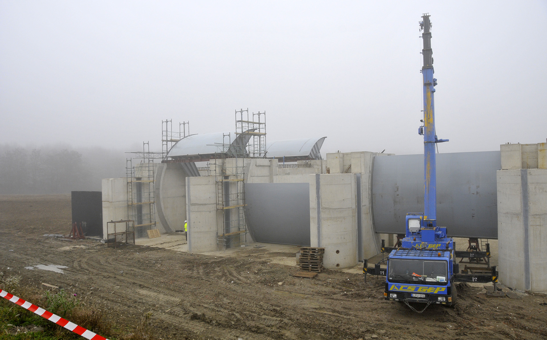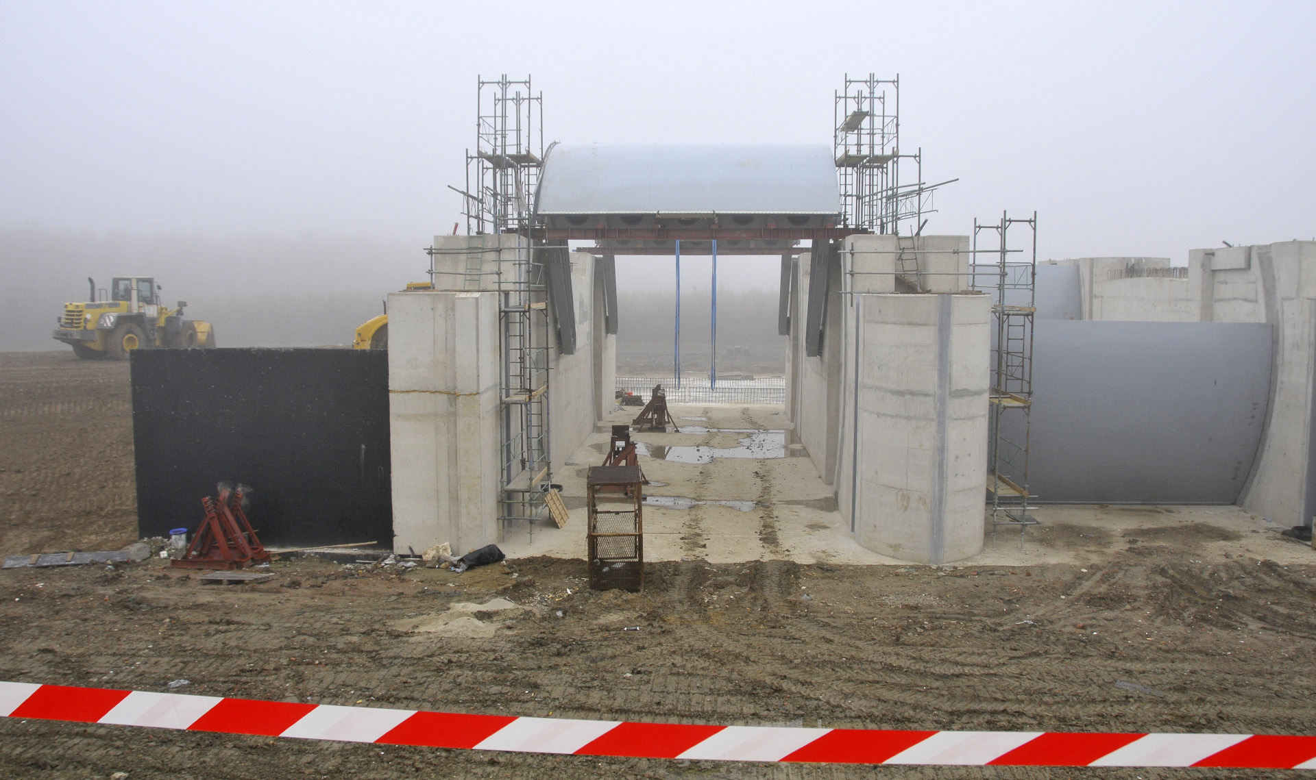 - Elkészültek a pillérek és beszerelték az elzáró szerkezeteket is. Az alsó megnyitási helyen gyakorlatilag a vízzáróság megteremtése történik. Amennyiben ezt követően az elzáró szerkezetek nyomáspróbája, illetve víztartási próbája eredményes lesz, kialakulhat a töltés végleges formája is, hiszen itt tulajdonképpen egy híd jön majd létre. Mindemellett a későbbiekben vasbetonburkolat megépítésével biztosítják, hogy a víz elvezetése, illetve visszavezetése biztonságosan megtörténhessen anélkül, hogy a víz elöntené a környező területeket – ismertette az alsó megnyitási hely munkálatait Kisházi Péter Konrád.