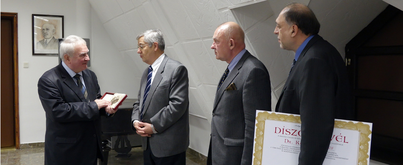 A Tauffer Vilmos-díjat dr. Bártfai György és dr. Veszprémi Béla, a társaság elnöke adta át dr. Kovács Józsefnek. Az elnök méltató beszédében hangsúlyozta: a kitüntetett nagy mértékben támogatta a társaság munkáját, és kiemelkedő módon képviselte annak eszméit.