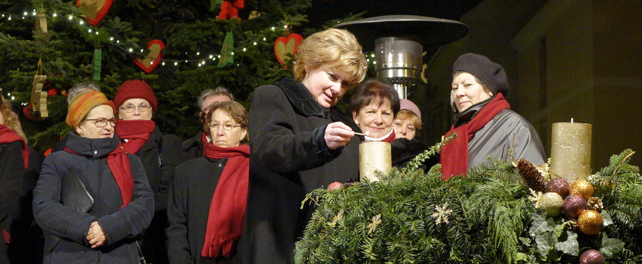 Kiss Tamásné önkormányzati képviselő meggyújtotta az első gyertyát, majd az Erkel Ferenc Vegyes Kar előadásában karácsonyi énekeket hallhattak az egybegyűltek.
