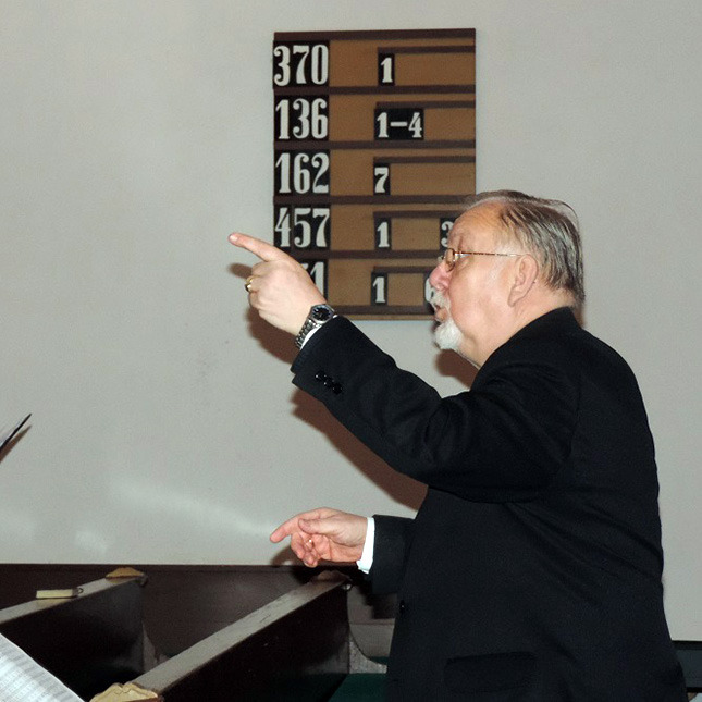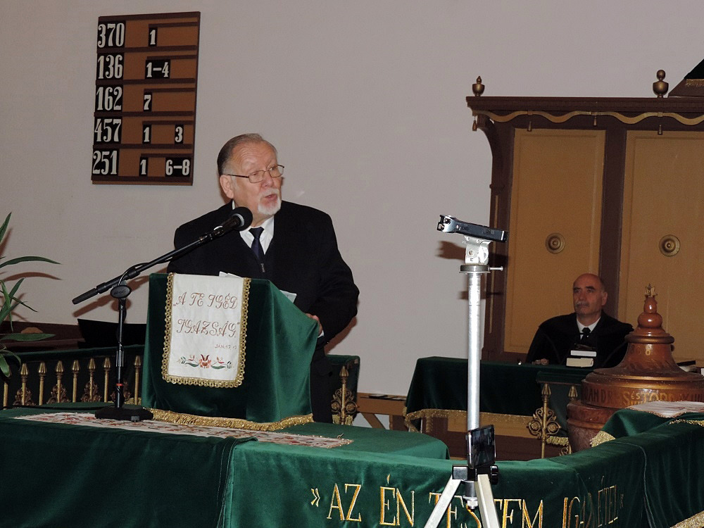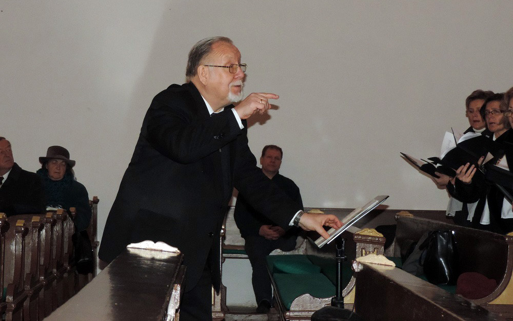 A betanult művek közül hármat szólaltatott meg a kórus a református templomban, a vasárnapi istentiszteleten. Berkesi Sándor a művekhez zeneművészeti és kultúrtörténeti bevezetőt fűzött. Elsőként Bárdos Lajos „A Földhez” című vegyes karra írt, ritkán hallható műve csendült fel, amelyet Kölcsey Ferenc szépen ívelő, filozofikus hangvételű verssoraira írt. Ezt követte Kodály Zoltánnak a „Semmit ne bánkódjál…” című nehéz, és felemelően szép alkotása, amelyet Magyarország német megszállásának évében, 1939-ben írt a Nagykőrösi Református Tanítóképző Intézet fennállásának 100. évfordulójára. Berkesi Sándor felhívta a figyelmet arra, hogy a szövegnek, amelyet Szkhárosi Horvát András, a tragédiákkal teljes XVI. század református prédikátora írt, máig ható üzenete van. A sort Felix Mendelssohn szerzeménye, az Isten után vágyakozó ember érzéseit kifejező 42. zsoltár zárta. Zongorakíséretet Nátor Éva adott.