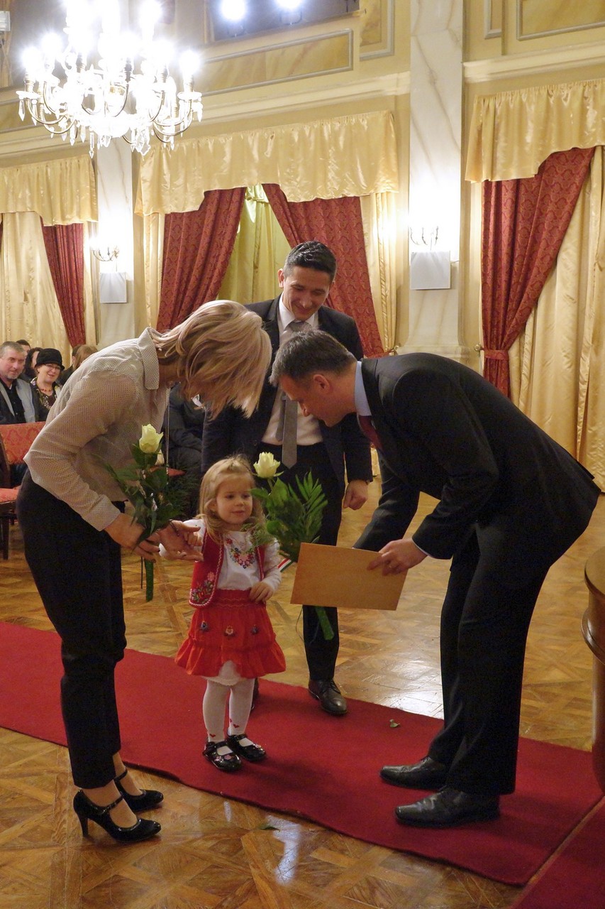 Az ünnepség Wass Albert Üzenet haza című költeményével folytatódott, amelyet Bálint Gergő szavalt el a megjelenteknek. Ezt követően dr. Görgényi Ernő átnyújtotta az állampolgári okiratokat a honosított magyaroknak, és – a közelgő ünnepekre való tekintettel – egy kis ajándékcsomaggal is kedveskedett új állampolgárainknak. A nemzeti himnusz közös eléneklését követően a jelenlévők pezsgővel koccintottak, így pecsételve meg a magyar nemzethez való tartozásukat.