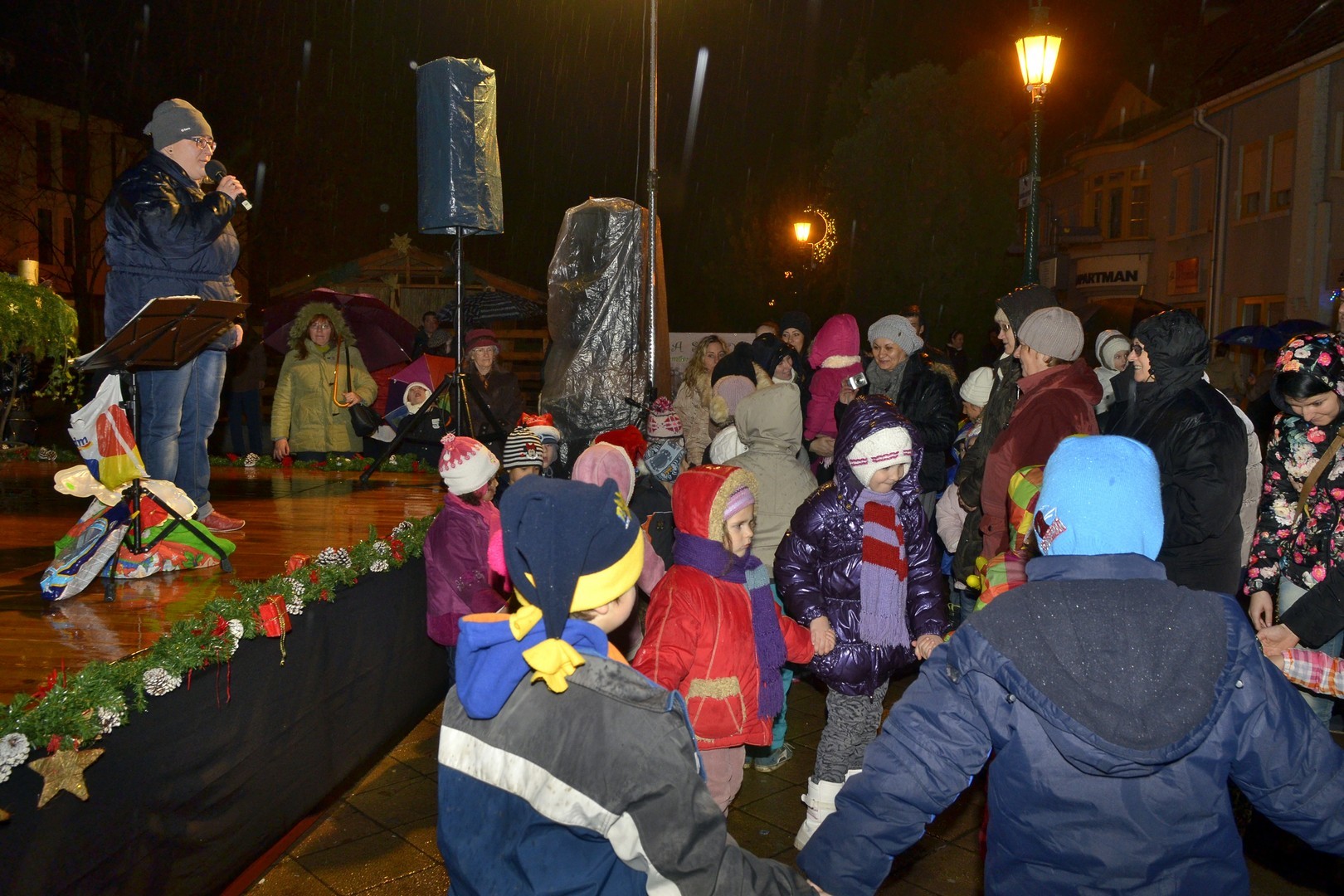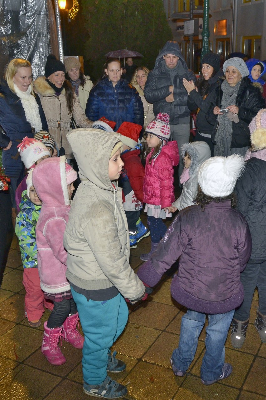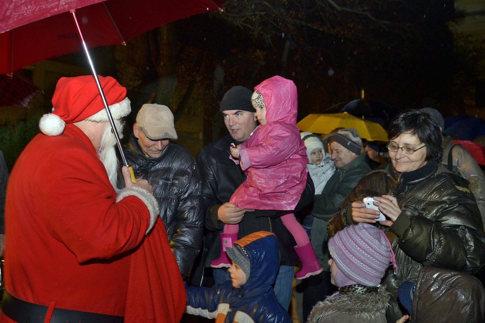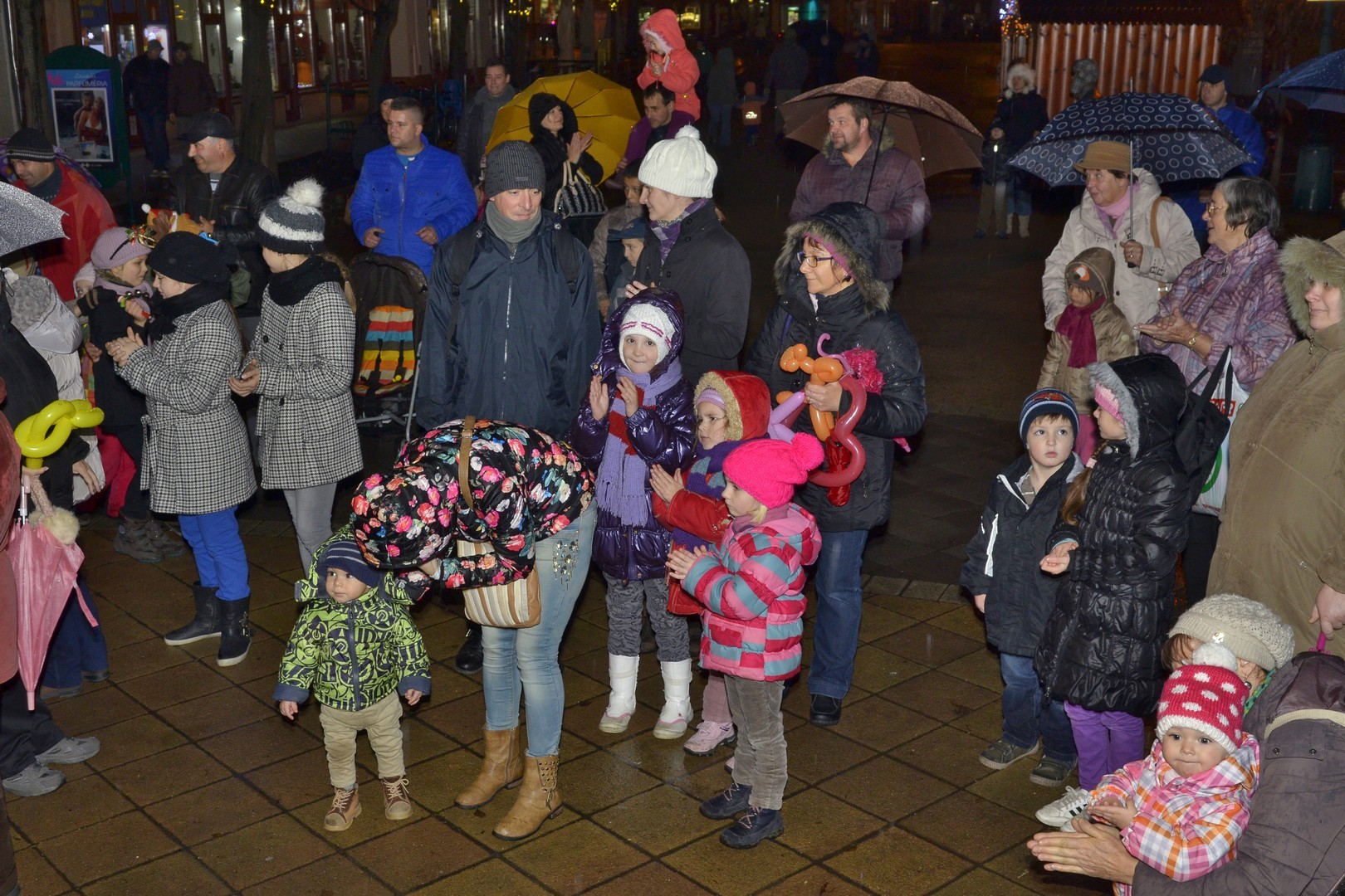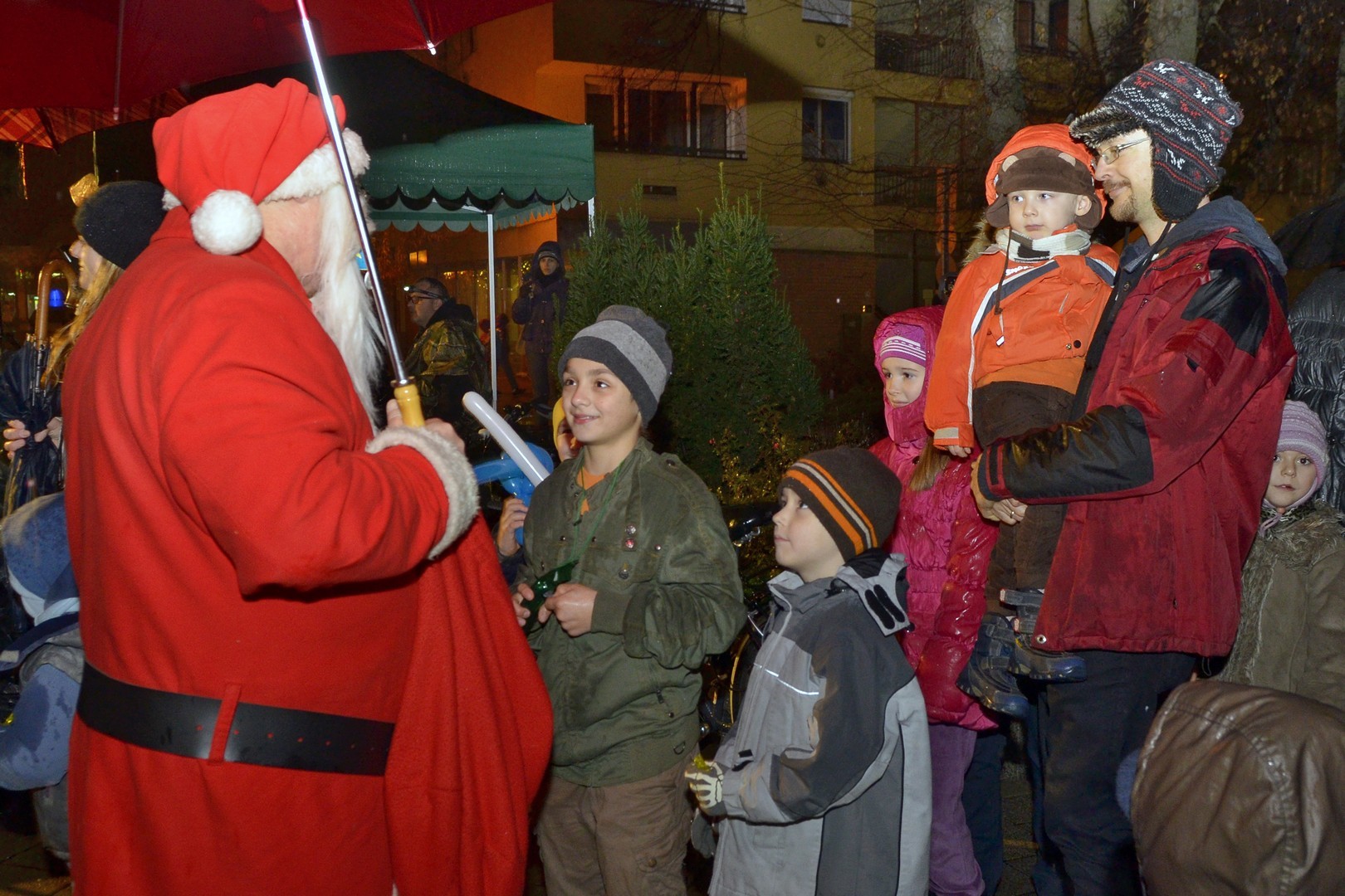Bodrogközi Rita nógatására a gyermekek egyszerre olyan hangosan kezdtek el énekelni, hogy azt még Lappföldön is meghallották az emberek, köztük a Télapó is, aki – mivel maga is szereti a muzsikát – rögvest városunkba sietett. Hintójáról leszállva a nagyszakállú a színpadra igyekezett, és a kicsikkel közösen el is dalolt néhány ünnepi nótát. Ezután a gyermekek is felmehettek a Mikuláshoz, hogy megmutassák neki, milyen szép énekeket és verseket ismernek. Cserébe a pirosruhás puttonyából megannyi finomság, cukros csemege került elő. Az ajándékosztás minden picúr arcára széles vigyorokat csalt, a teret gyermeki kacajok töltötték meg.