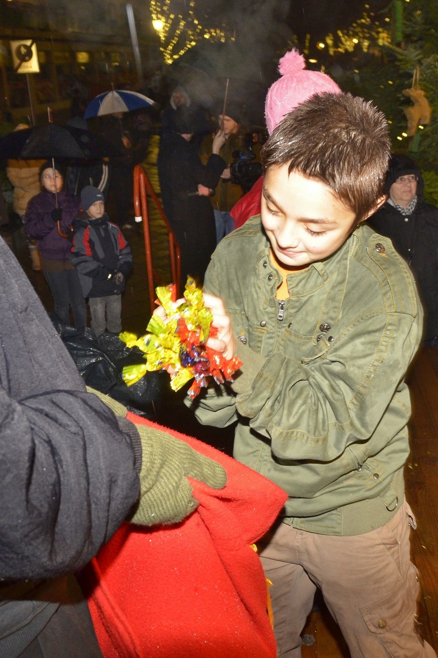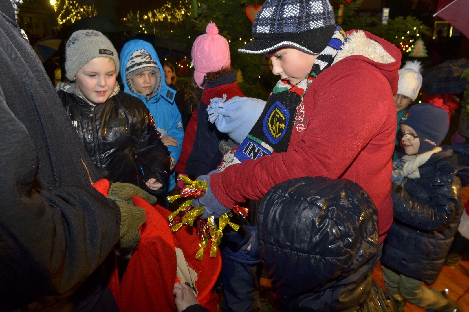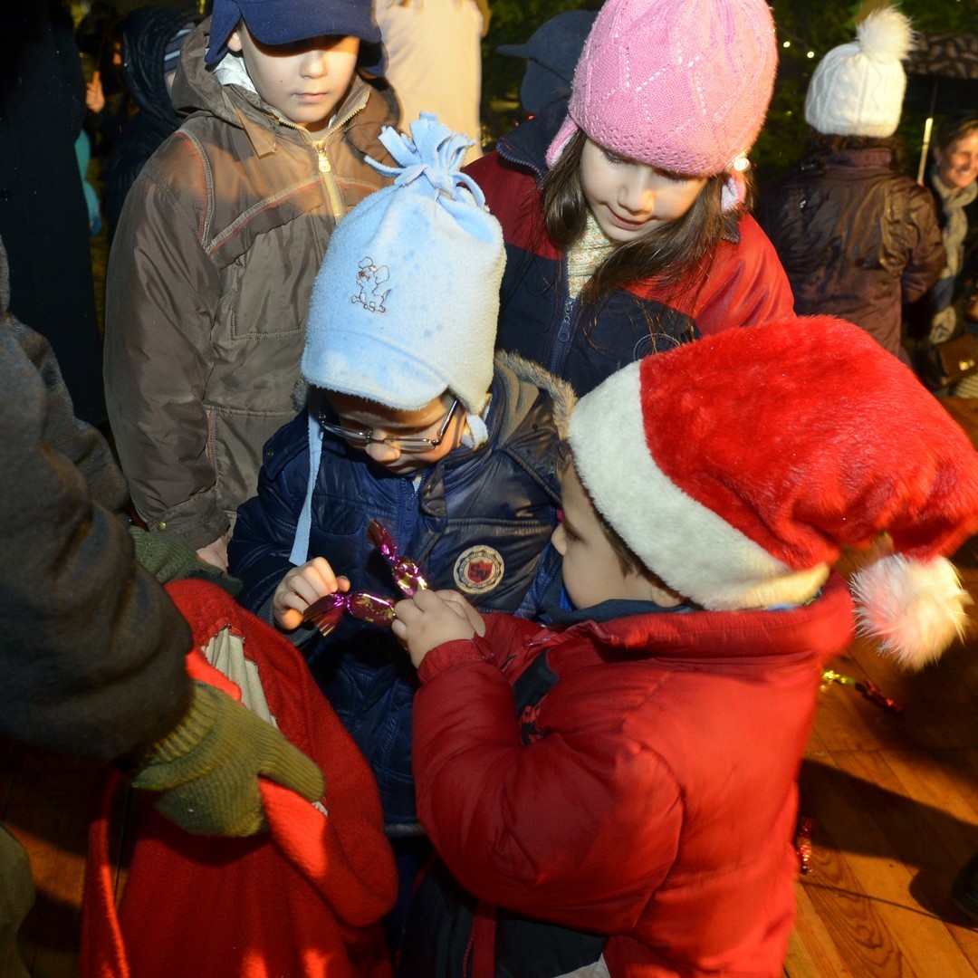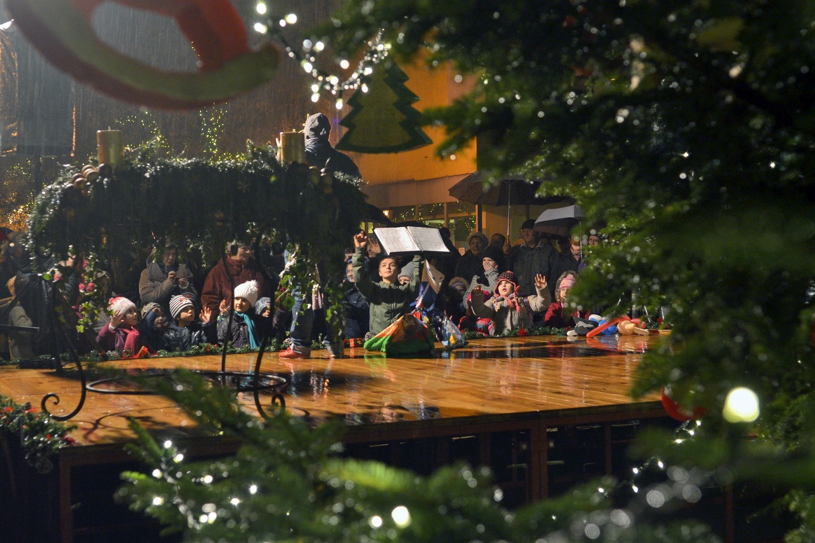 Bodrogközi Rita nógatására a gyermekek egyszerre olyan hangosan kezdtek el énekelni, hogy azt még Lappföldön is meghallották az emberek, köztük a Télapó is, aki – mivel maga is szereti a muzsikát – rögvest városunkba sietett. Hintójáról leszállva a nagyszakállú a színpadra igyekezett, és a kicsikkel közösen el is dalolt néhány ünnepi nótát. Ezután a gyermekek is felmehettek a Mikuláshoz, hogy megmutassák neki, milyen szép énekeket és verseket ismernek. Cserébe a pirosruhás puttonyából megannyi finomság, cukros csemege került elő. Az ajándékosztás minden picúr arcára széles vigyorokat csalt, a teret gyermeki kacajok töltötték meg.