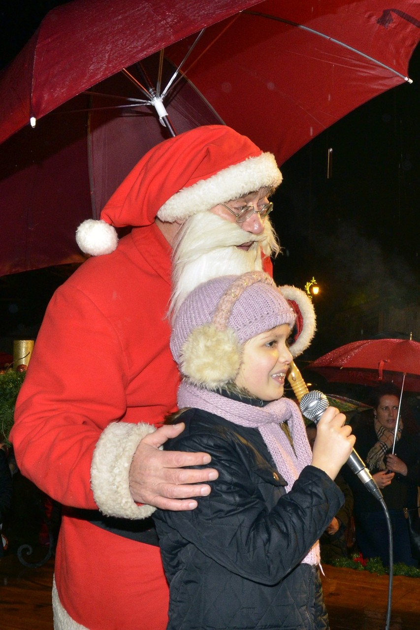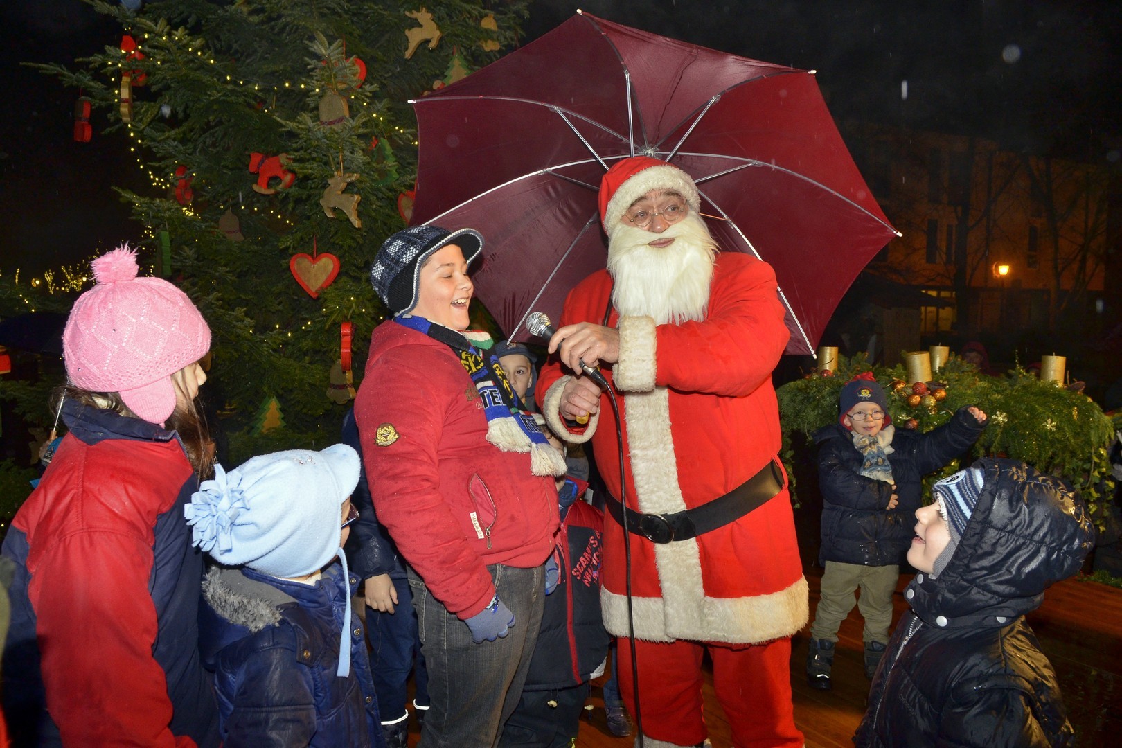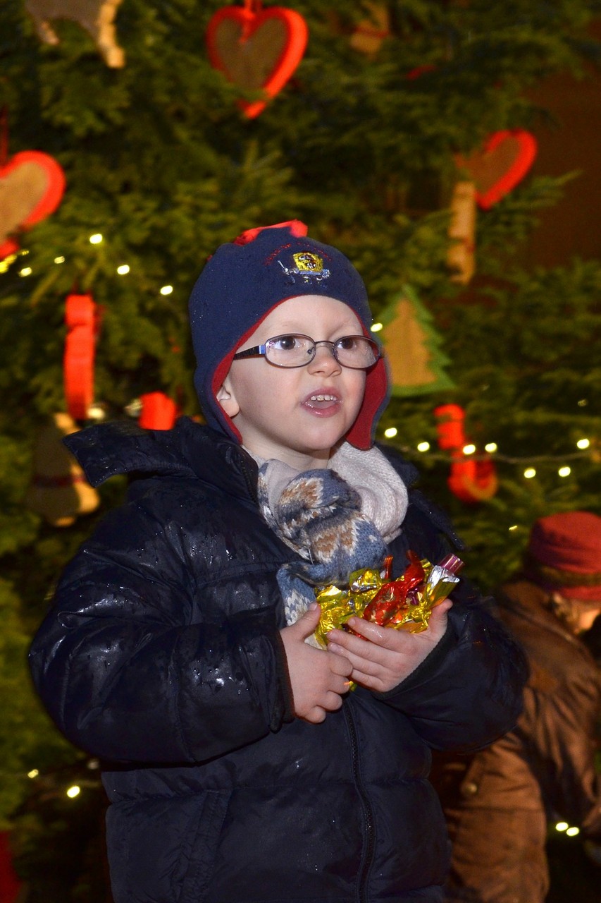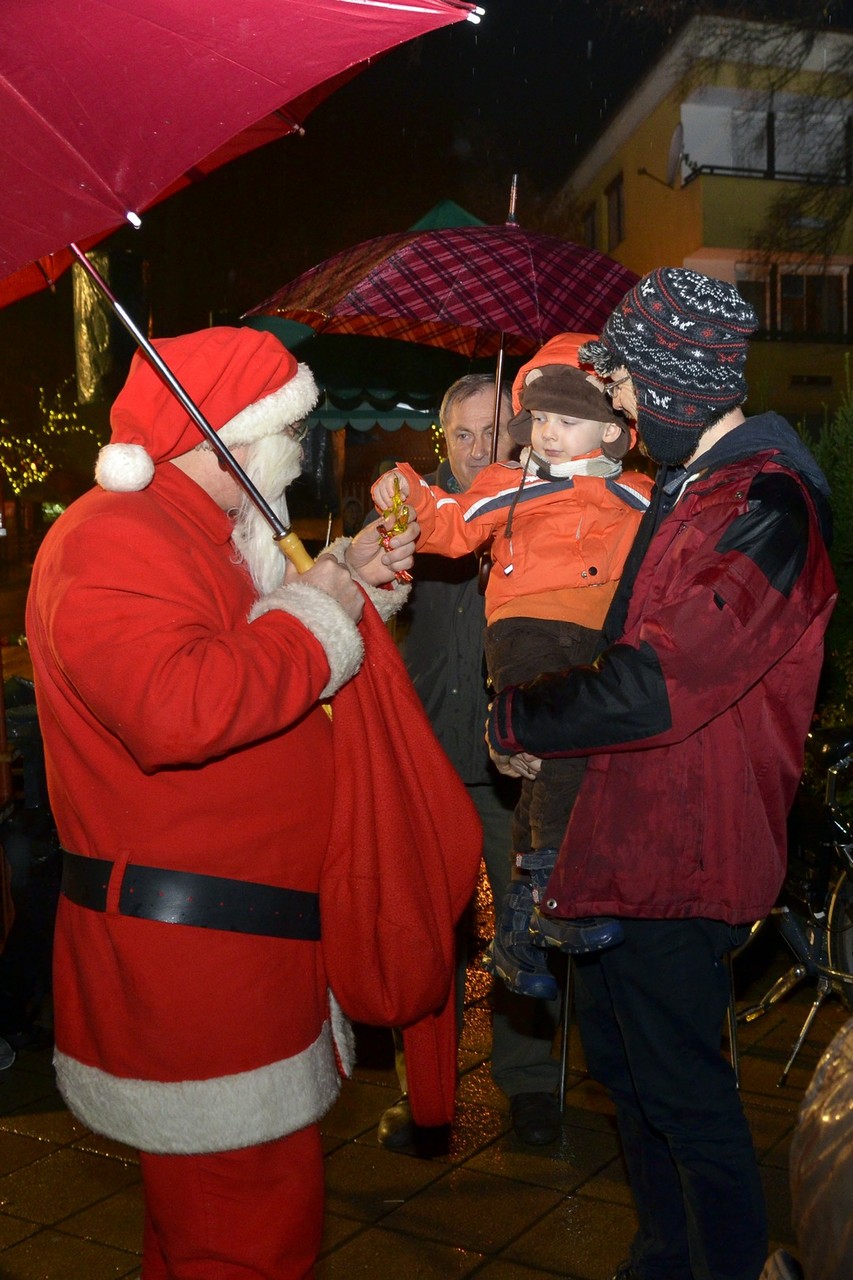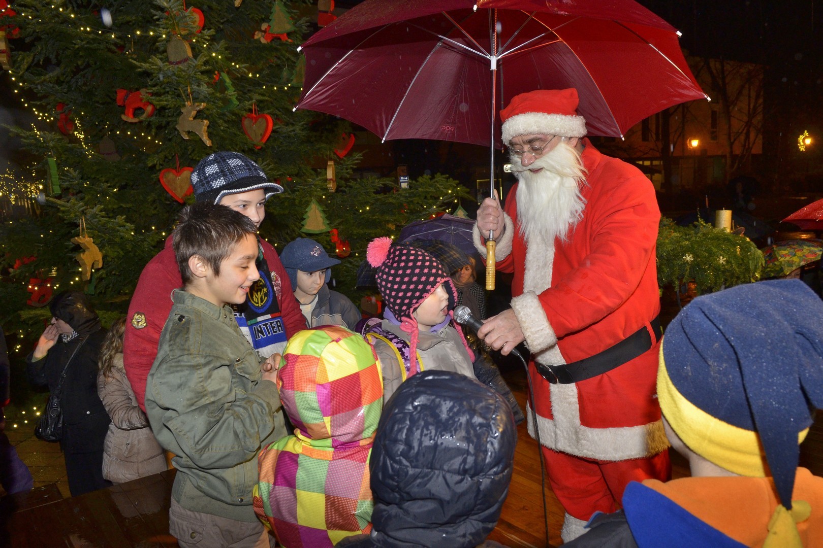 Bodrogközi Rita nógatására a gyermekek egyszerre olyan hangosan kezdtek el énekelni, hogy azt még Lappföldön is meghallották az emberek, köztük a Télapó is, aki – mivel maga is szereti a muzsikát – rögvest városunkba sietett. Hintójáról leszállva a nagyszakállú a színpadra igyekezett, és a kicsikkel közösen el is dalolt néhány ünnepi nótát. Ezután a gyermekek is felmehettek a Mikuláshoz, hogy megmutassák neki, milyen szép énekeket és verseket ismernek. Cserébe a pirosruhás puttonyából megannyi finomság, cukros csemege került elő. Az ajándékosztás minden picúr arcára széles vigyorokat csalt, a teret gyermeki kacajok töltötték meg.