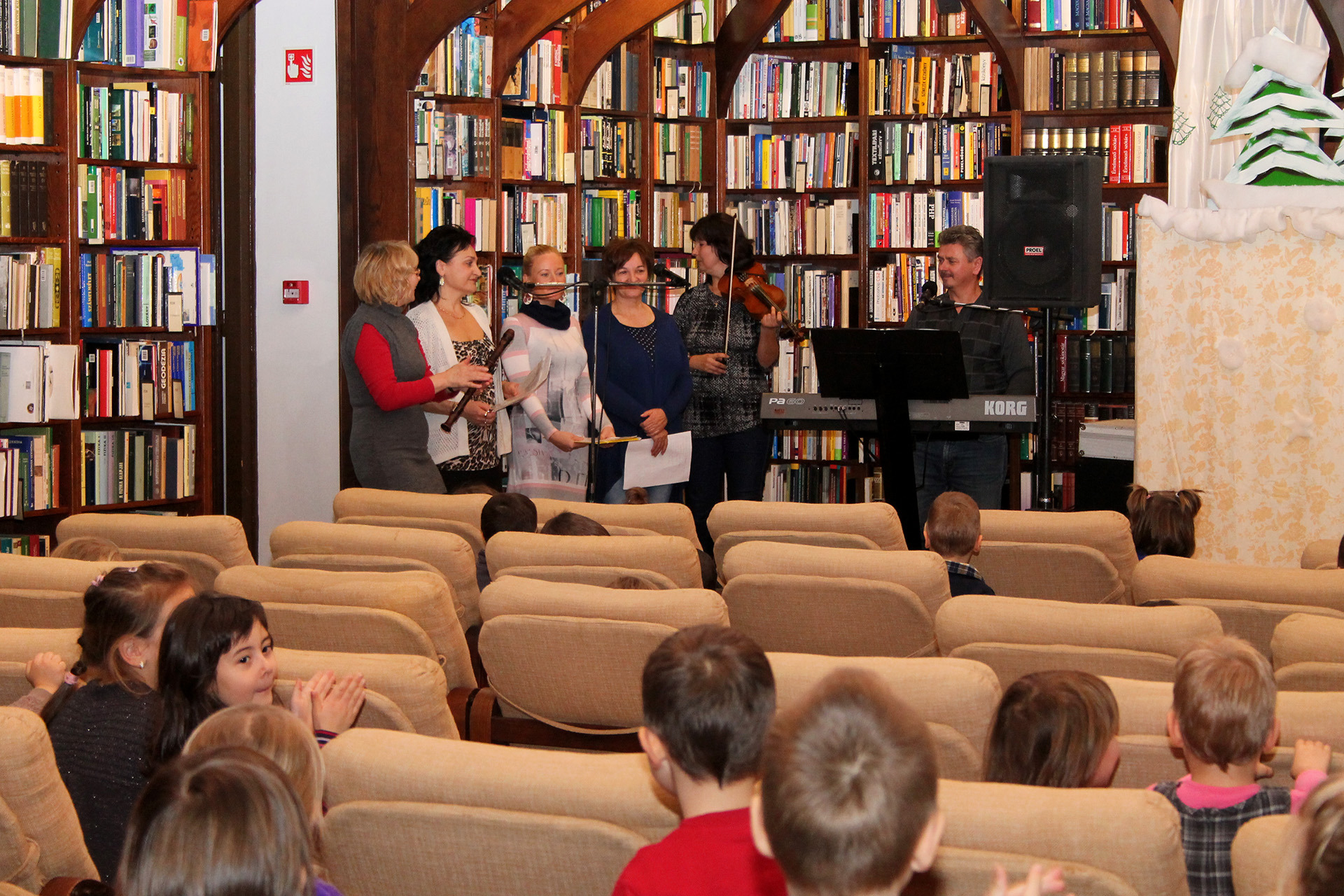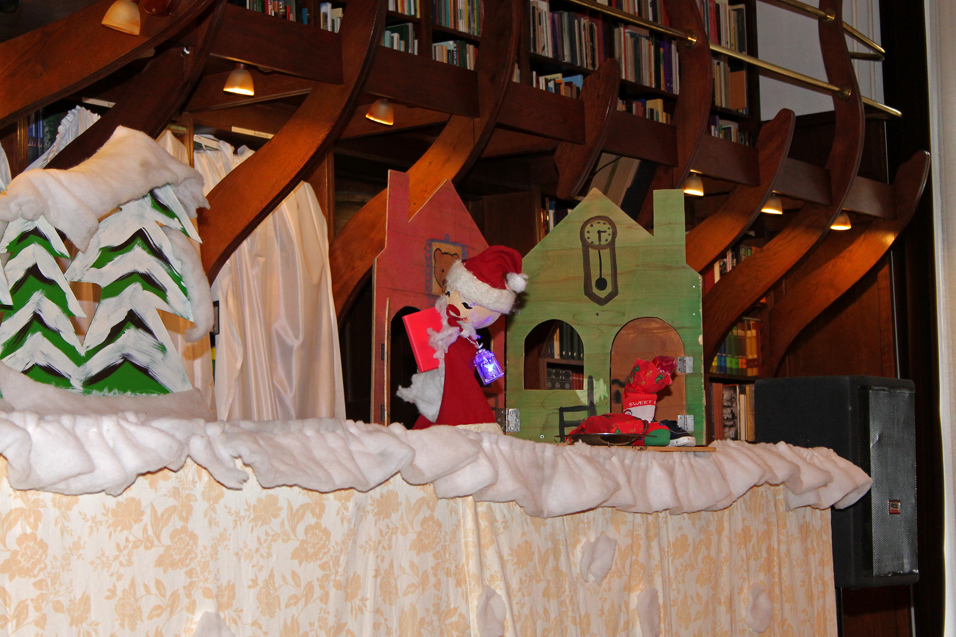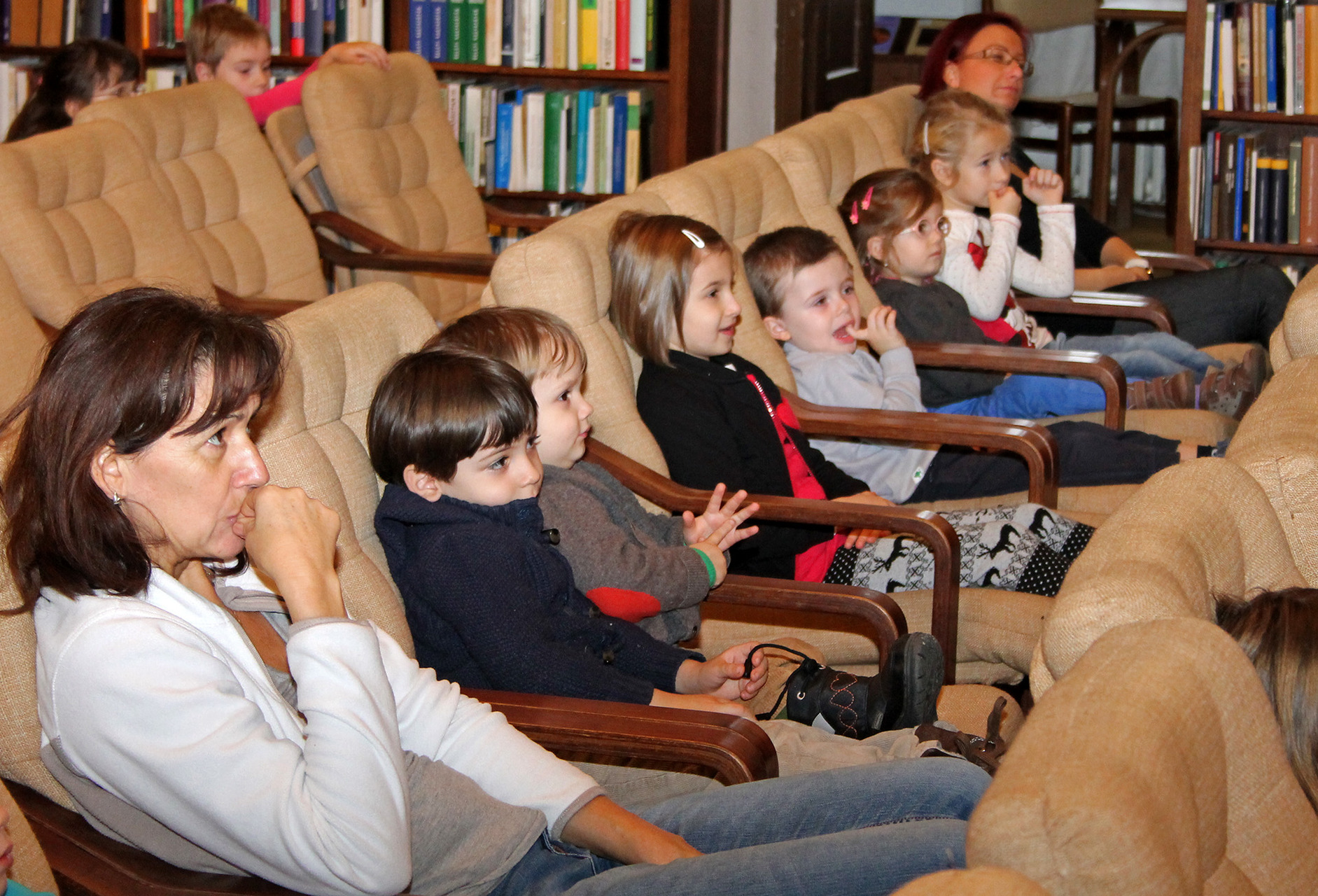Gyermeki kacarászások és önfeledt éneklés törte meg a gyulai Mogyoróssy János Városi Könyvtár Simonyi-olvasótermének csendjét december 9-én délelőtt. A gyulai Nevess-Ints Bábcsoport előadásán minden csöppség kiválóan érezte magát, de még a felnőttek is jókat derültek olykor a kedves történetek csattanóin. A délelőtti programon mintegy 100 pislogó szempár leste izgatottan a székek mögül a fabulák történéseit.