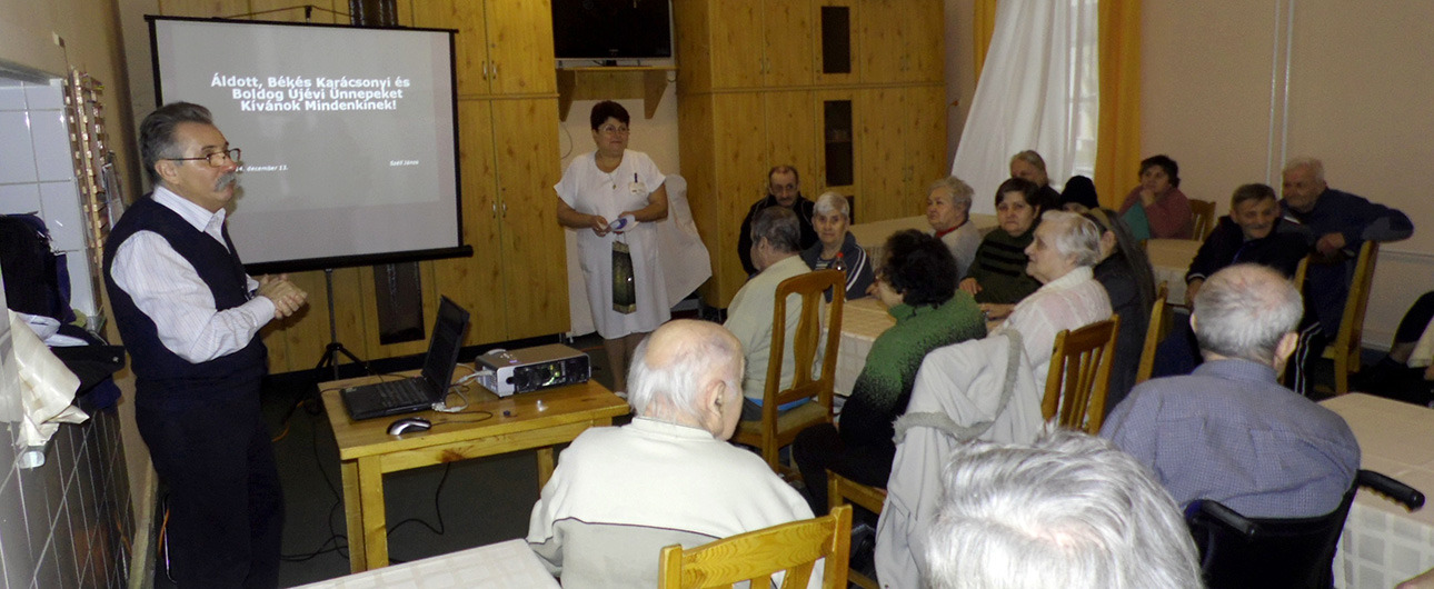 Széll János gyulai etnográfus, pedagógus, fafaragó népi iparművész már évek óta gyakori és kedvélt vendég a Fővárosi Önkormányzat Idősek Otthonában. Ezúttal a Téli Művészeti Napok programsorozatában a Luca naphoz kapcsolódó furcsaságokról és jellegzetes népi hagyományokról beszélt.