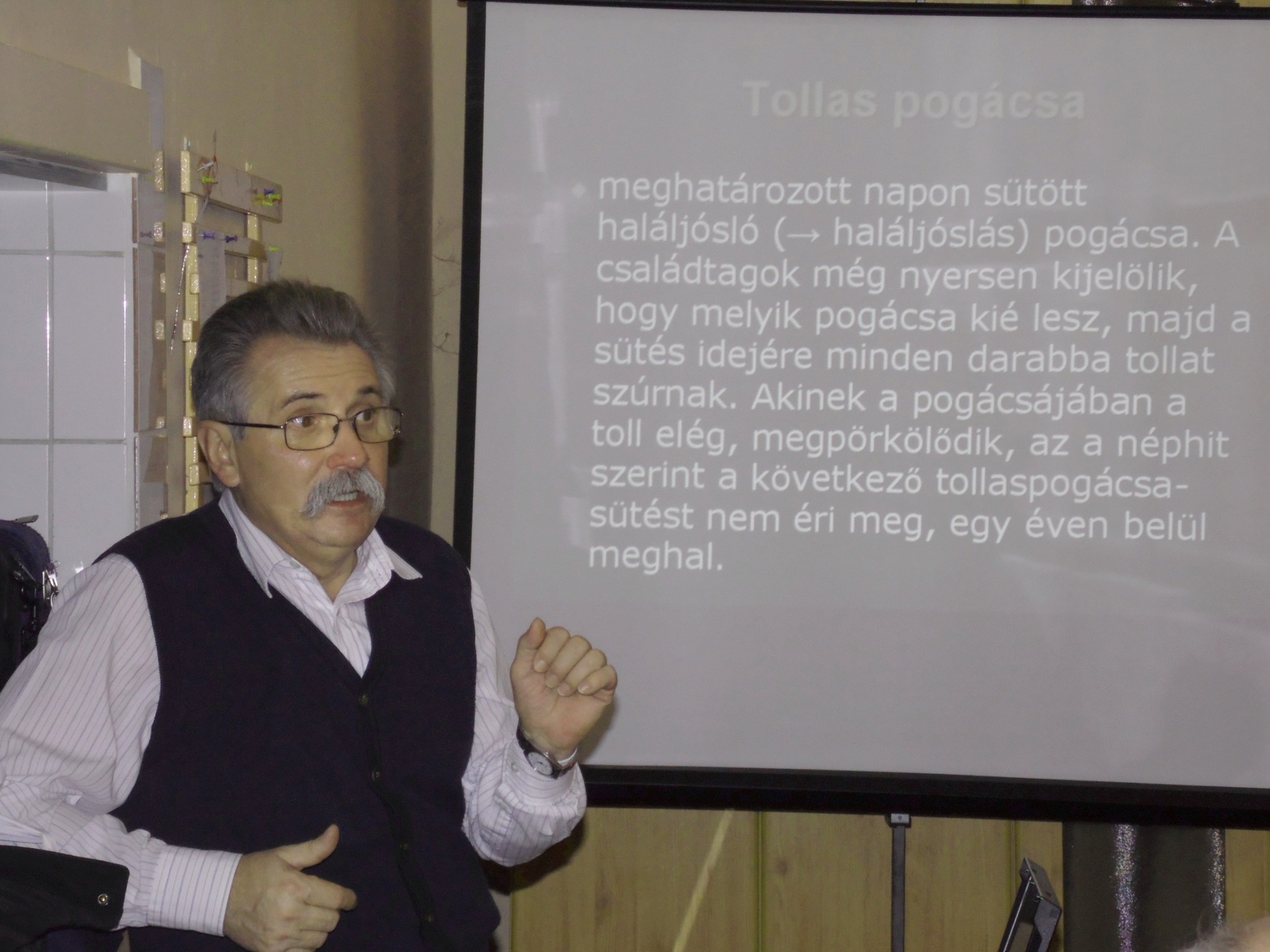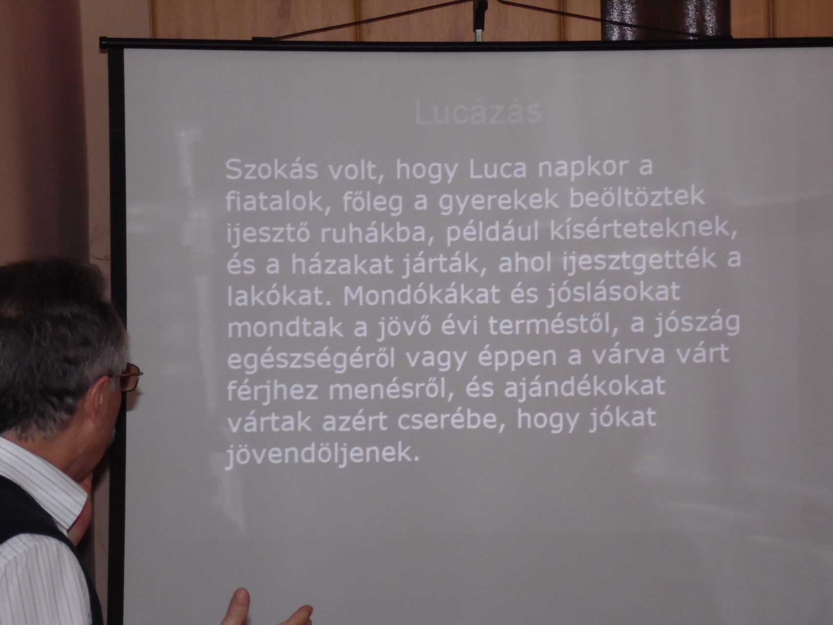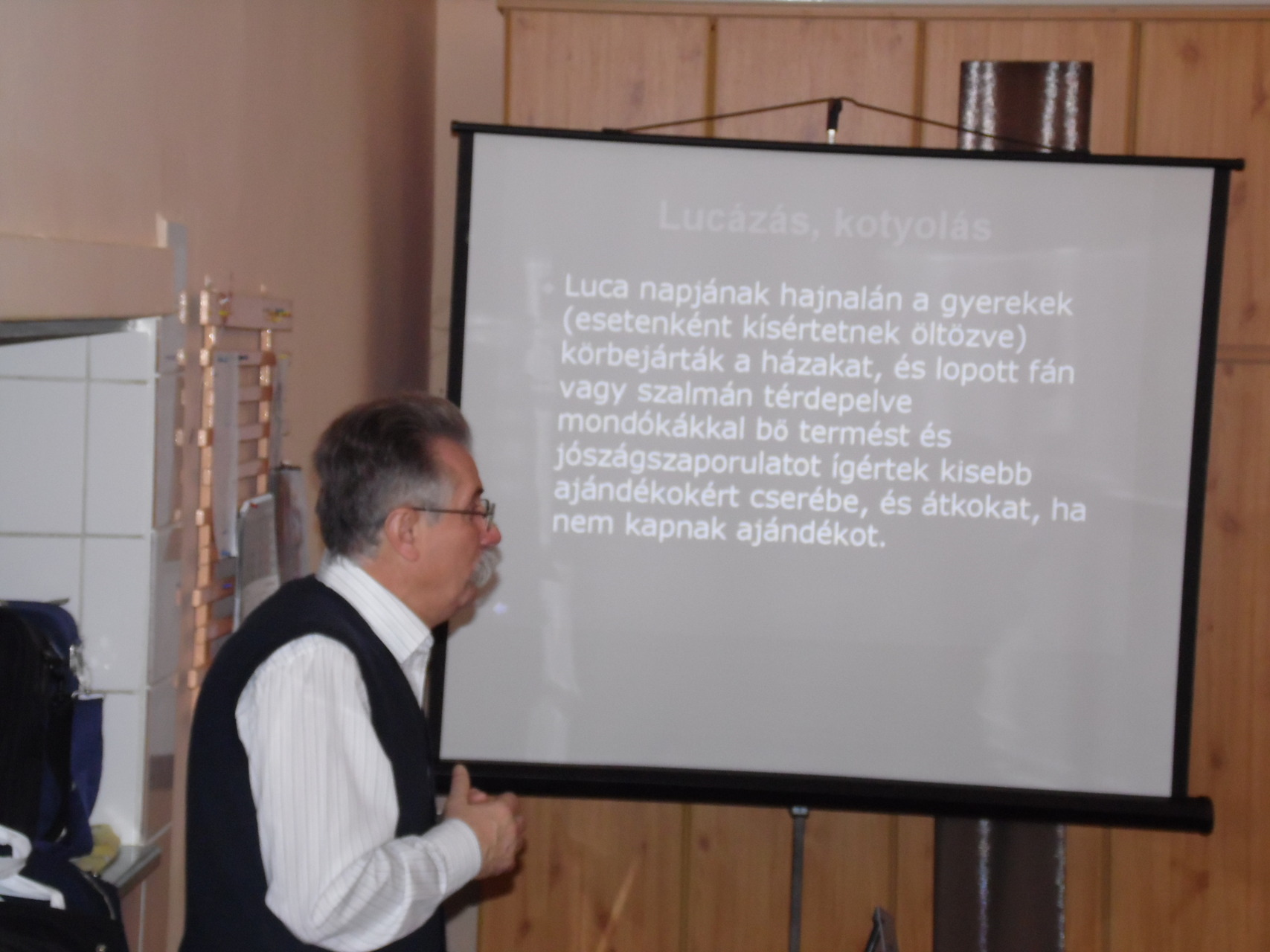 Széll János természetesen az ilyenkor érvényben lévő dologtiltó és vendégváró szokásokra is kitért, azok jelentőségét is megmagyarázva. Szórakoztató előadása – a hallgatóság nagy örömére - tréfás versek felidézésével zárult, melyek mindegyike megfeleltethető egy-egy termékenység-bőség áldásnak is.