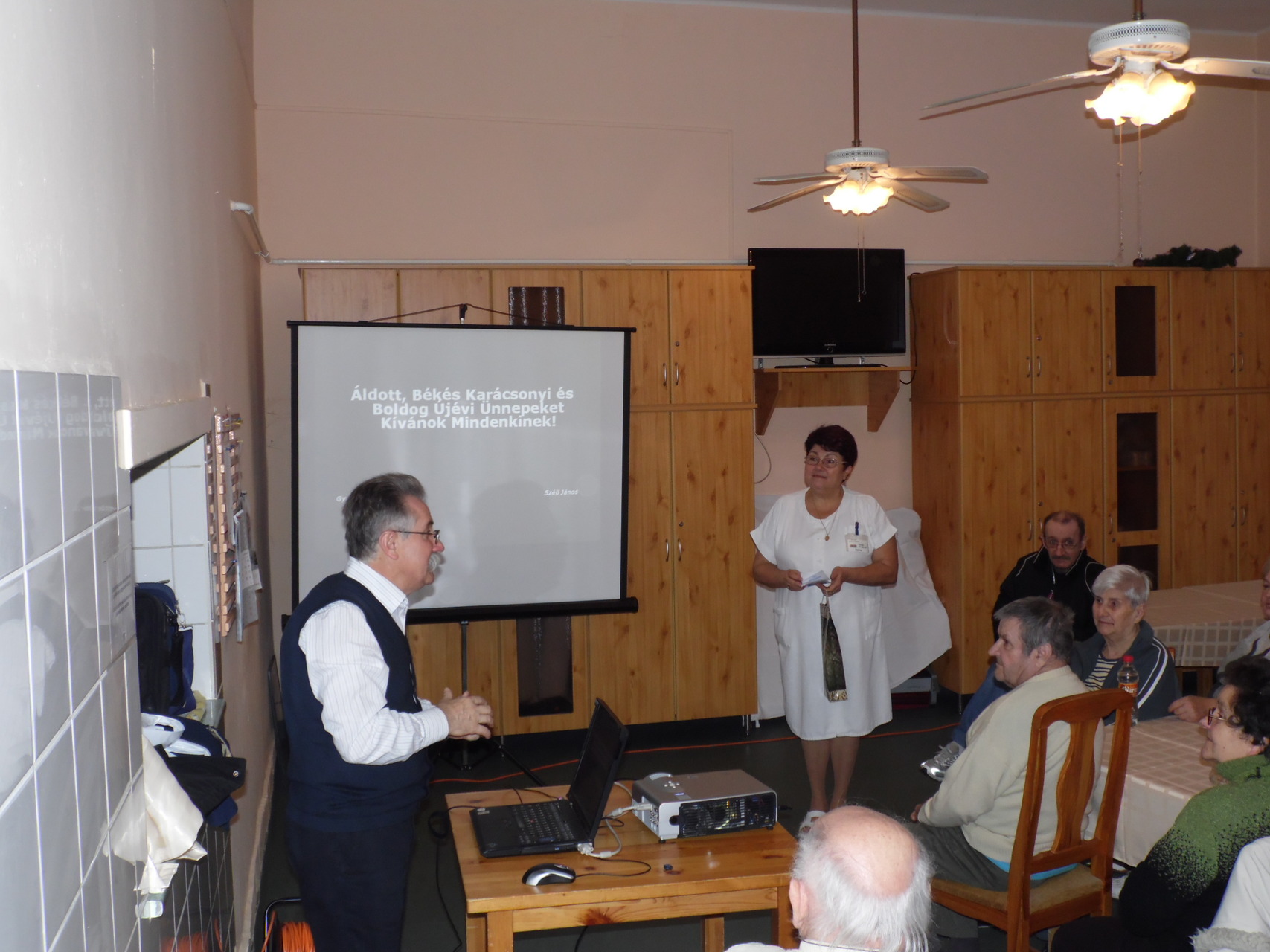 A népművészeti mozgalomban végzett közösségi tevékenységért néhány éve Wlassics Gyula-díjban is részesült előadó igen nagy szenvedéllyel beszélt az ünnep köré fonódó néphagyományokról, hiedelmekről és babonákról. Izgalmas előadását a lakók részéről élénk figyelem kísérte, így különösen nagy kedvvel tért ki az előadásában eredetileg nem is szereplő érdekességekre is.