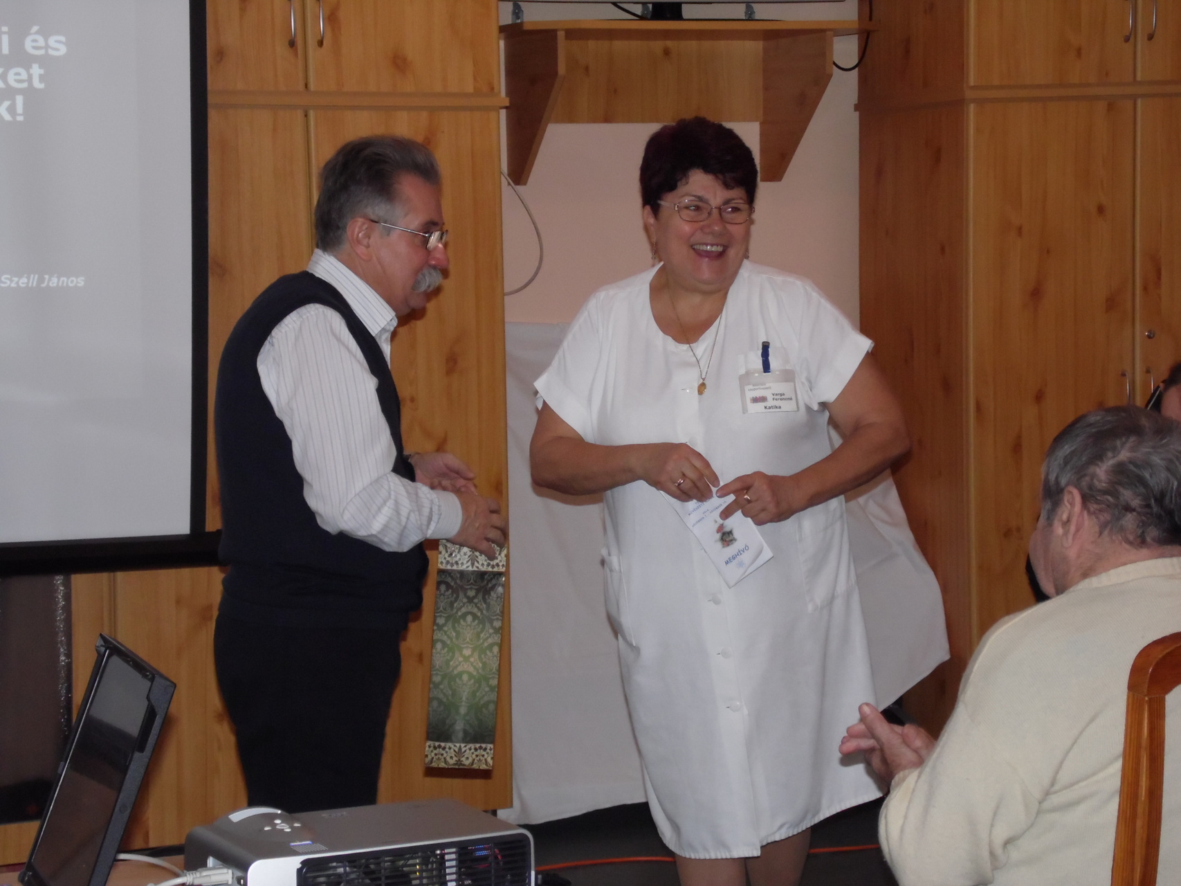 A kedvelt előadó felkészülését Varga Ferencné szociális és mentálhigiénés csoportvezető egy kis jelképes ajándékkal köszönte meg.