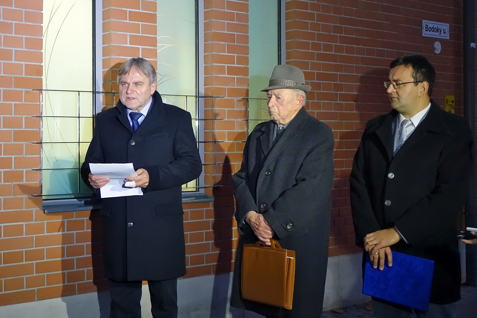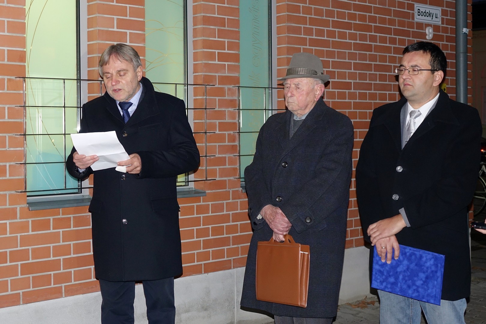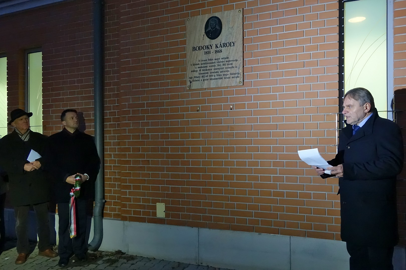 Az igazgató ünnepi beszédében felidézte: 2010 óta hagyomány, hogy a dr. Erdmann Gyula nyugalmazott levéltár-igazgató, egykori képviselő kezdeményezésére állított emléktáblát megkoszorúzzák. Bak Sándor hozzátette: az idei megemlékezés a Bodoki-emlékév lezárása is egyben.
