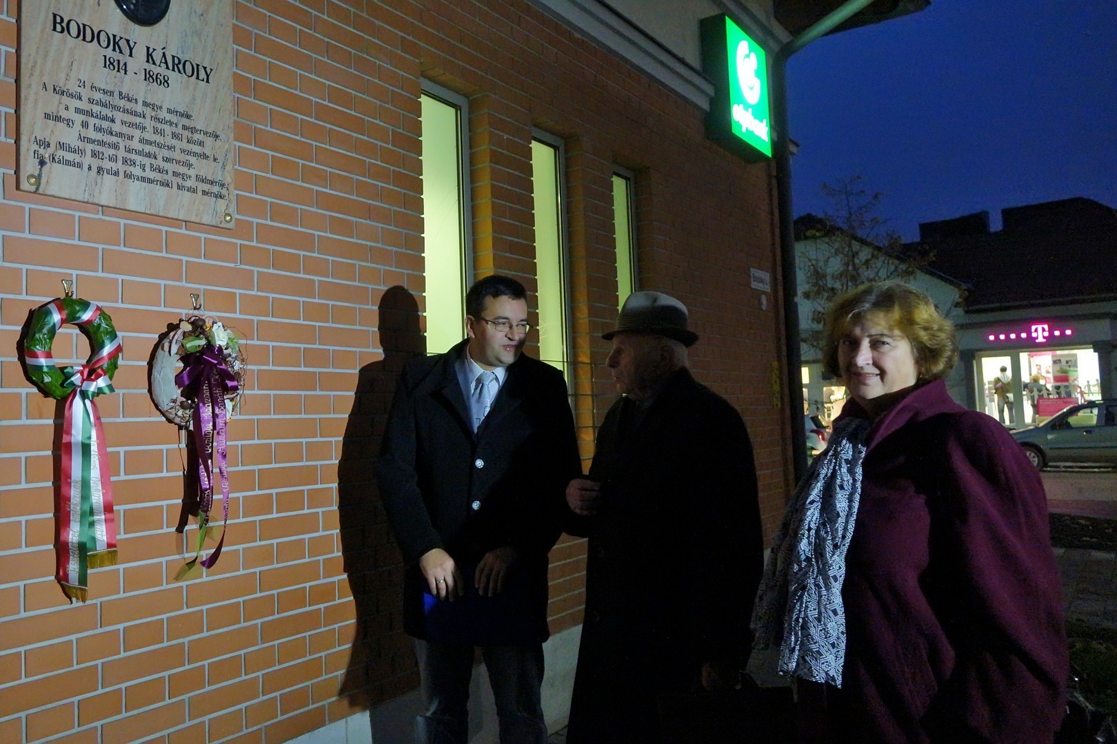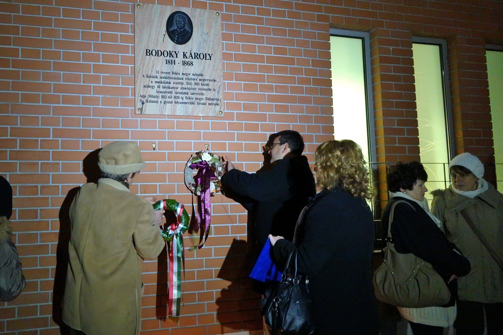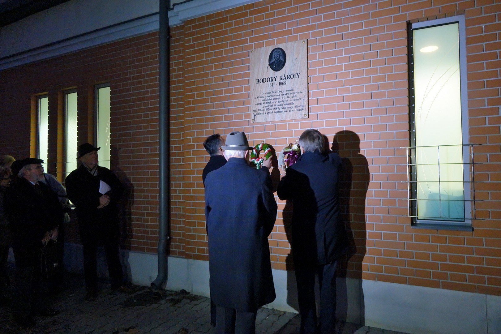 Az ünnepség végén az emléktáblánál koszorút helyezett el dr. Görgényi Ernő polgármester, Bak Sándor, valamint a Bodoki Károly Vízügyi Múzeum Baráti Kör képviseletében Takács Lajos, az igazgatóság nyugalmazott vezetője.