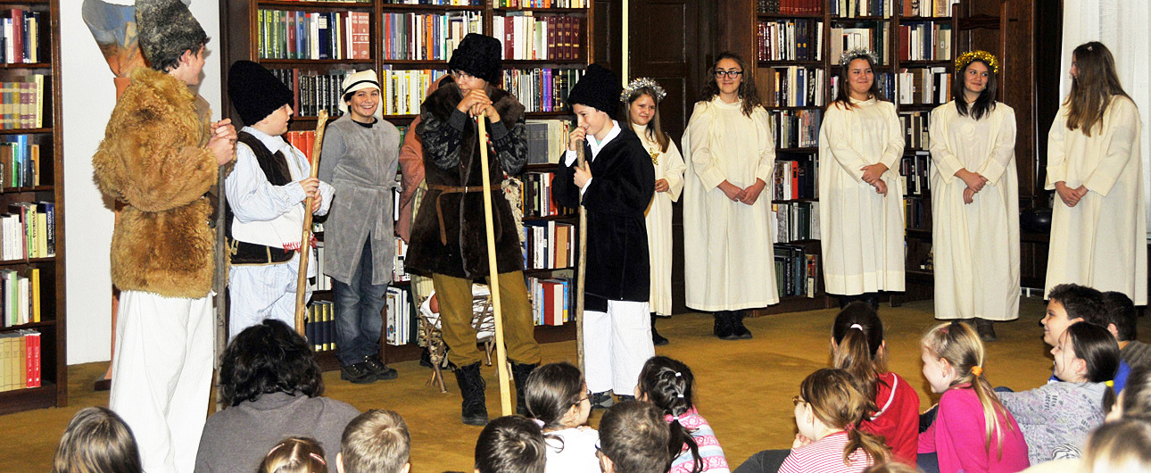 A gyermekkönyvtár munkatársa azt az érdekességet is megosztotta a jelenlévőkkel, hogy az ezúttal Gyulán bemutatkozó diákokból álló színjátszó kör a múlt év során részt vett „A Fekete-erdőtől a Fekete-tengerig” mottóval ellátott, a Magyarok Karácsonyi Világjátéka elnevezésű programban, ahol betlehemes műsorukkal a mórahalmi Európai Magyar Fiatalságért Alapítvány „Csillagének a Földért” című versenyén első helyezést értek el. Jutalmul egy egyhetes jutalomtáborban vehettek részt Horvátországban, ahol más betlehemezőkkel is találkozhattak.